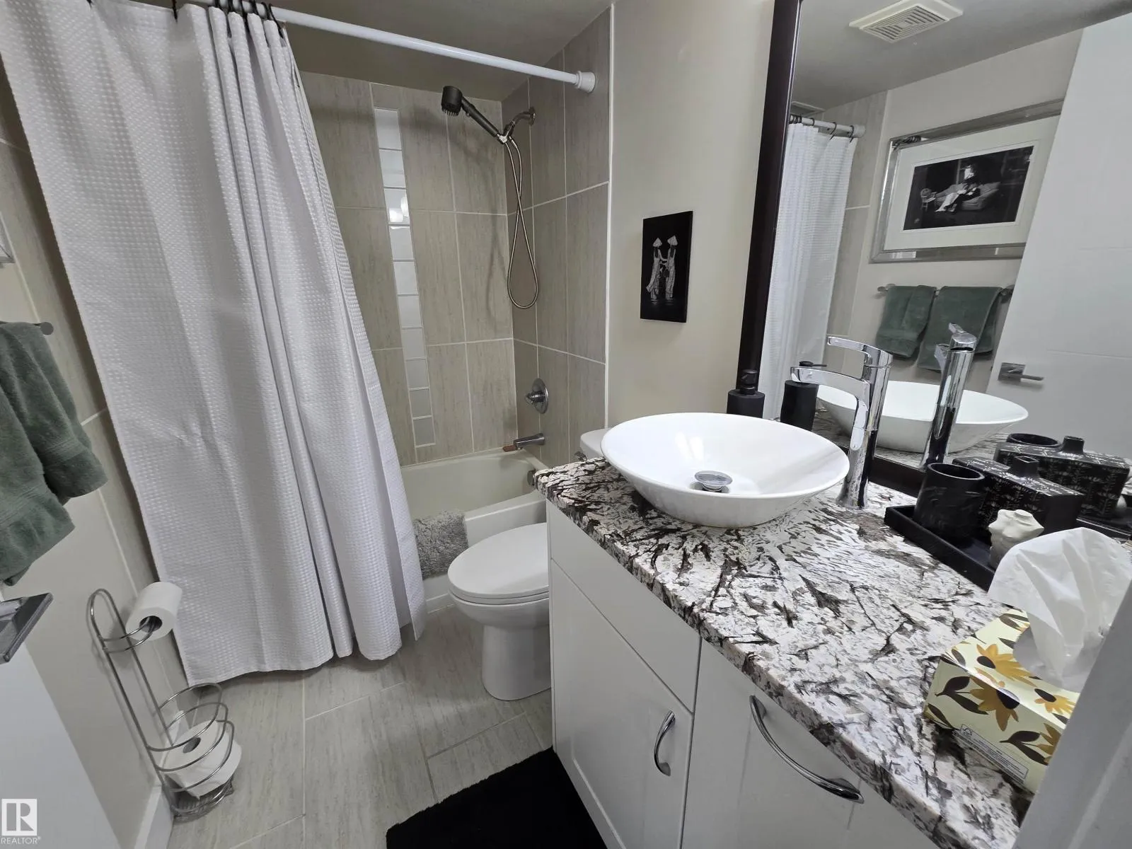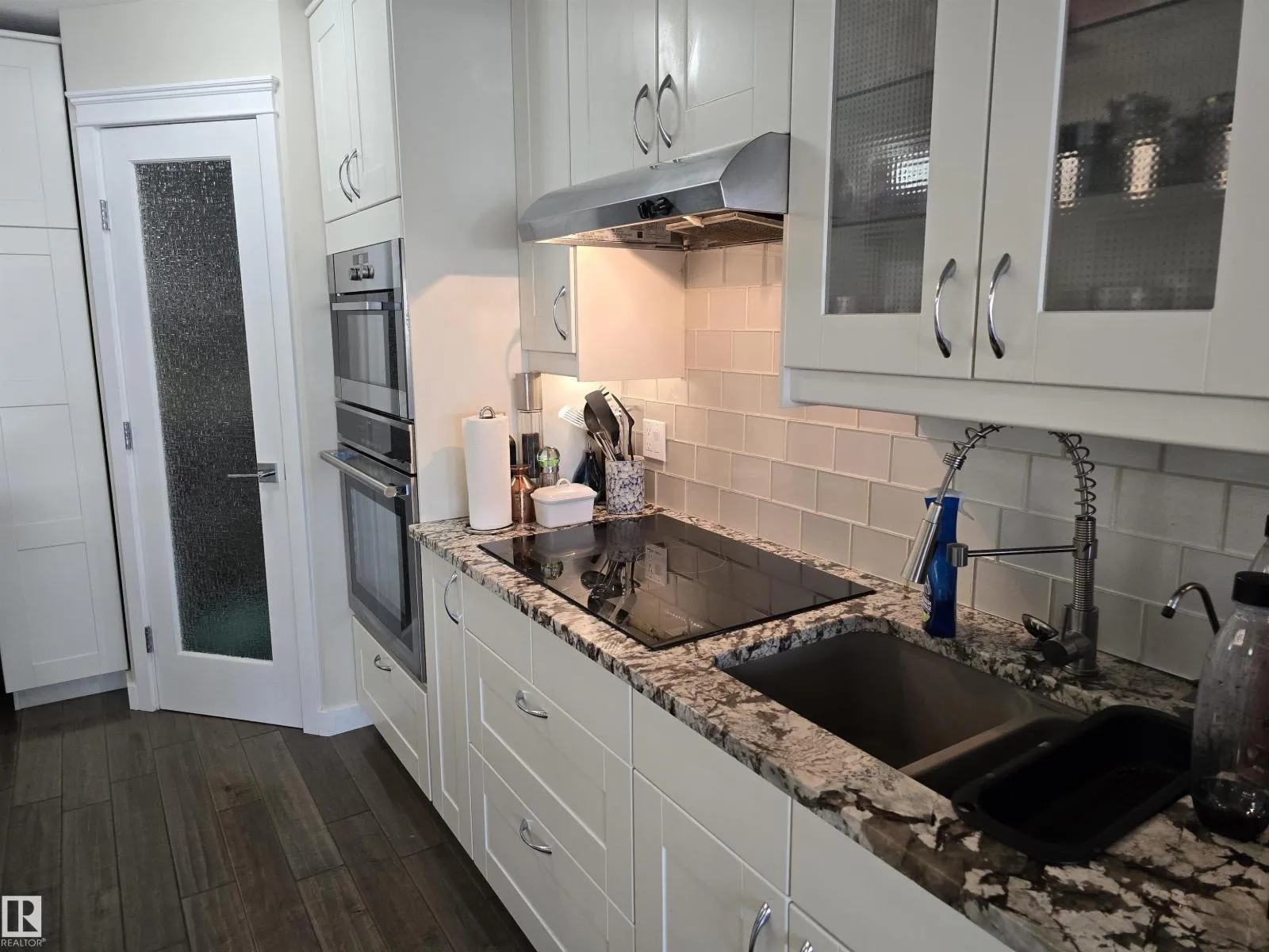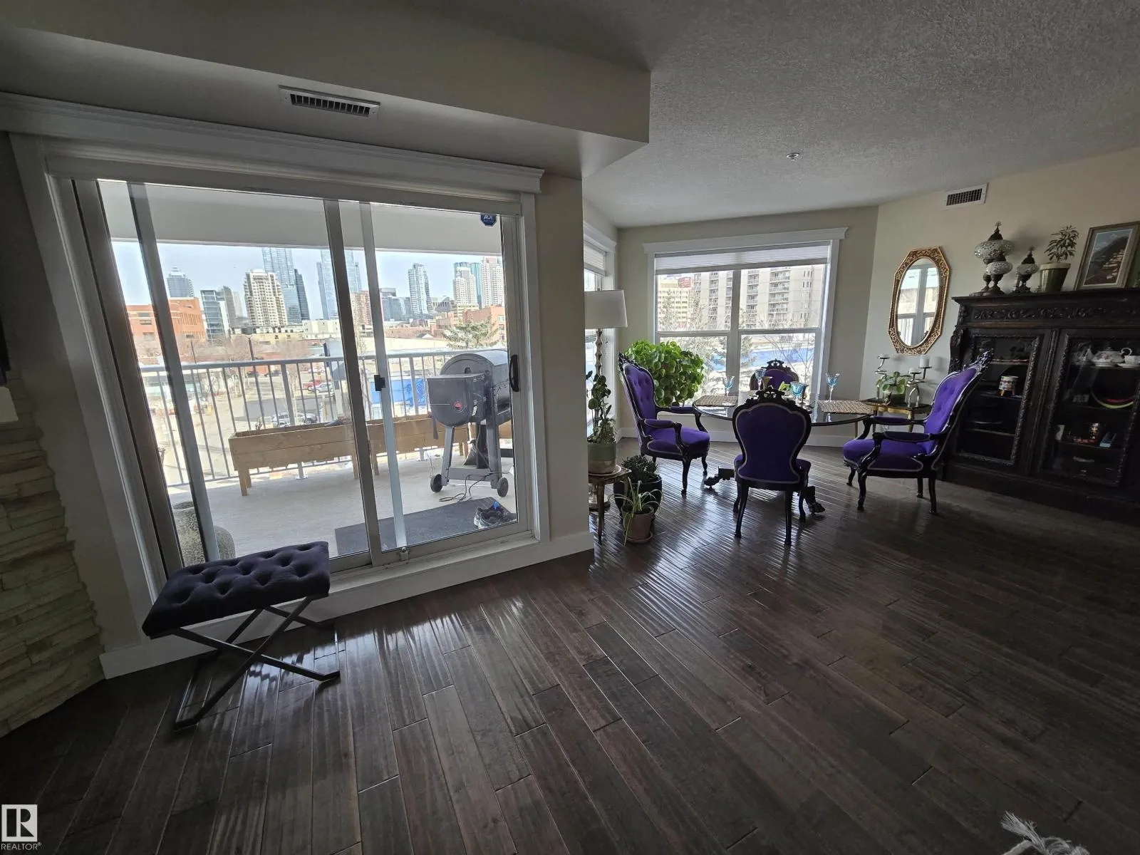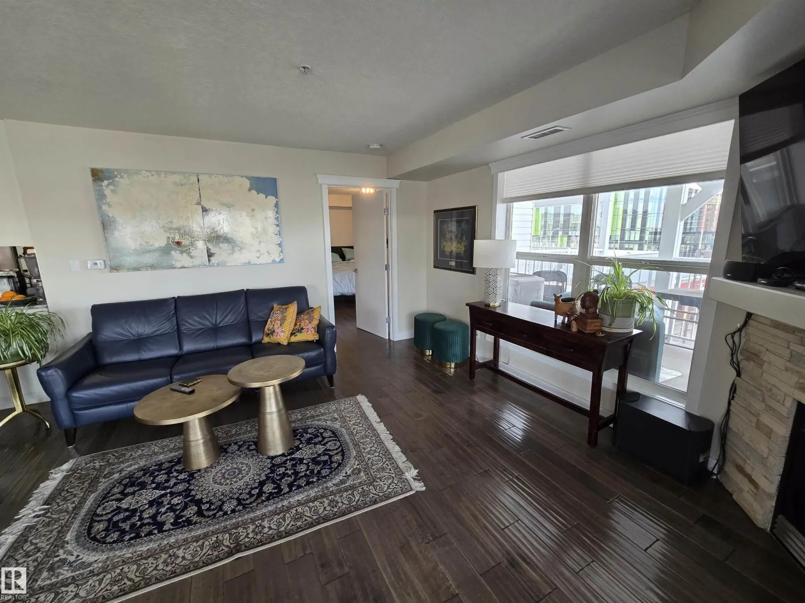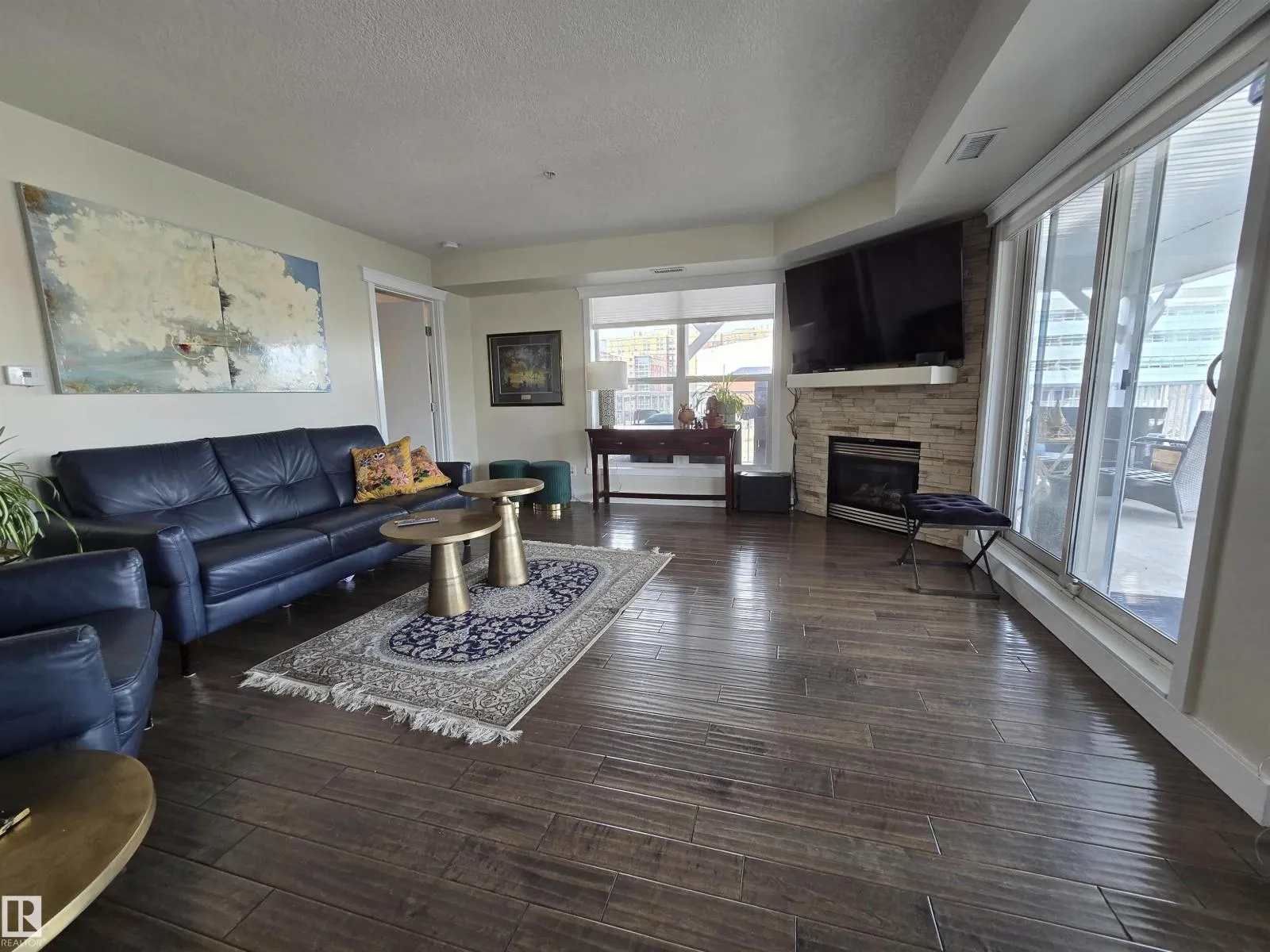 LOCATION, LOCATION, LOCATION!!! Railtown on the Park. THIS COMPLETELY RENOVATED 1141 sq. ft. 2 bedroom 2 bathroom condo is conveniently located close to the LRT, shopping, downtown, the River valley trails & the U of A. Numerous recent upgrades include the Kitchen redesign with an open floor plan, large island, pantry, granite counter tops, S/S appliances. Corner gas fireplace. 3 piece ensuite with a linen closet. 4 piece bathroom next to the 2nd bedroom with a vessel sink. Granite counters in both bathrooms. Engineered hardwood throughout except for tile in the bathrooms. Newer paint, baseboards, solid core doors, California knock down ceilings. Gas BBQ hook-up on your massive, private, covered Northeast City Skyline View balcony. Included: counter top induction stove, built-in oven, built-in microwave, fridge, dishwasher, washer, dryer, all window coverings, A/C. TWO UNDERGROUND PARKING UNITS 190, 175 Actual #'s 102, 87, with storage in front of 102. GYM & Guest Suite in building. (id:27476)