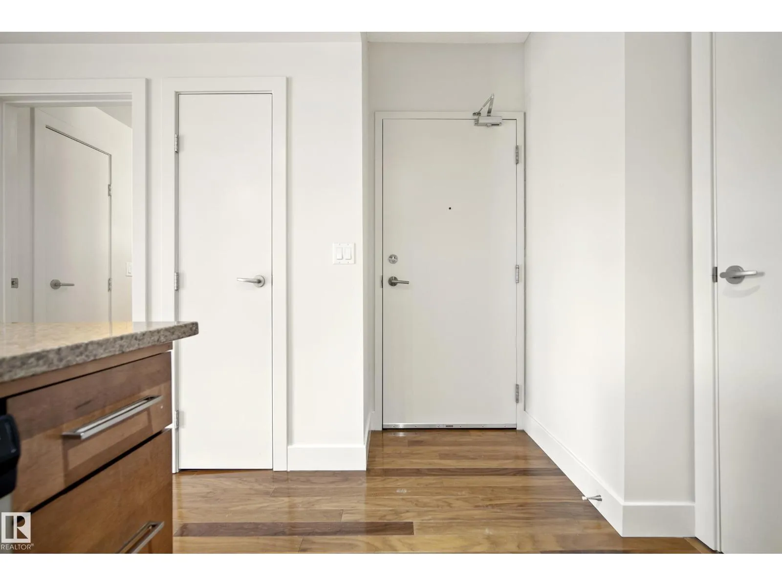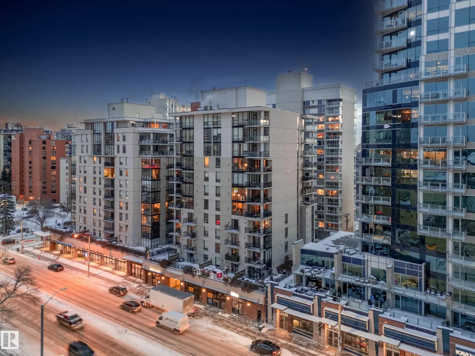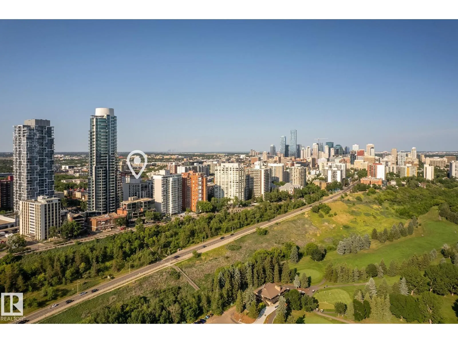 Urban Sophistication on the Victoria Promenade. Experience the ultimate lifestyle at Illuminada II, where the River Valley and Victoria Golf Course serve as your backyard. This refined 1-bedroom condo is a masterclass in efficient luxury, perfect for those seeking a high-end, lock-and-go residence in Edmontonâs premier walking district. The interior features soaring 9' ceilings and a wall of floor-to-ceiling windows, bathing the space in natural light. The open-concept layout is anchored by a gourmet kitchen with dark cabinetry and a social eating bar, leading into a living area with a cozy gas fireplace. Enjoy the peace of a concrete building with superior soundproofing and year-round comfort via a modern HVAC system. Pet-friendly (w/ board approval) and just steps from the elite dining and boutiques of 124th Street. Simply the best of urban living. *Some Photo Are Virtually Staged* (id:27476)