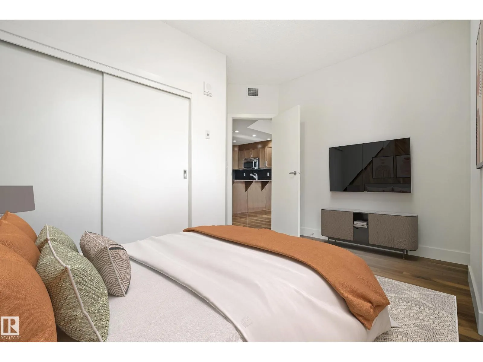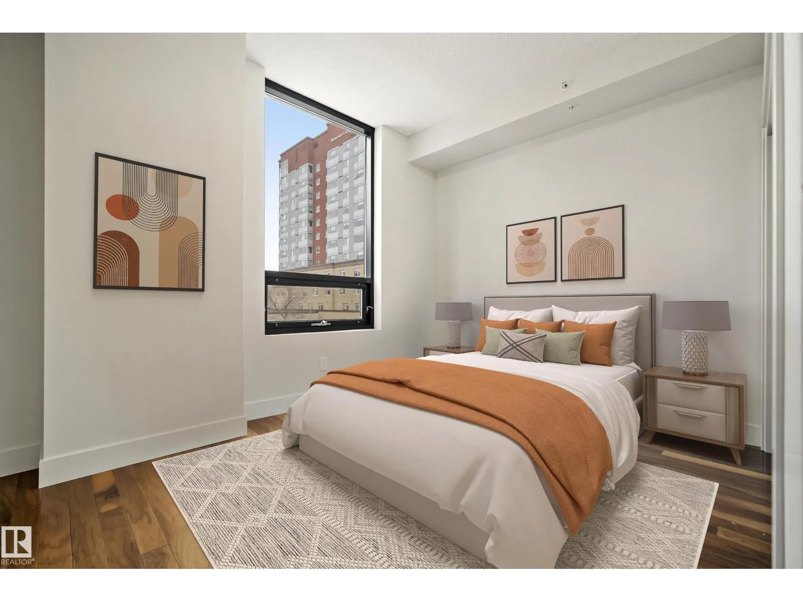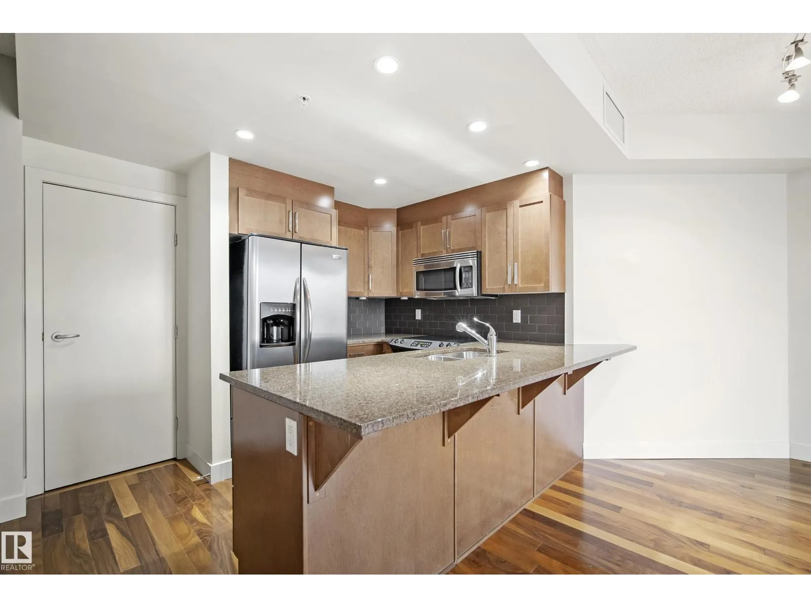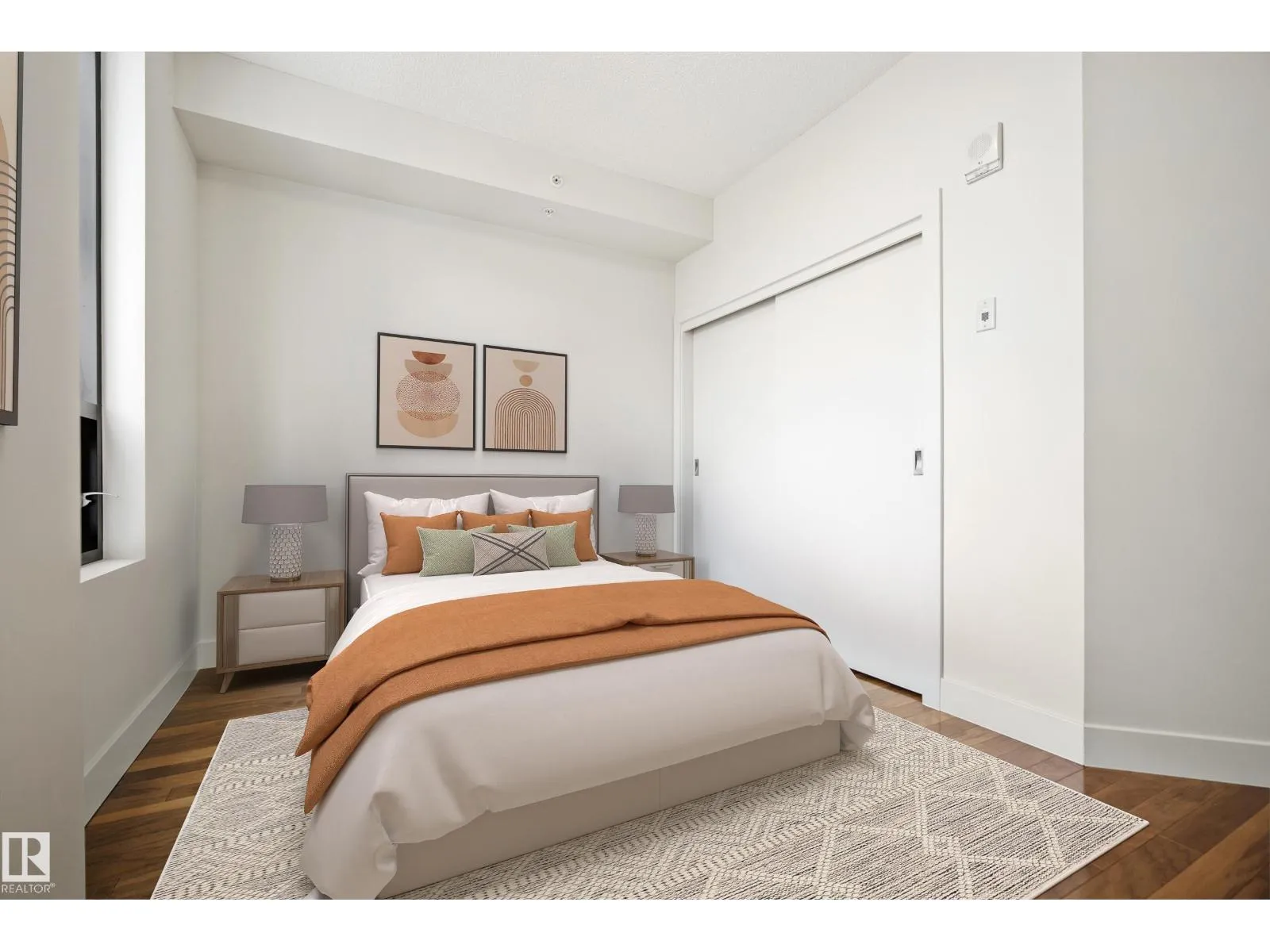 Urban Sophistication on the Victoria Promenade. Experience the ultimate lifestyle at Illuminada II, where the River Valley and Victoria Golf Course serve as your backyard. This refined 1-bedroom condo is a masterclass in efficient luxury, perfect for those seeking a high-end, lock-and-go residence in Edmontonâs premier walking district. The interior features soaring 9' ceilings and a wall of floor-to-ceiling windows, bathing the space in natural light. The open-concept layout is anchored by a gourmet kitchen with dark cabinetry and a social eating bar, leading into a living area with a cozy gas fireplace. Enjoy the peace of a concrete building with superior soundproofing and year-round comfort via a modern HVAC system. Pet-friendly (w/ board approval) and just steps from the elite dining and boutiques of 124th Street. Simply the best of urban living. *Some Photo Are Virtually Staged* (id:27476)