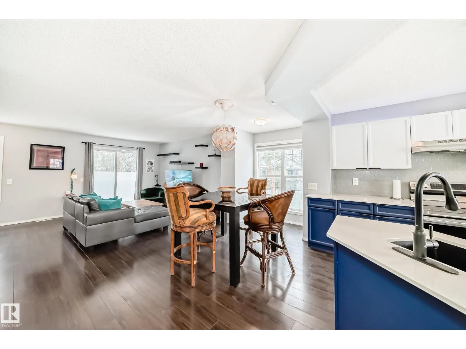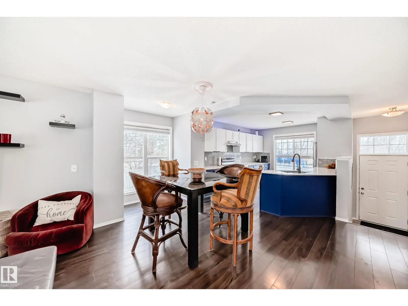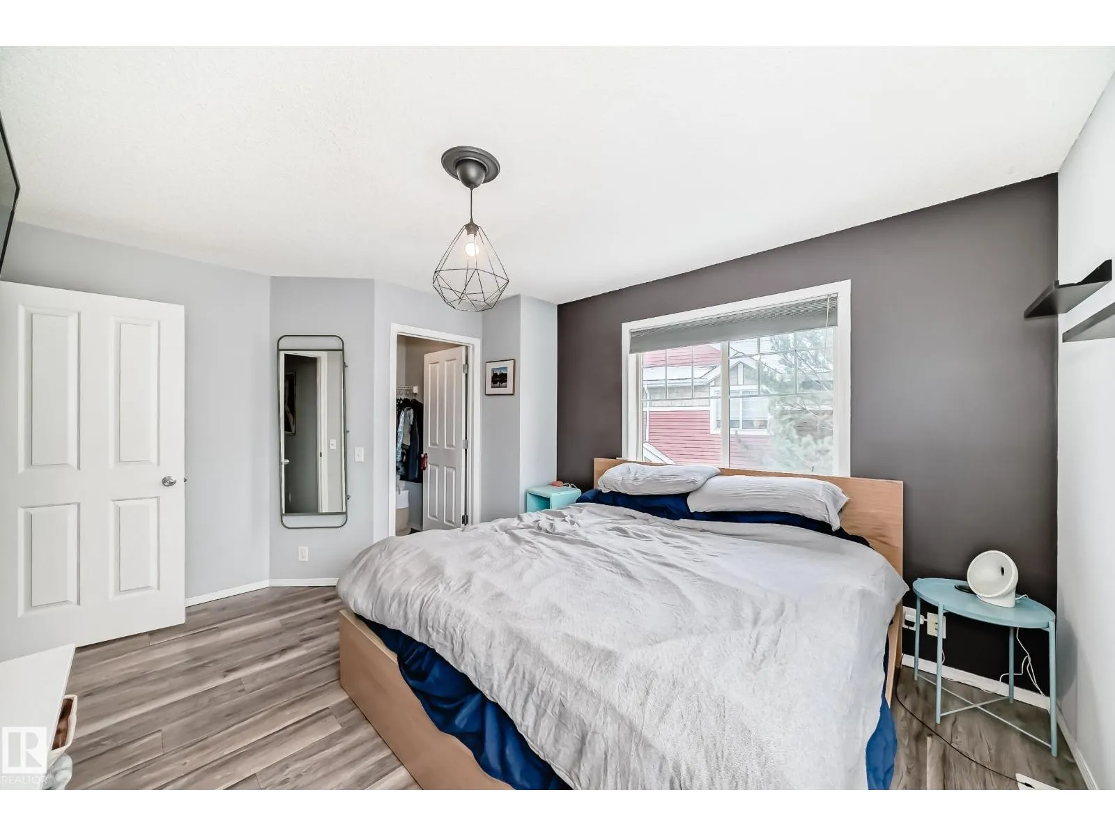 Exceptional end-unit townhome in The Hamptons, with a dbl att garage & A/C! Impeccably maintained, this bright corner residence features additional west-facing windows & a thoughtfully designed open-concept layout with refined finishes, including laminate flooring on the main. The stylish kitchen is complete with newer appliances, modern colour tones, newer countertops & backsplash. The spacious living & dining area are ideal for elevated everyday living & entertaining, plus there is a south balcony. Upstairs are two spacious primary suites each offering private 4-piece ensuites & walk-in closets, complemented by a versatile loft/flex space, all with newer luxury vinyl. Downstairs you will find the laundry (with brand new washer/dryer), generous storage, & direct garage access. Enjoy a fenced front yard, pet-friendly living with no size restrictions, ample visitor parking, & a prime location just moments from amenities, transit, & Anthony Henday. An amazing home that blends comfort, style, & convenience. (id:27476)