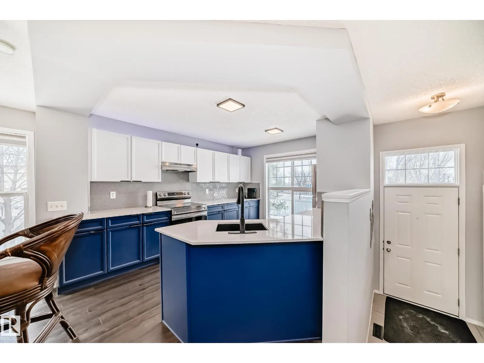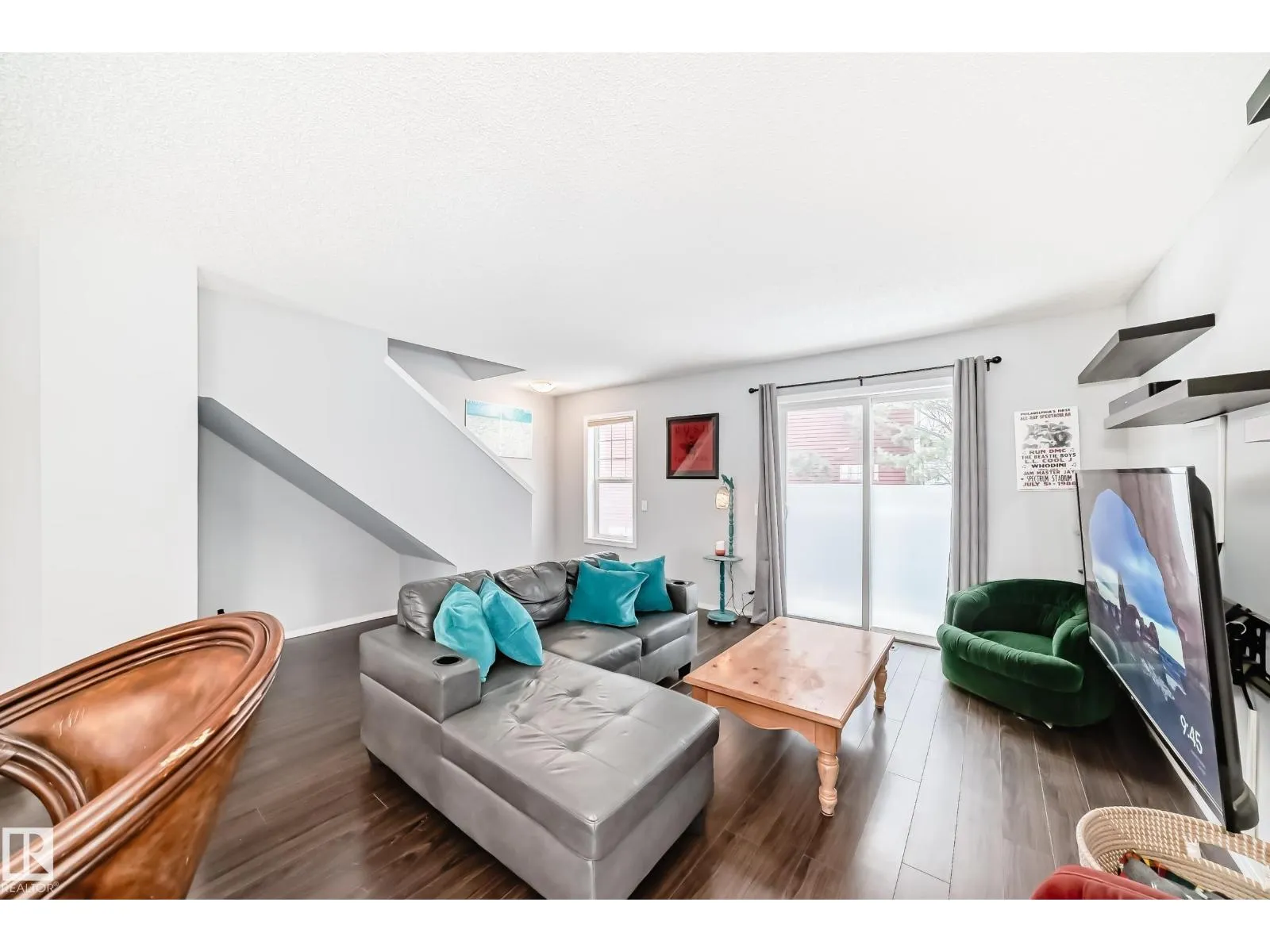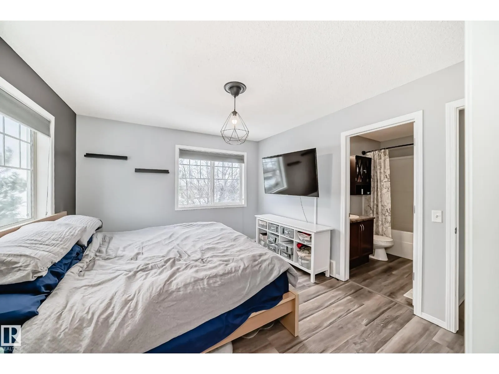 Exceptional end-unit townhome in The Hamptons, with a dbl att garage & A/C! Impeccably maintained, this bright corner residence features additional west-facing windows & a thoughtfully designed open-concept layout with refined finishes, including laminate flooring on the main. The stylish kitchen is complete with newer appliances, modern colour tones, newer countertops & backsplash. The spacious living & dining area are ideal for elevated everyday living & entertaining, plus there is a south balcony. Upstairs are two spacious primary suites each offering private 4-piece ensuites & walk-in closets, complemented by a versatile loft/flex space, all with newer luxury vinyl. Downstairs you will find the laundry (with brand new washer/dryer), generous storage, & direct garage access. Enjoy a fenced front yard, pet-friendly living with no size restrictions, ample visitor parking, & a prime location just moments from amenities, transit, & Anthony Henday. An amazing home that blends comfort, style, & convenience. (id:27476)