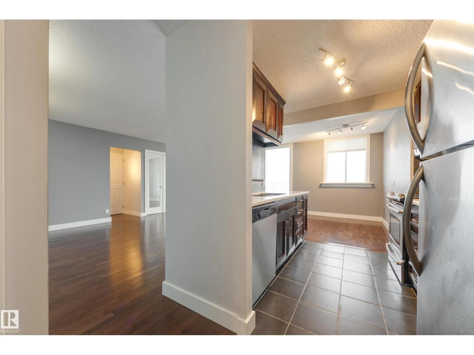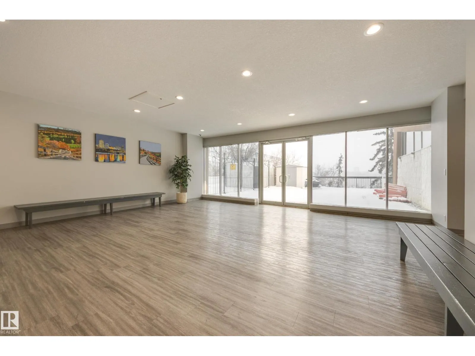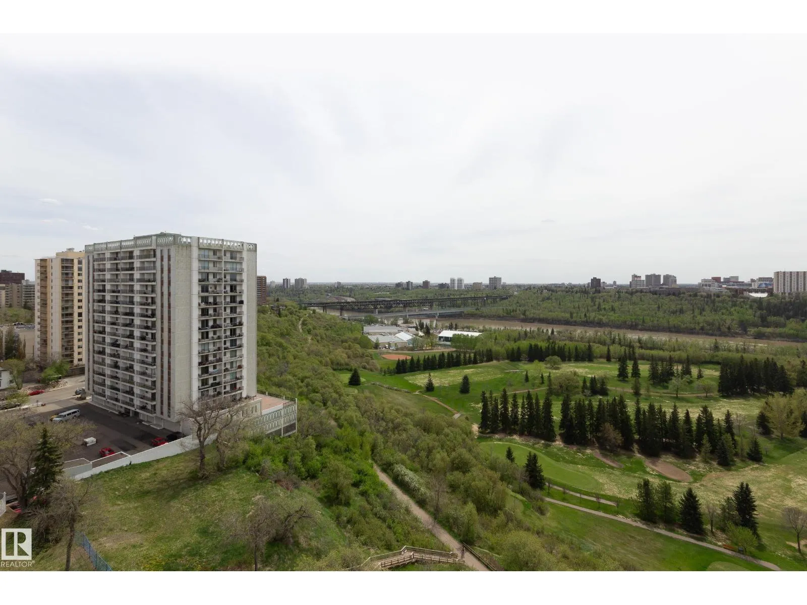 Your new home just east of downtown sits on the edge of Edmonton's beautiful river valley, with a stunning view of the Victoria Golf Course and the North Saskatchewan River! The open plan features hardwood floors and a renovated kitchen creating an attractive and functional space and the 2nd bedroom has a convenient Murphy bed for guests! Amenities include an indoor saltwater pool, a newly renovated party room, a well-equipped gym, and two bike rooms. Located just a short walk to downtown, shopping, transit (Gov't LRT stop only 3 blocks away), as well as outdoor activities like river valley trails, golf, and cross-country skiing just down the stairs, this unit is perfect for active living. The titled underground parking stall #49 is conveniently located close to the elevator, making this unit well suited to someone with limited mobility. Condo fees include electricity, heat, A/C, water and free laundry! Bonus for pet-lovers, this is one of the few condo buildings that has no size restrictions for dogs! (id:27476)