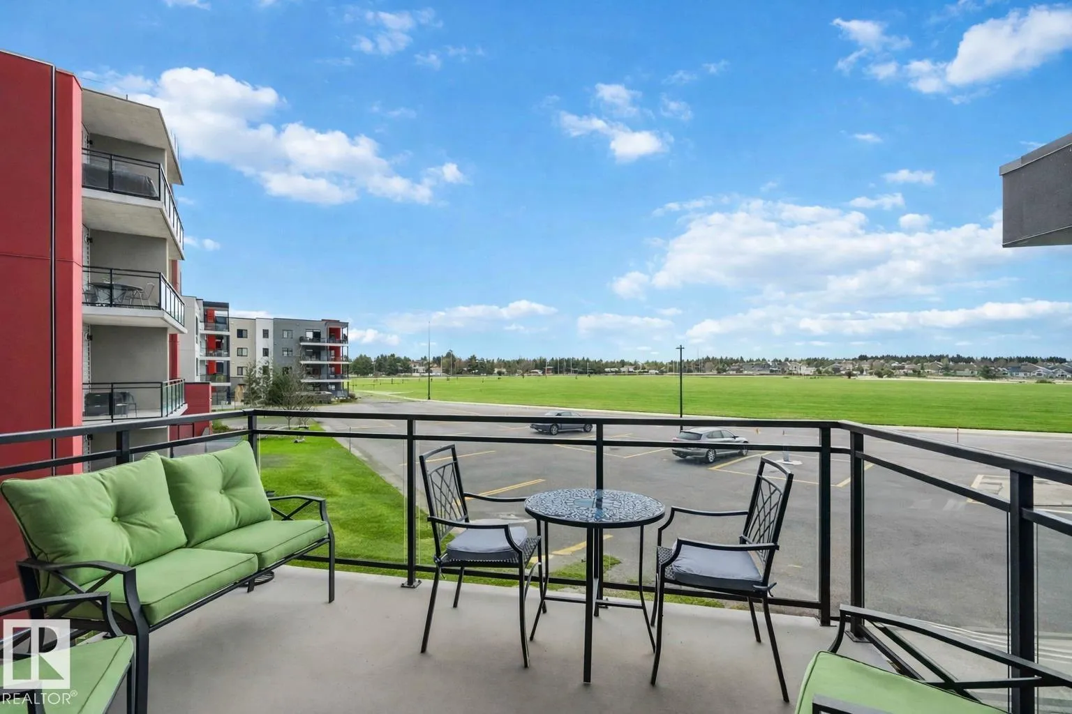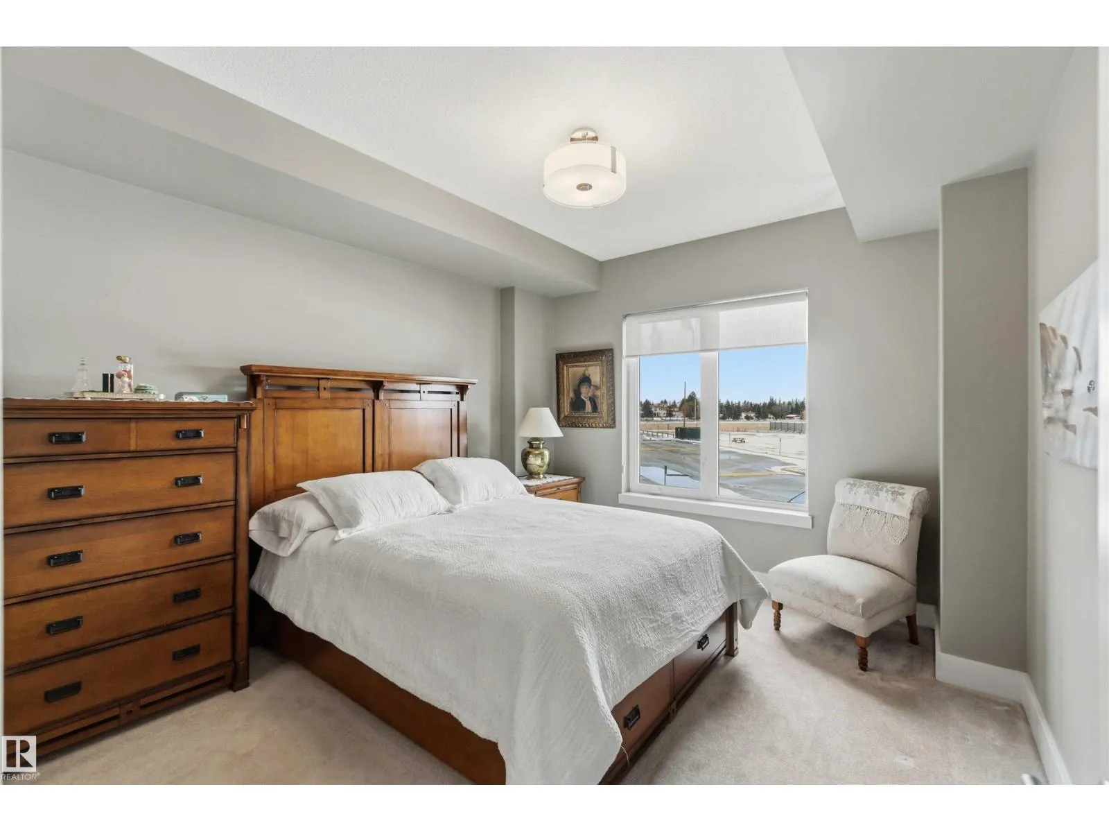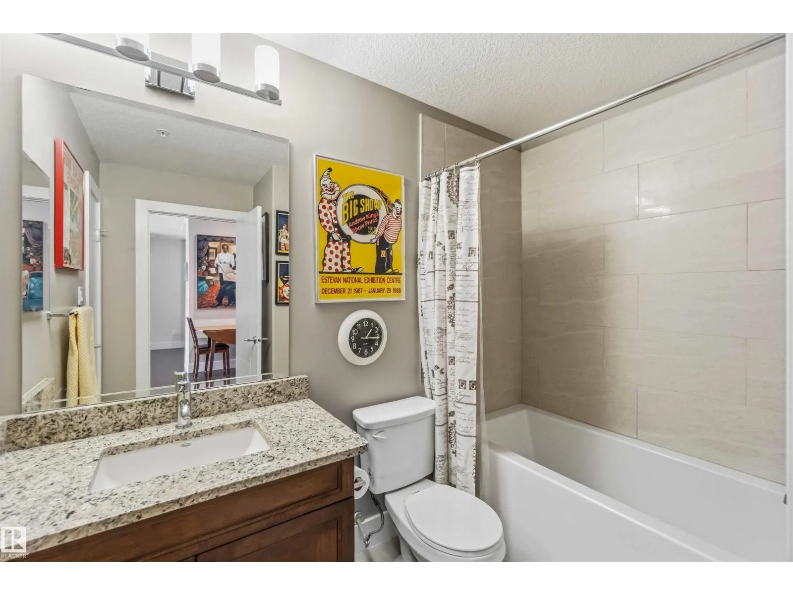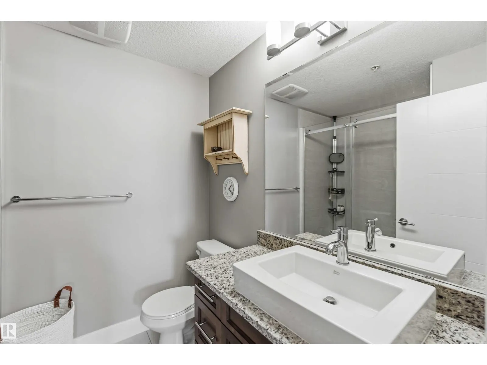 Ideal for an empty nester, professional couple, or investor, this well-maintained 2-bedroom, 2-bathroom condo is located in a rare concrete building offering excellent soundproofing and long-term value. Investors take noteâthe seller is willing to stay on as a tenant, providing immediate rental income. Enjoy great amenities, including a gym, social room, guest suite, and rooftop patio. The unit features hardwood floors, stainless steel appliances, granite countertops, and a functional breakfast bar. Central heating and cooling are included in the condo fees. The smart layout offers good bedroom separation, with a spacious primary suite featuring a walk-in closet and ensuite, plus a second bedroom near a full bath. In-suite laundry adds convenience. Unwind on the large balcony overlooking green space, away from street noise. Includes underground parking and storage. Close to amenities, shopping, and quick access to Anthony Henday. (id:27476)