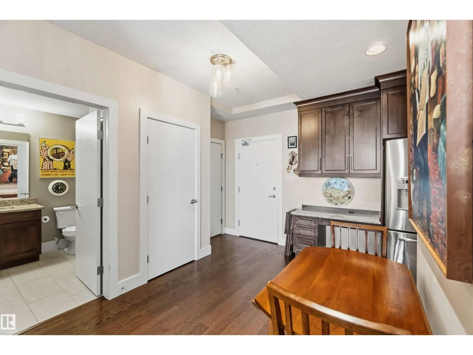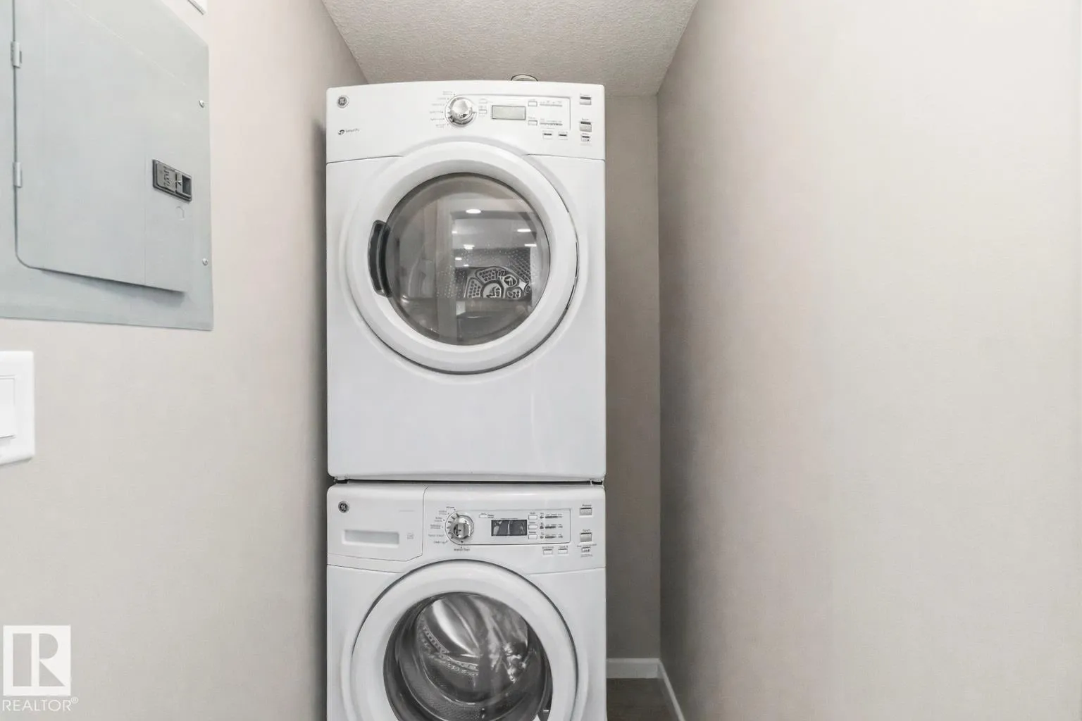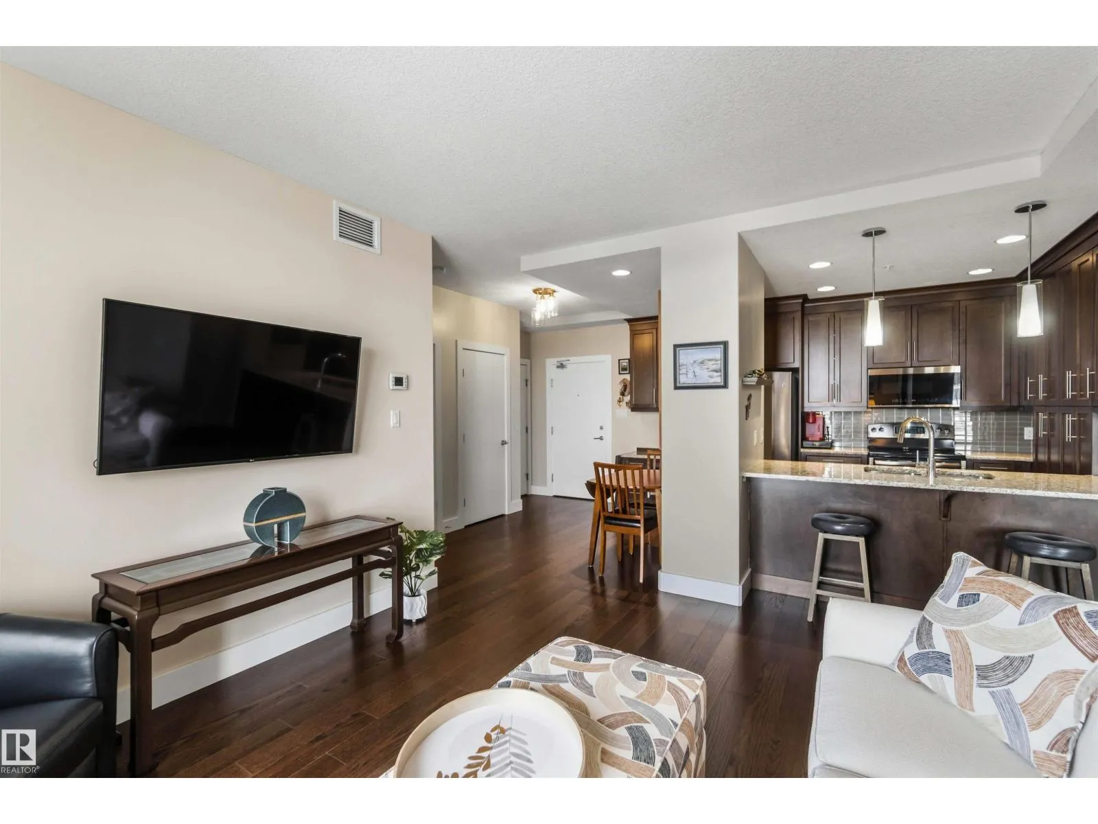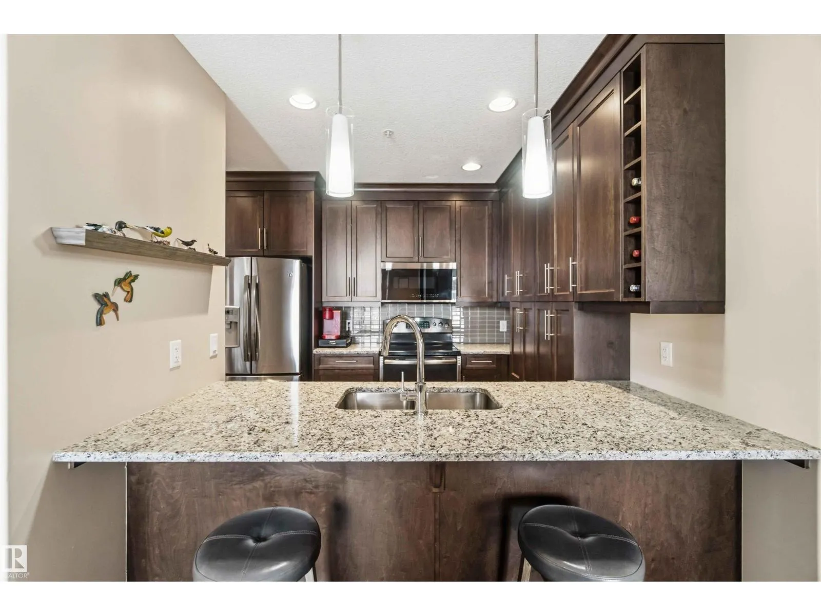 Ideal for an empty nester, professional couple, or investor, this well-maintained 2-bedroom, 2-bathroom condo is located in a rare concrete building offering excellent soundproofing and long-term value. Investors take noteâthe seller is willing to stay on as a tenant, providing immediate rental income. Enjoy great amenities, including a gym, social room, guest suite, and rooftop patio. The unit features hardwood floors, stainless steel appliances, granite countertops, and a functional breakfast bar. Central heating and cooling are included in the condo fees. The smart layout offers good bedroom separation, with a spacious primary suite featuring a walk-in closet and ensuite, plus a second bedroom near a full bath. In-suite laundry adds convenience. Unwind on the large balcony overlooking green space, away from street noise. Includes underground parking and storage. Close to amenities, shopping, and quick access to Anthony Henday. (id:27476)