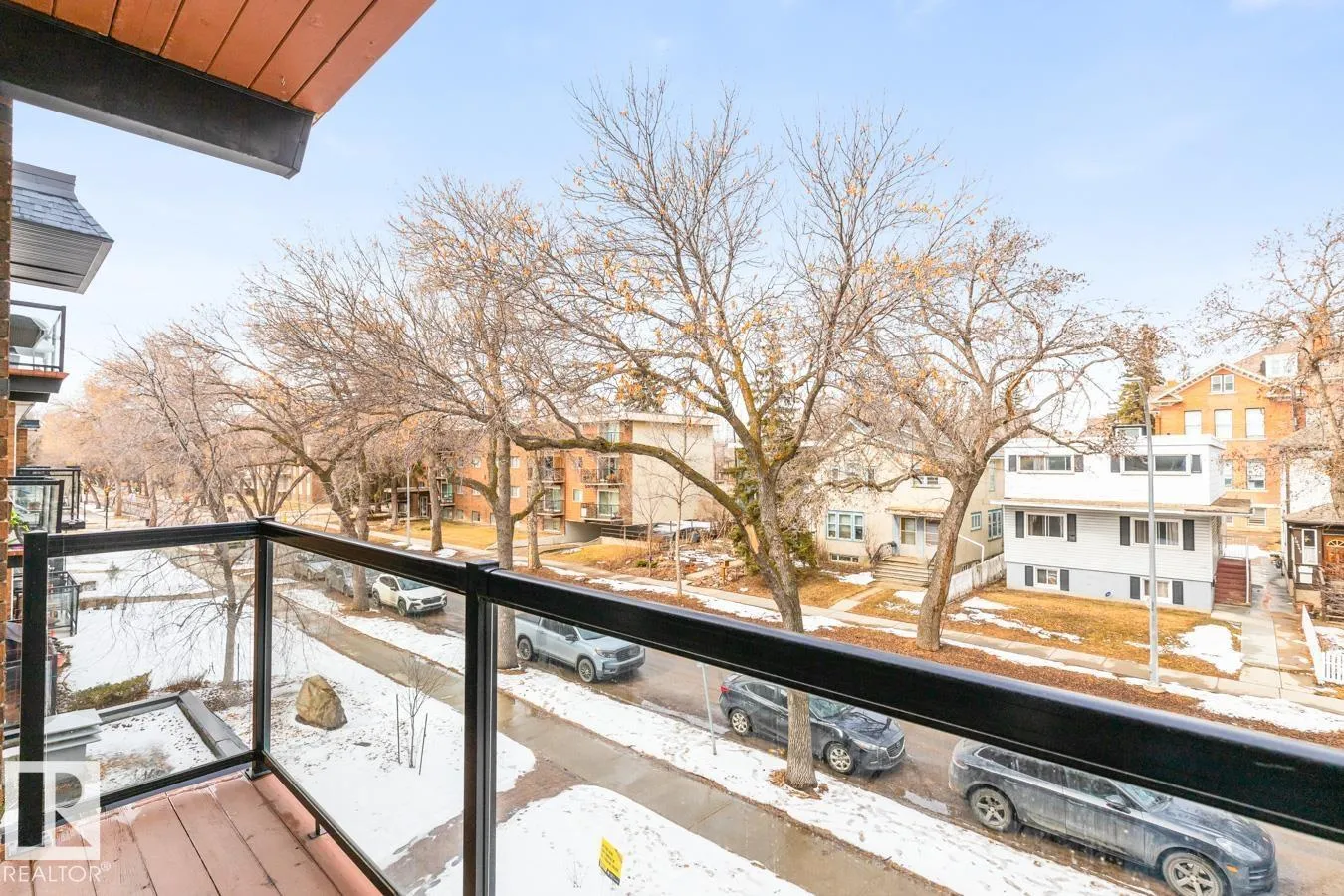 Situated on a Tree Lined Street in the heart of Strathcona one of Edmonton's most diverse and exciting communities with so much to offer is this one bedroom, one bath, apartment condominium with a tree top 3rd floor balcony, in suite laundry, energized covered parking stall, hardwood flooring throughout and street view. This ideal starter home has a galley kitchen with maple cabinets, granite counter tops, tiled backsplash, under mount sink and stainless appliances. The living & dining room offer ample space for your furniture layout and there is direct access to the balcony from the living room. The primary bedroom is well sized and has excellent closet space. The four piece bath is in good condition and features tiled floor and surround. There is a separate laundry closet with a stacked washer and dryer. The home comes with an assigned storage cage on the lower level. Building has undergone several updates over the past few years and appears to be in great shape inside and out. Pet Friendly building. (id:27476)