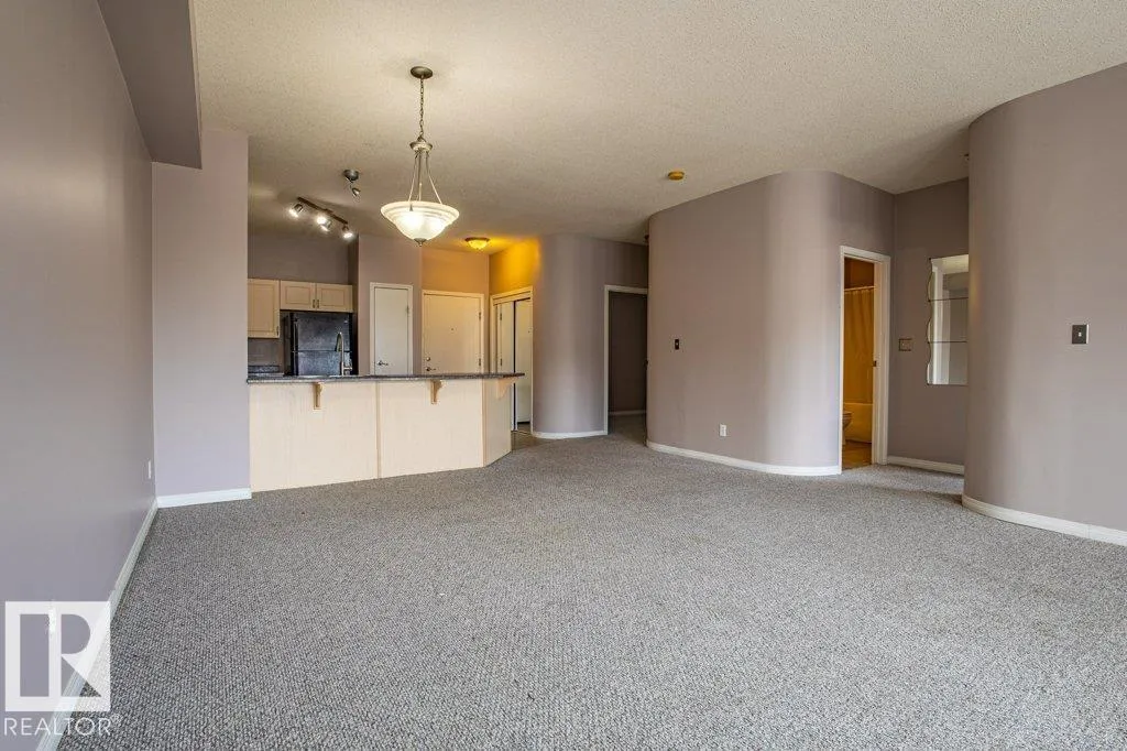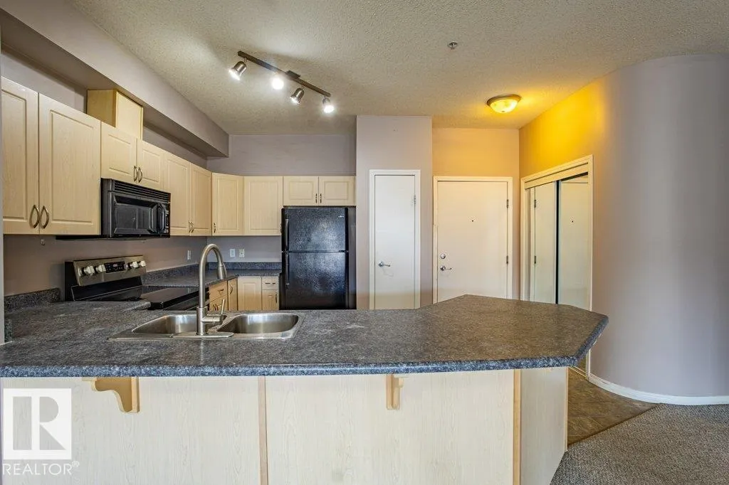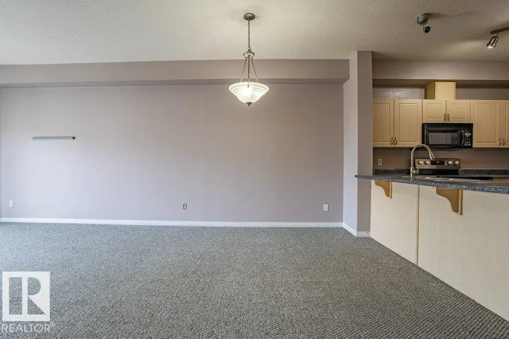 Enjoy convenience and comfort at the Estates of Clareview! This spacious 1 bedroom plus den condo offers over 900 sq. ft. of open living space with 9-foot ceilings. The modern kitchen is equipped with stainless steel appliances, a new stove, a built-in microwave, fridge, dishwasher, and bright white cabinetry. Additional features include an in-suite washer and dryer, gas BBQ outlet, and northwest-facing windows for natural light. The unit also comes with an underground parking stall (B57). Residents enjoy excellent building amenities such as a fitness centre and billiard room. With the LRT right at your doorstep, plus easy access to the City Recreation Centre (with swimming pool and library), shopping, dining, and schools, this is the perfect combination of lifestyle and location. (id:27476)