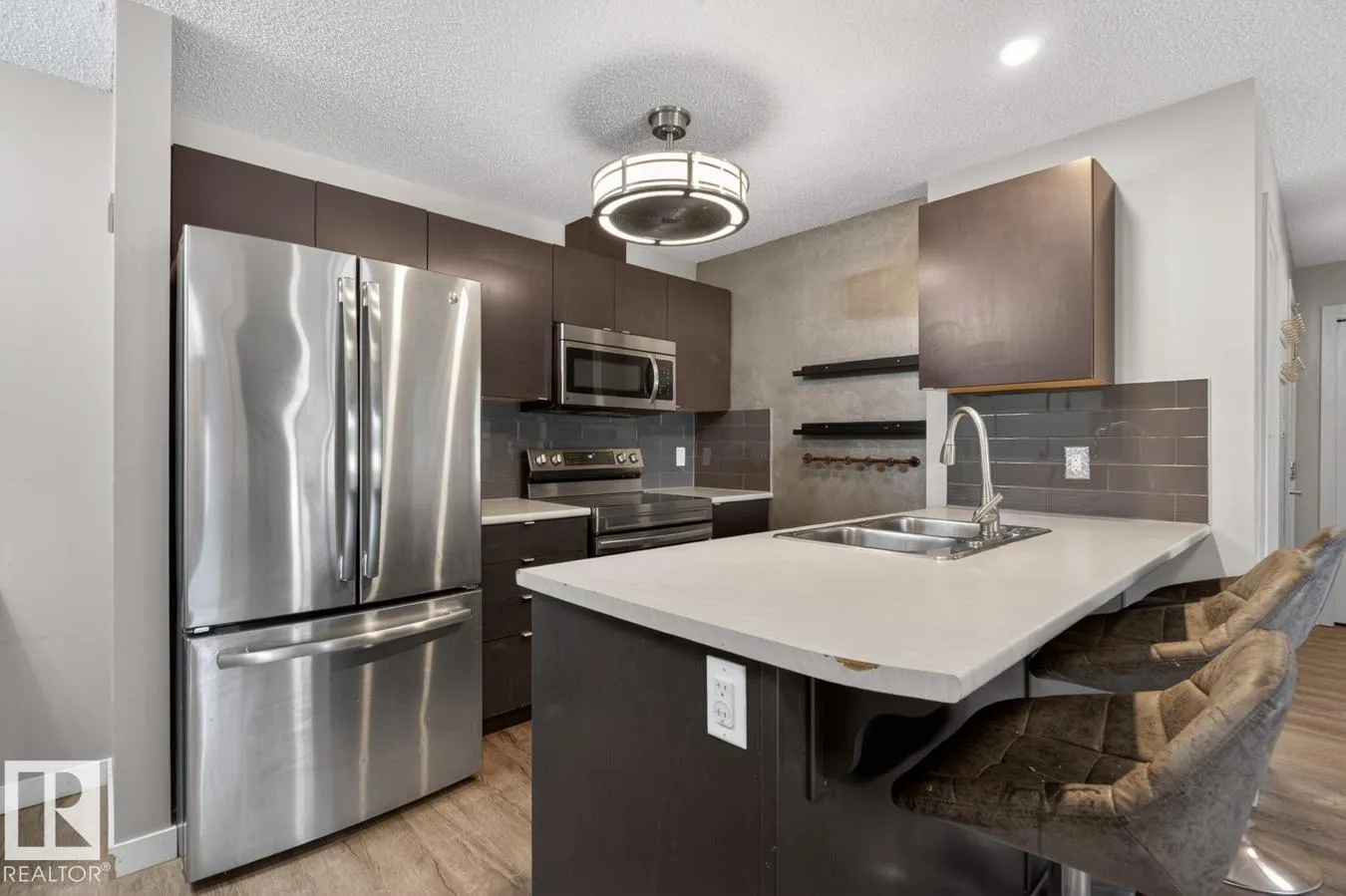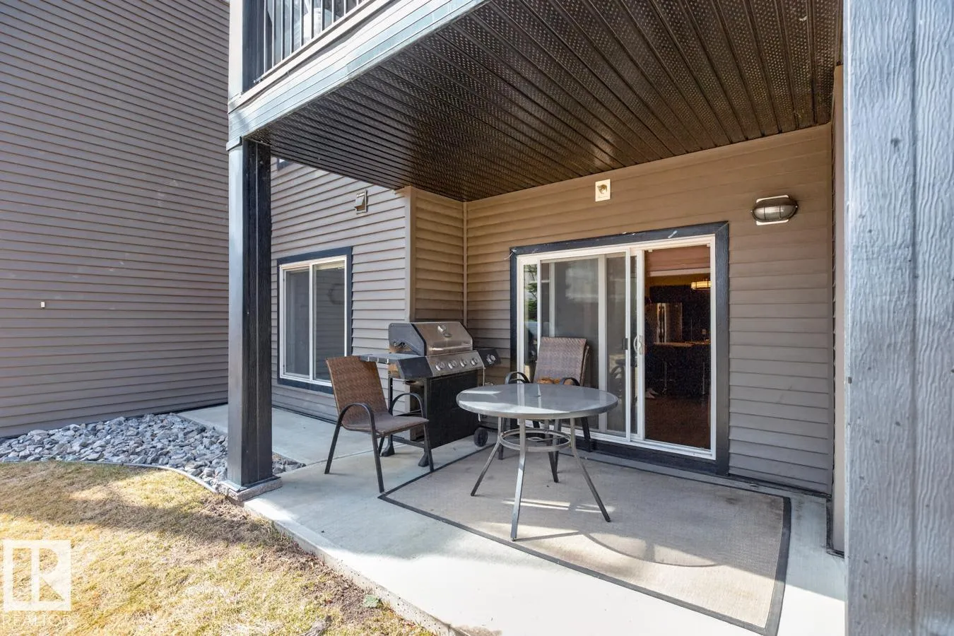Welcome to this lovely first-floor unit featuring TWO LEGAL BEDROOMS, ideally positioned in one of the best locations in the building & just steps from the lobby for quick and easy access. The bedrooms are thoughtfully separated for added privacy. The open-concept layout connects the kitchen and living area, offering a functional space perfect for everyday living. The primary suite includes a walk-through closet leading to a 4-piece ensuite, while the second bedroom sits near another full 4-piece bathroom, ideal for guests, roommates, or a home office. Step outside to a generous patio backing onto green spaceâperfect for relaxing or summer BBQ. Additional features include in-suite laundry and a TITLED underground parking stall. Walking distance to a Kâ9 school, groceries, amenities, with quick Henday access, transit, shopping, and trails nearby. Welcome Home. (id:27476)