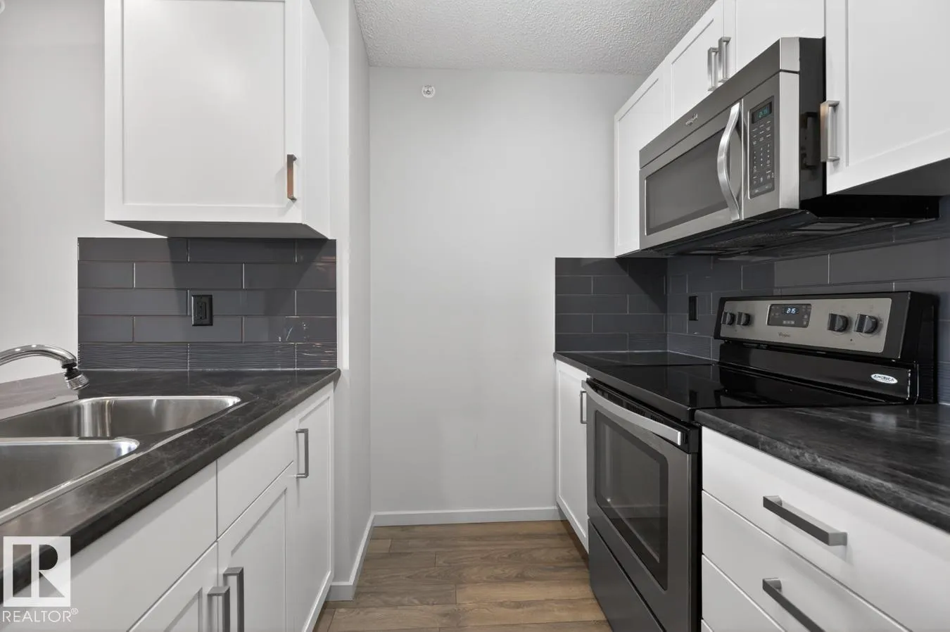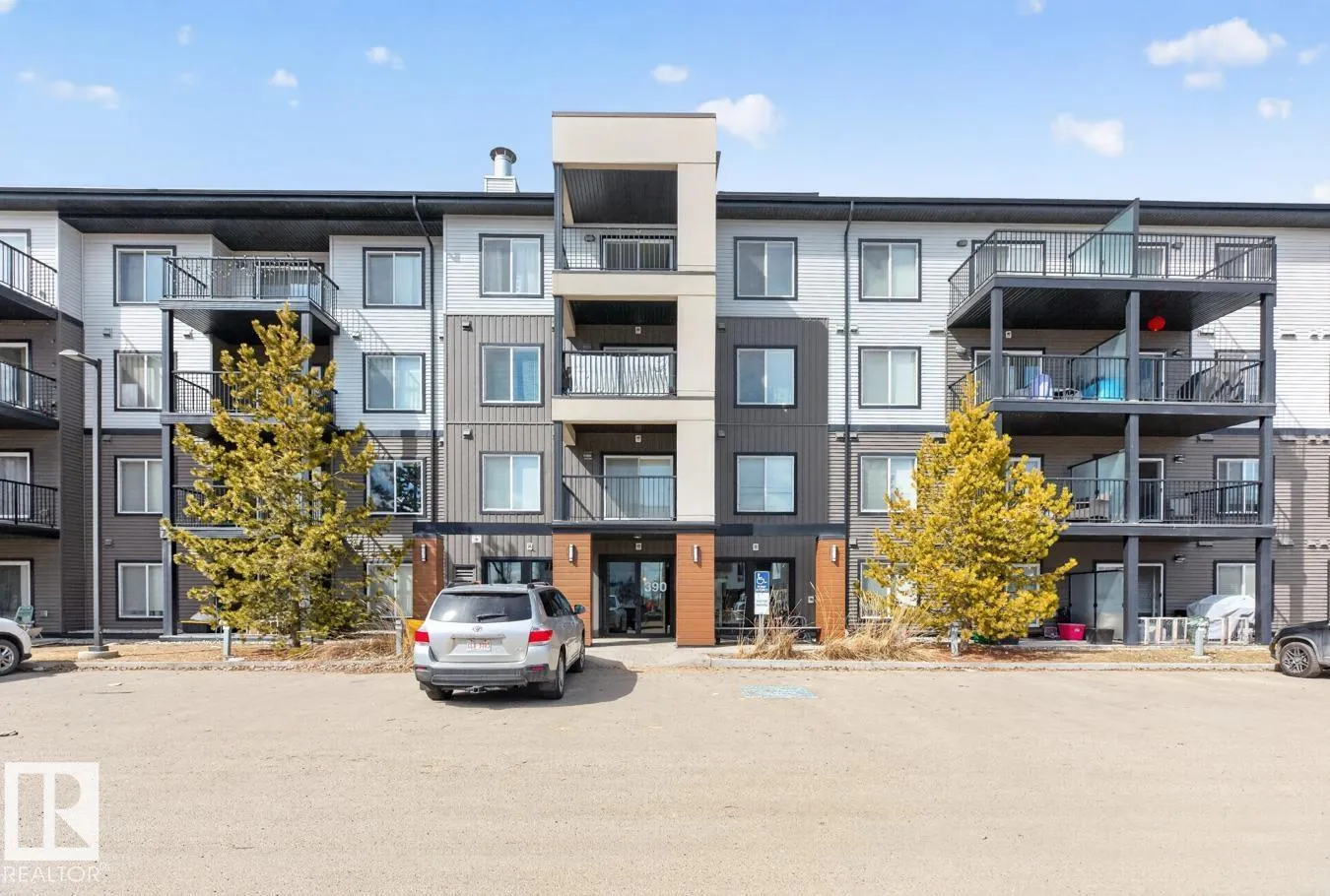 Welcome to Elements at Windermere. This well-located 2 BEDROOM, 2 BATHROOM TOP FLOOR unit offers a functional layout just minutes from parks, schools, shopping, dining, and quick access to the Anthony Henday for easy commuting in any direction. Situated on the fourth floor, the home features laminate flooring, stainless steel appliances, and clean white cabinetry. The open-concept great room design includes a convenient built-in desk off the kitchen and in-suite stacked laundry near the entry. The primary bedroom offers a walk-through closet and full ensuite, while the second bedroom is generously sized with easy access to another full bathroomâideal for guests or shared living. Step out onto the private balcony to relax or enjoy summer BBQs. The unit also includes one titled underground parking stall and access to ample visitor parking. WELCOME HOME (id:27476)