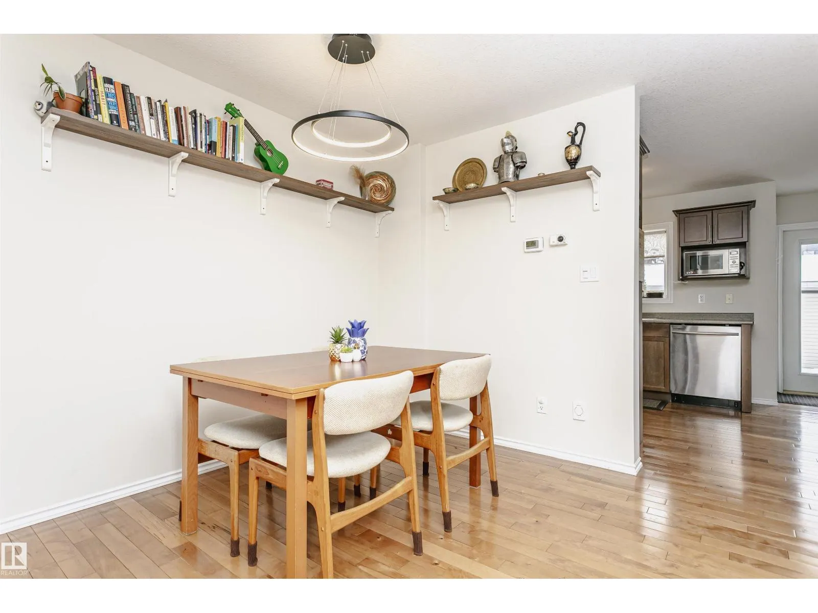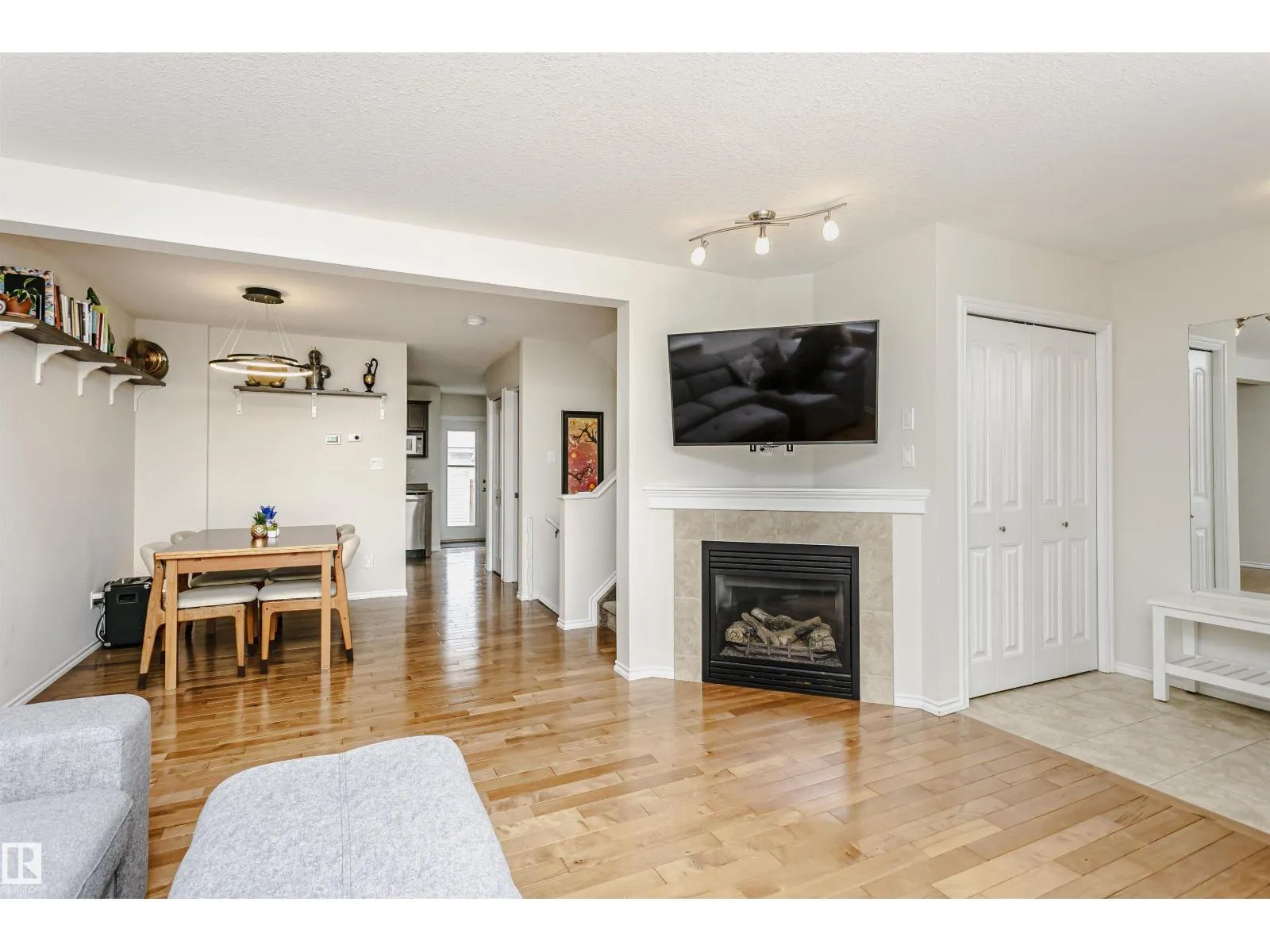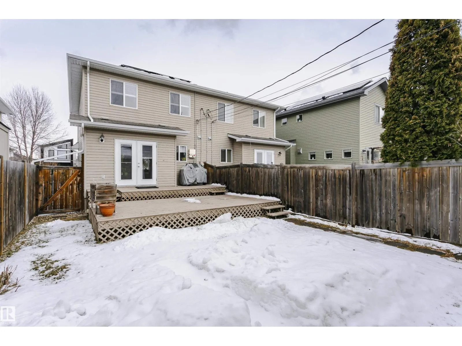 Amazing 4 bedroom/3.5 bathroom non-condo half-duplex in the very desirable neighbourhood of Ritchie. Equipped with solar and A/C, this modern home is only blocks away from Mill Creek Ravine! The main floor has hardwood throughout, a bright, open living room/formal dining room space with tile-surround gas fireplace, and a kitchen with stainless steel appliances open to a den that can also be used as an eat-in kitchen area. Upstairs you will find a spacious primary suite with a 3-piece ensuite bath and walk-in closet, as well as two additional bedrooms and another 4-piece bathroom. The finished basement, which could be converted into a legal suite, has a separate entrance and includes the 4th bedroom, 3-piece bath, a kitchen with sink, built-in microwave and small fridge and a sizeable rec room. Additional features include a large deck and double detached garage! Minutes from shopping, public transport, trendy restaurants and all amenities, this home is a must see! (id:27476)