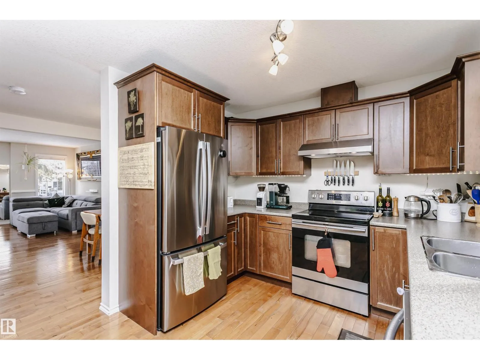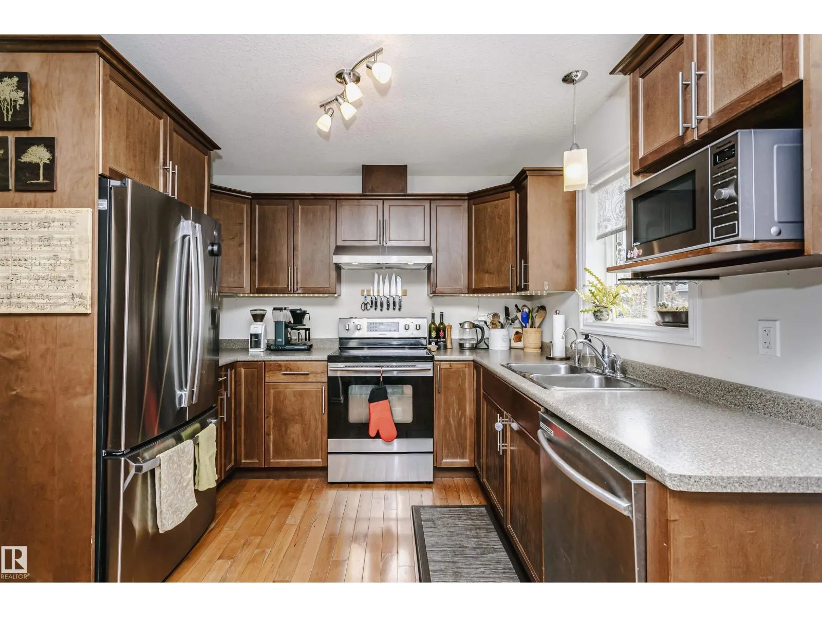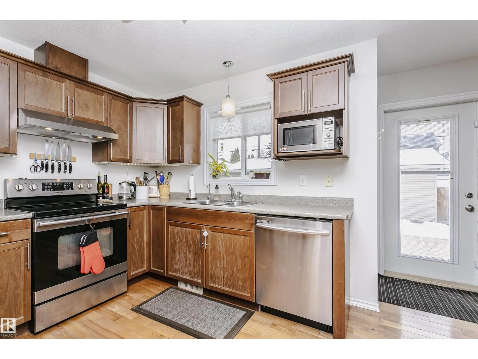 Amazing 4 bedroom/3.5 bathroom non-condo half-duplex in the very desirable neighbourhood of Ritchie. Equipped with solar and A/C, this modern home is only blocks away from Mill Creek Ravine! The main floor has hardwood throughout, a bright, open living room/formal dining room space with tile-surround gas fireplace, and a kitchen with stainless steel appliances open to a den that can also be used as an eat-in kitchen area. Upstairs you will find a spacious primary suite with a 3-piece ensuite bath and walk-in closet, as well as two additional bedrooms and another 4-piece bathroom. The finished basement, which could be converted into a legal suite, has a separate entrance and includes the 4th bedroom, 3-piece bath, a kitchen with sink, built-in microwave and small fridge and a sizeable rec room. Additional features include a large deck and double detached garage! Minutes from shopping, public transport, trendy restaurants and all amenities, this home is a must see! (id:27476)