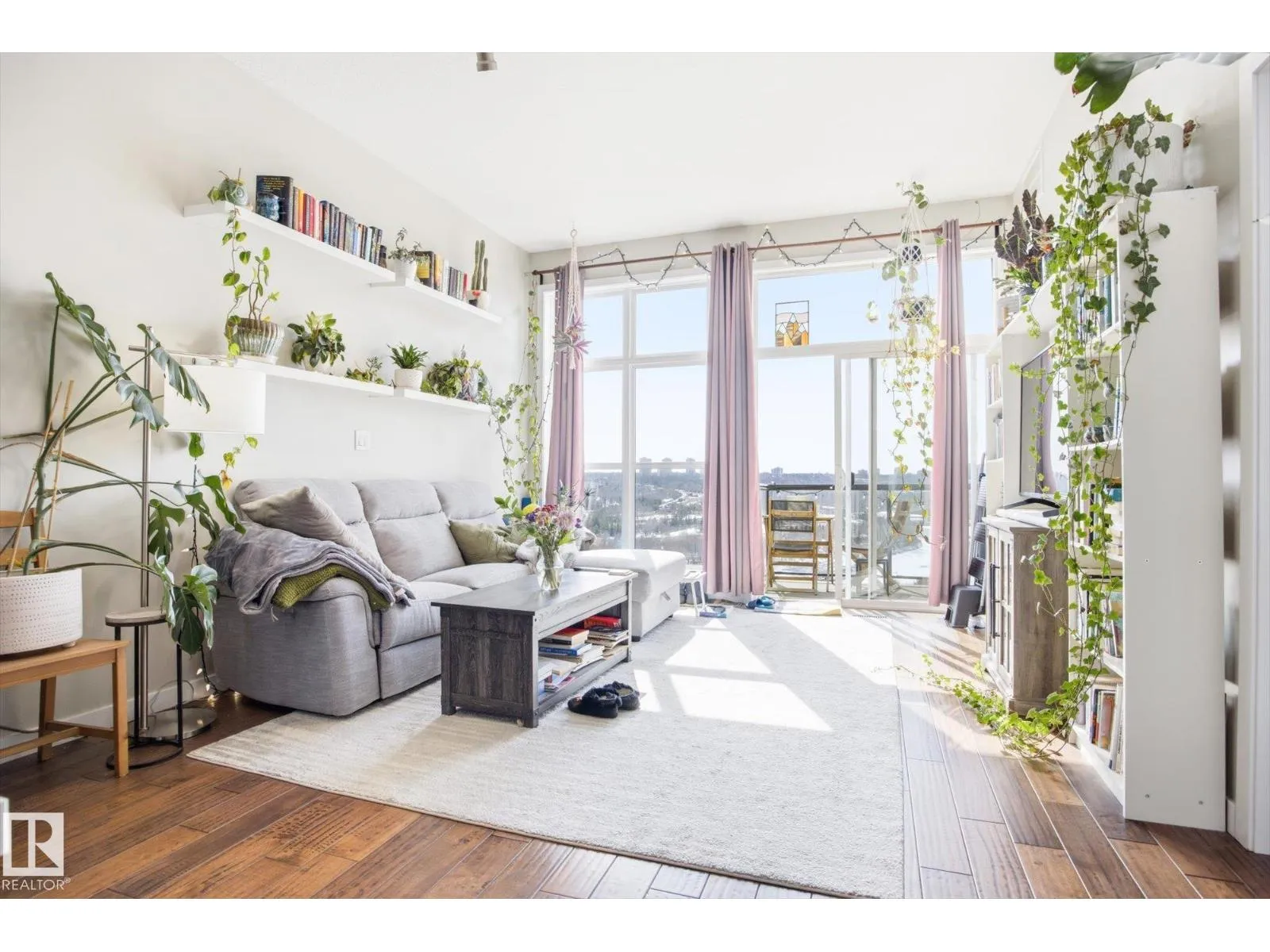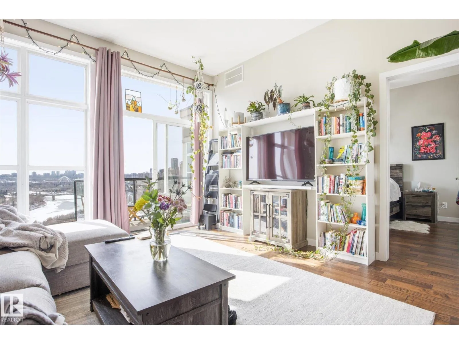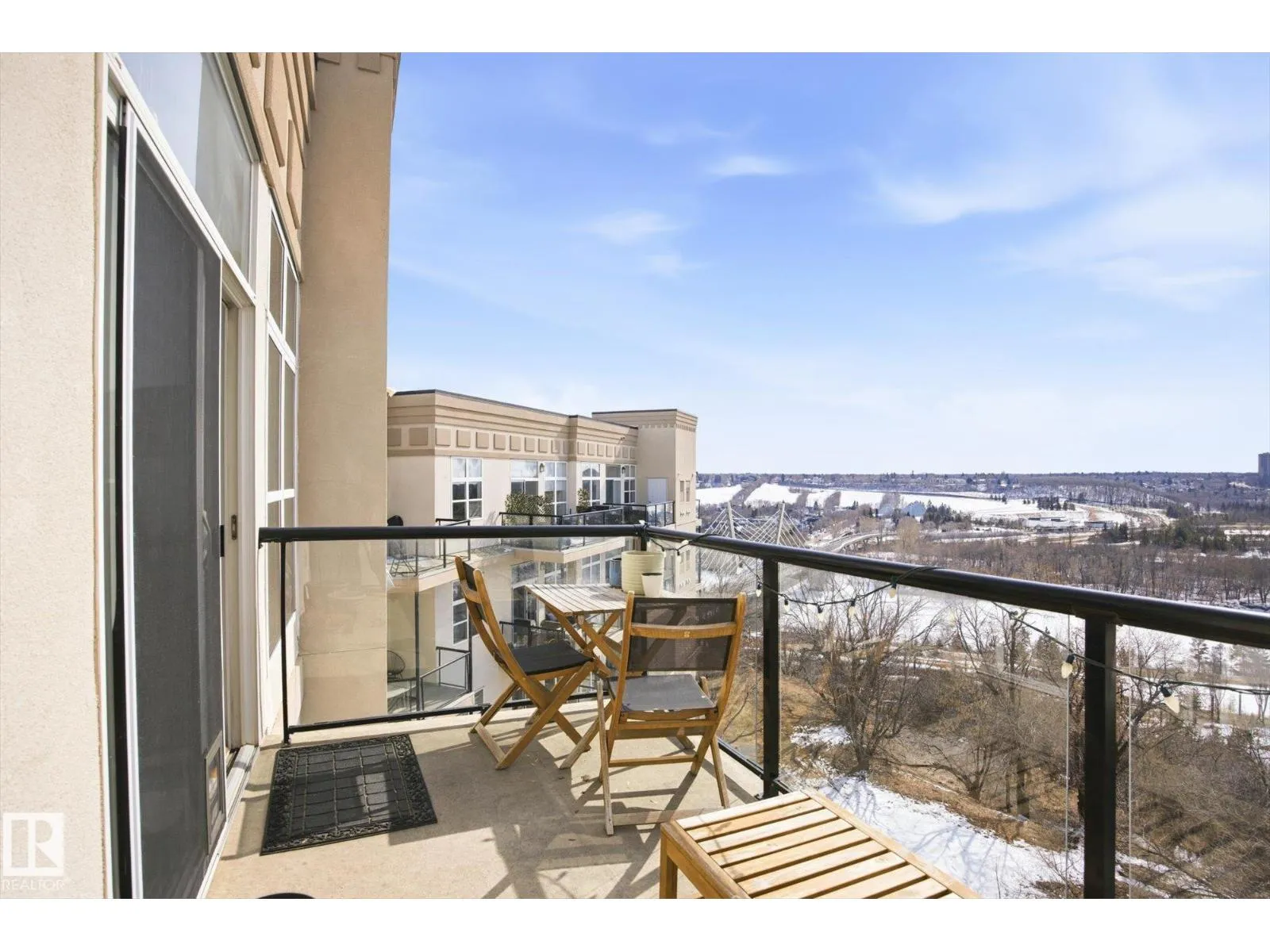 Perched on the TOP FLOOR, Air-conditioned home with incredible River Valley views, this exceptional condo offers a rare combination of lifestyle and value. Includes TWO titled underground parking stalls one of which has extra STORAGE. The home features two generously sized bedrooms filled with natural light, along with a south-facing balcony w/ gas BBQ line; that delivers uninterrupted views. Perfect for enjoying everything from summer fireworks to vibrant fall colours. Inside, youâll find a fresh, warm feel with rich hardwood flooring throughout. In-unit laundry, The open-concept layout is anchored by a spacious kitchen with a large island and raised eating bar, making it ideal for hosting or casual everyday living. A beautifully updated bathroom, ample storage, and the unique charm of exterior walkways round out the space. Set in a prime downtown Edmonton location, this property puts you steps from the best the city has to offerâwhile giving you a peaceful retreat above it all. Welcome to The View! (id:27476)