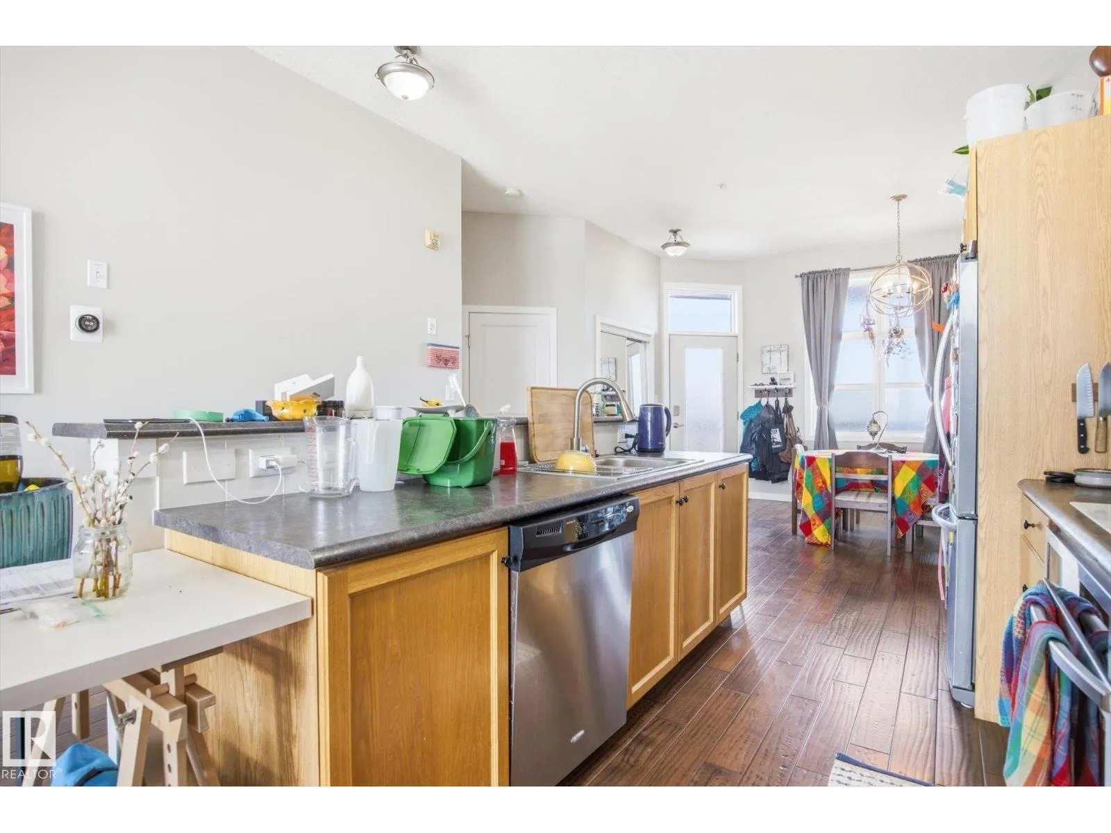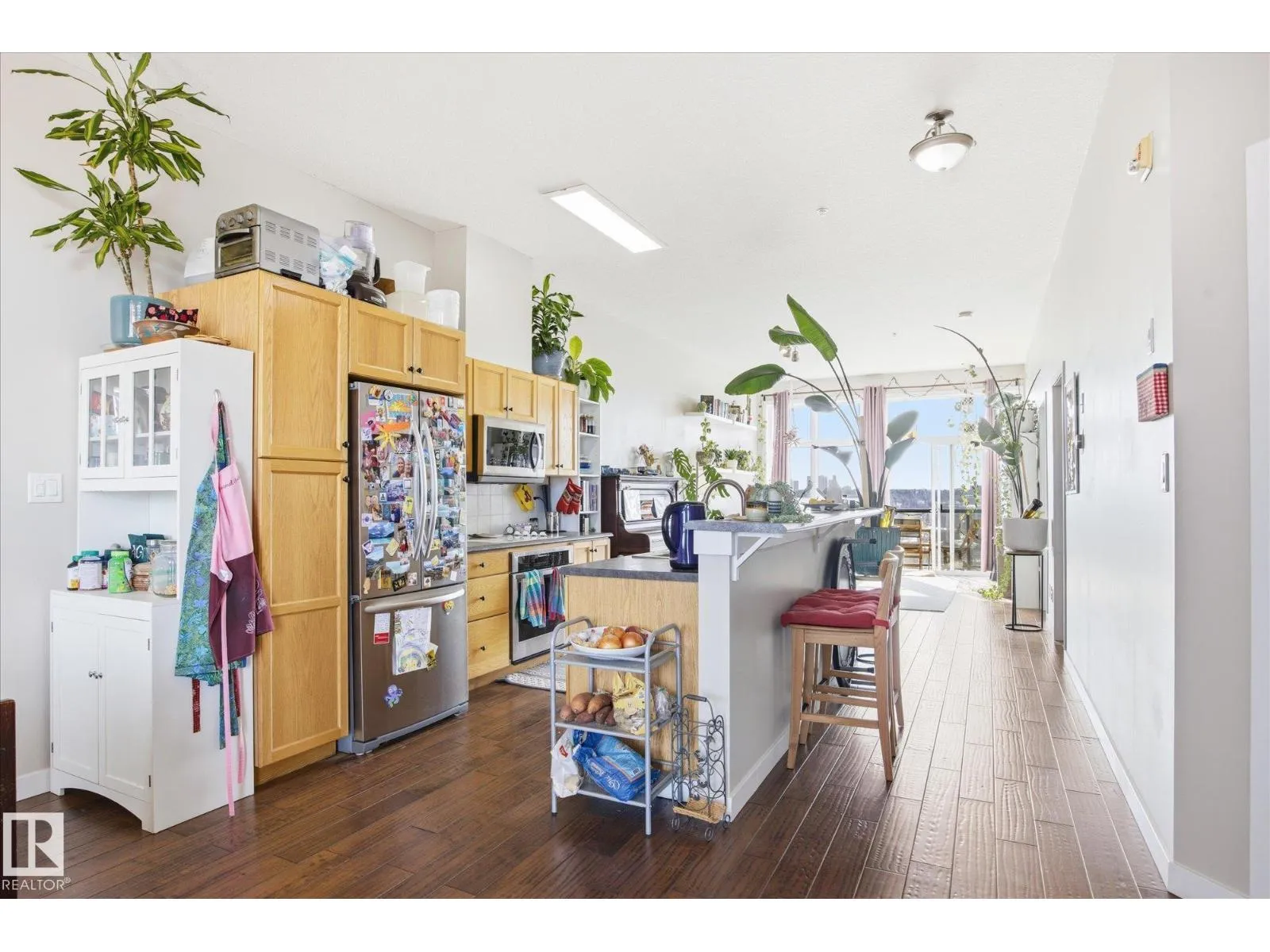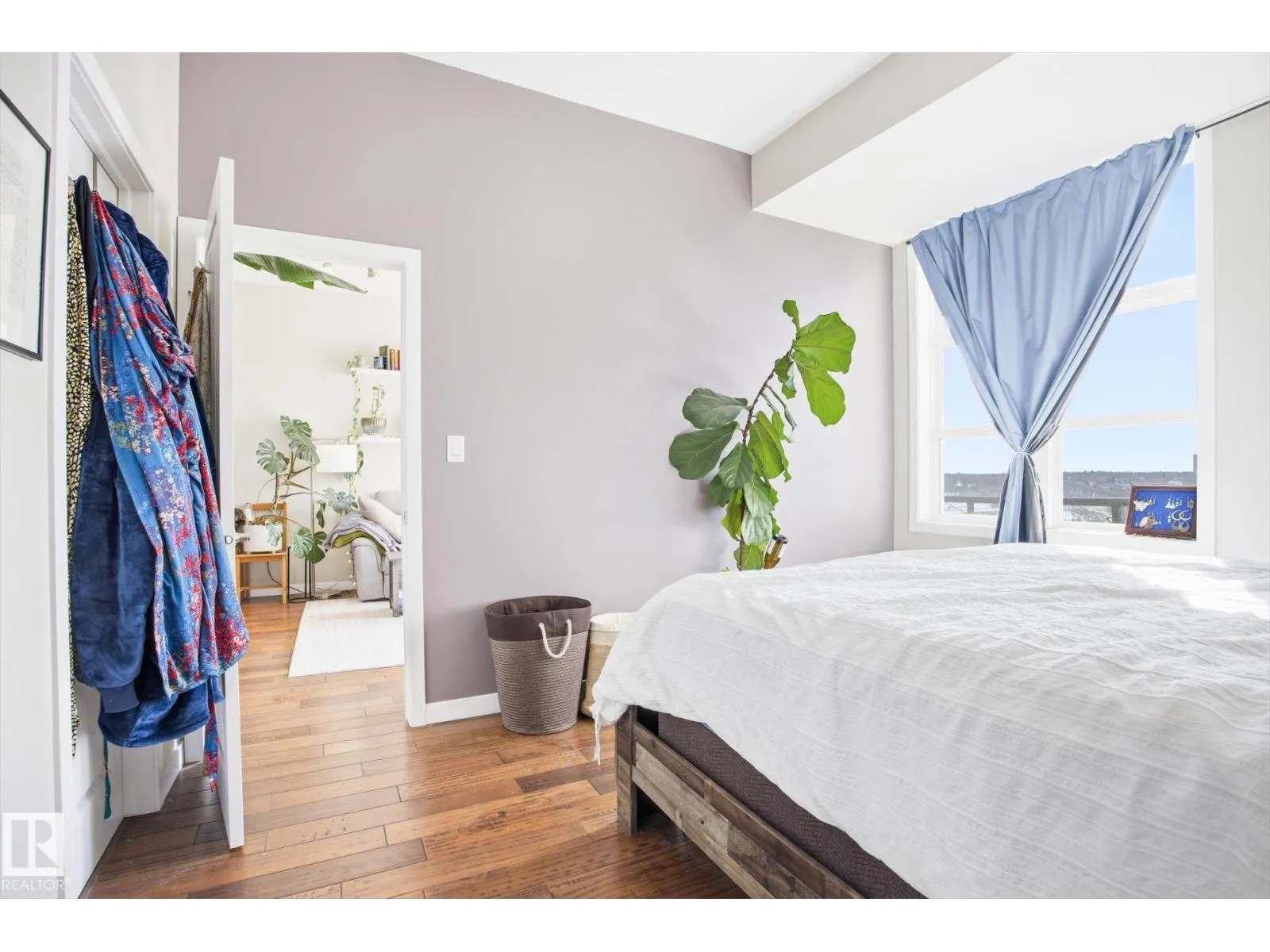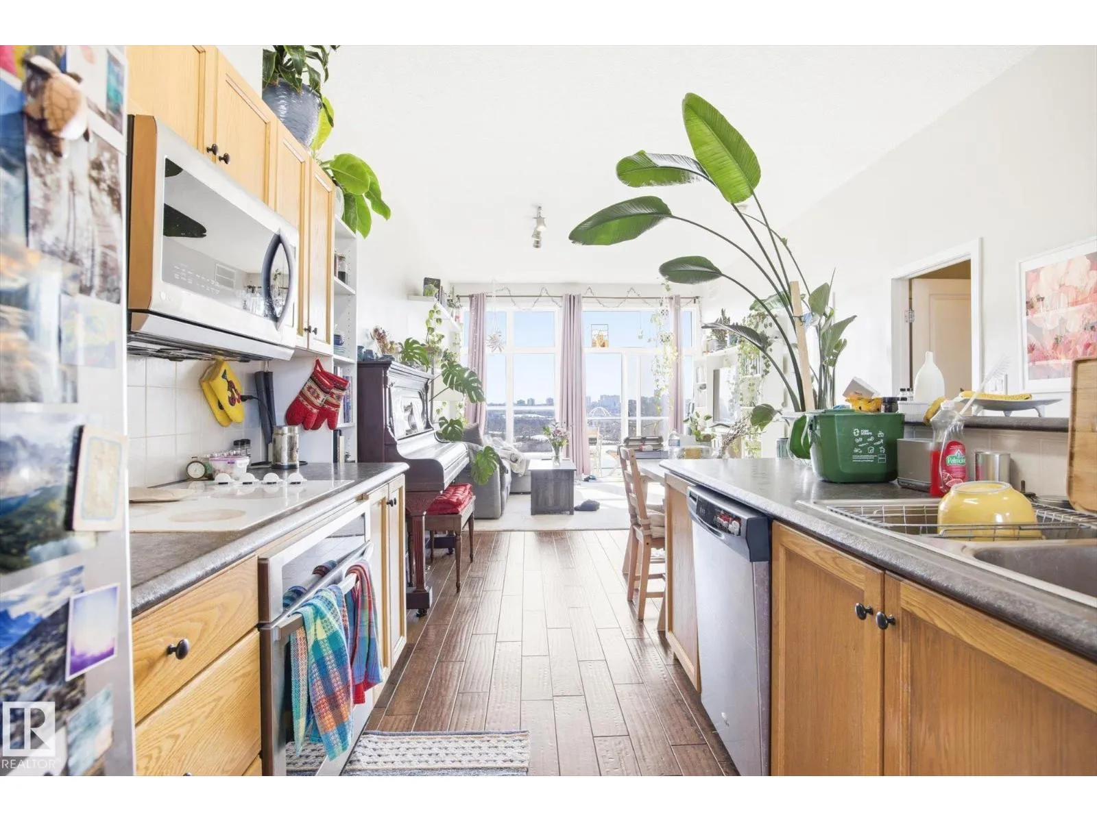 Perched on the TOP FLOOR, Air-conditioned home with incredible River Valley views, this exceptional condo offers a rare combination of lifestyle and value. Includes TWO titled underground parking stalls one of which has extra STORAGE. The home features two generously sized bedrooms filled with natural light, along with a south-facing balcony w/ gas BBQ line; that delivers uninterrupted views. Perfect for enjoying everything from summer fireworks to vibrant fall colours. Inside, youâll find a fresh, warm feel with rich hardwood flooring throughout. In-unit laundry, The open-concept layout is anchored by a spacious kitchen with a large island and raised eating bar, making it ideal for hosting or casual everyday living. A beautifully updated bathroom, ample storage, and the unique charm of exterior walkways round out the space. Set in a prime downtown Edmonton location, this property puts you steps from the best the city has to offerâwhile giving you a peaceful retreat above it all. Welcome to The View! (id:27476)