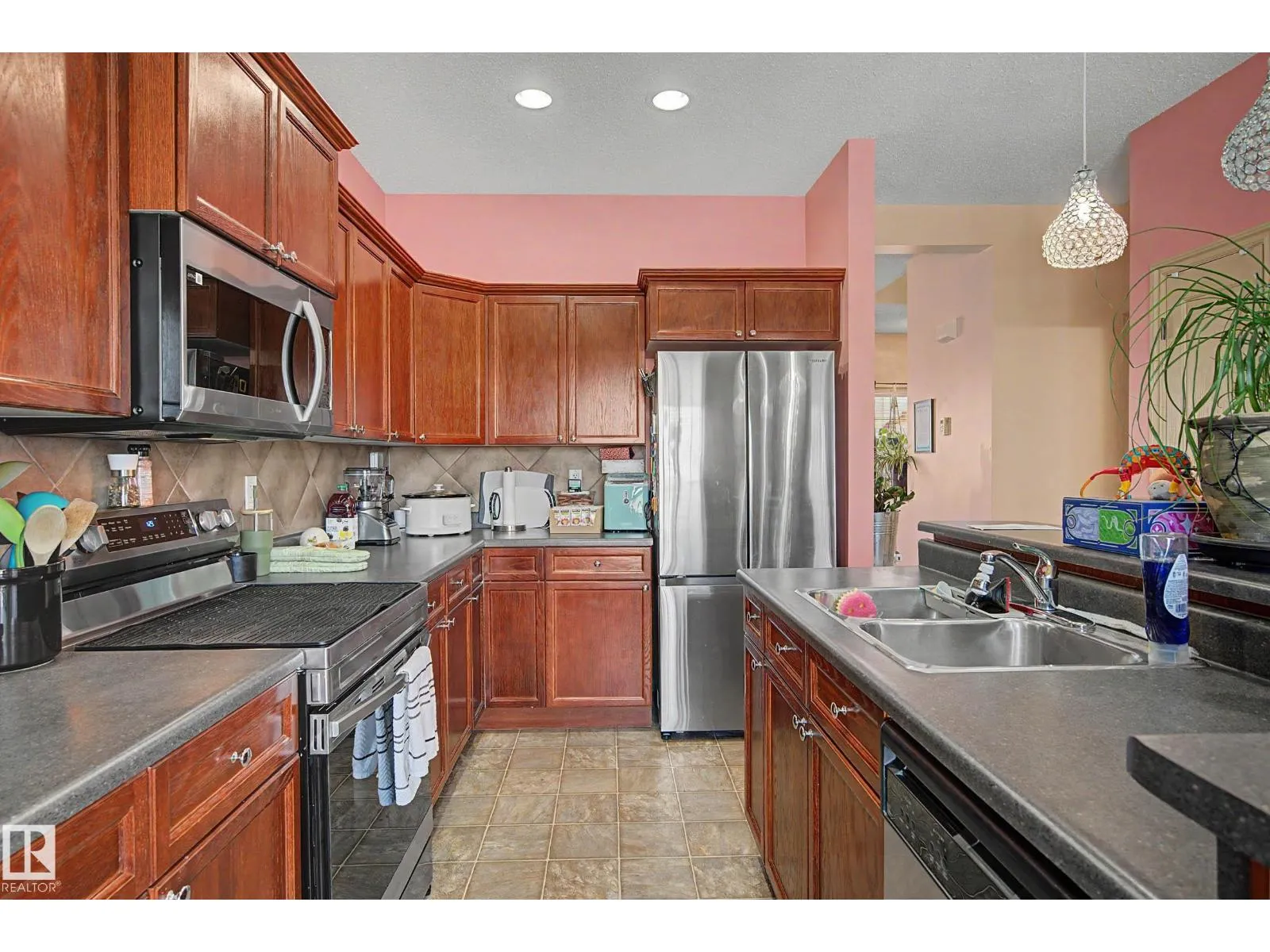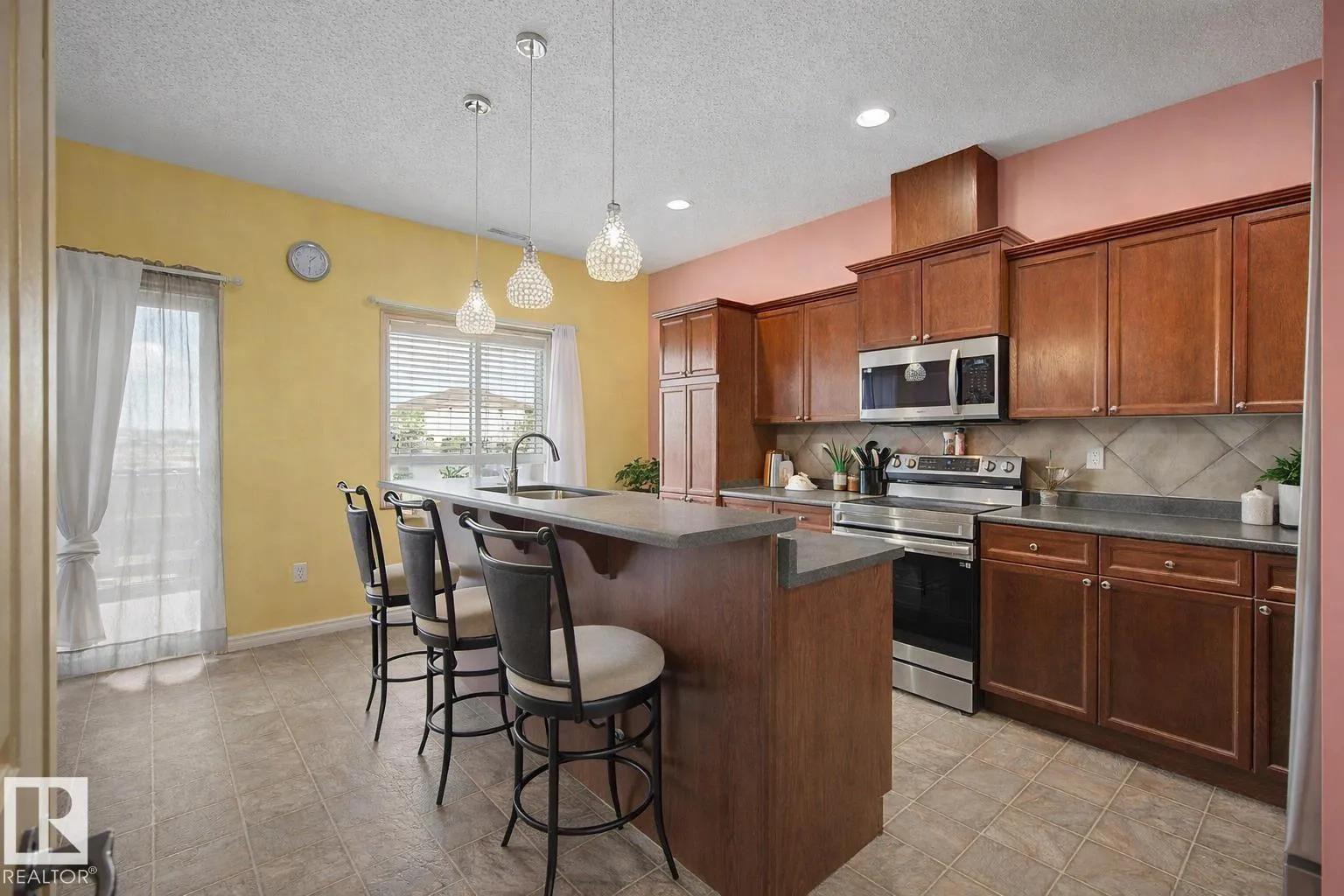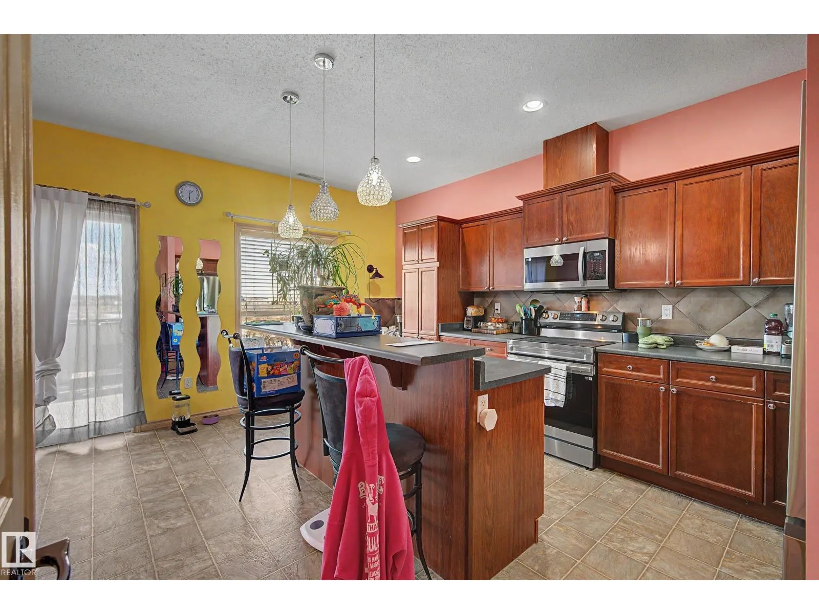 Welcome to Tuscan Village in the sought-after community of Carlton, offering quick access to Anthony Henday Drive and close proximity to shopping, schools, parks, and all everyday amenities. This charming 1,400 sq ft townhome features a bright and spacious open-concept layout, perfect for both relaxing and entertaining. The inviting living room is highlighted by a cozy gas fireplace, creating the perfect space to unwind. The large kitchen is a standout, complete with stainless steel appliances, ample cabinetry, generous counter space, and a massive island with raised breakfast barâideal for meal prep and casual dining. Upstairs, youâll find a spacious primary bedroom with a walk-in closet and private 4-piece ensuite. The second bedroom also offers its own ensuite and walk-in closet, making it ideal for guests, a roommate, or a growing family. Convenient upper-floor laundry adds to the functionality. The basement includes a large storage area and access to two underground parking stalls. (id:27476)