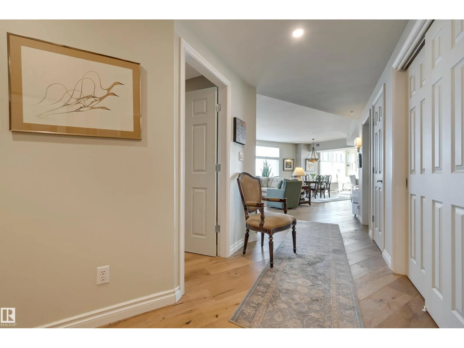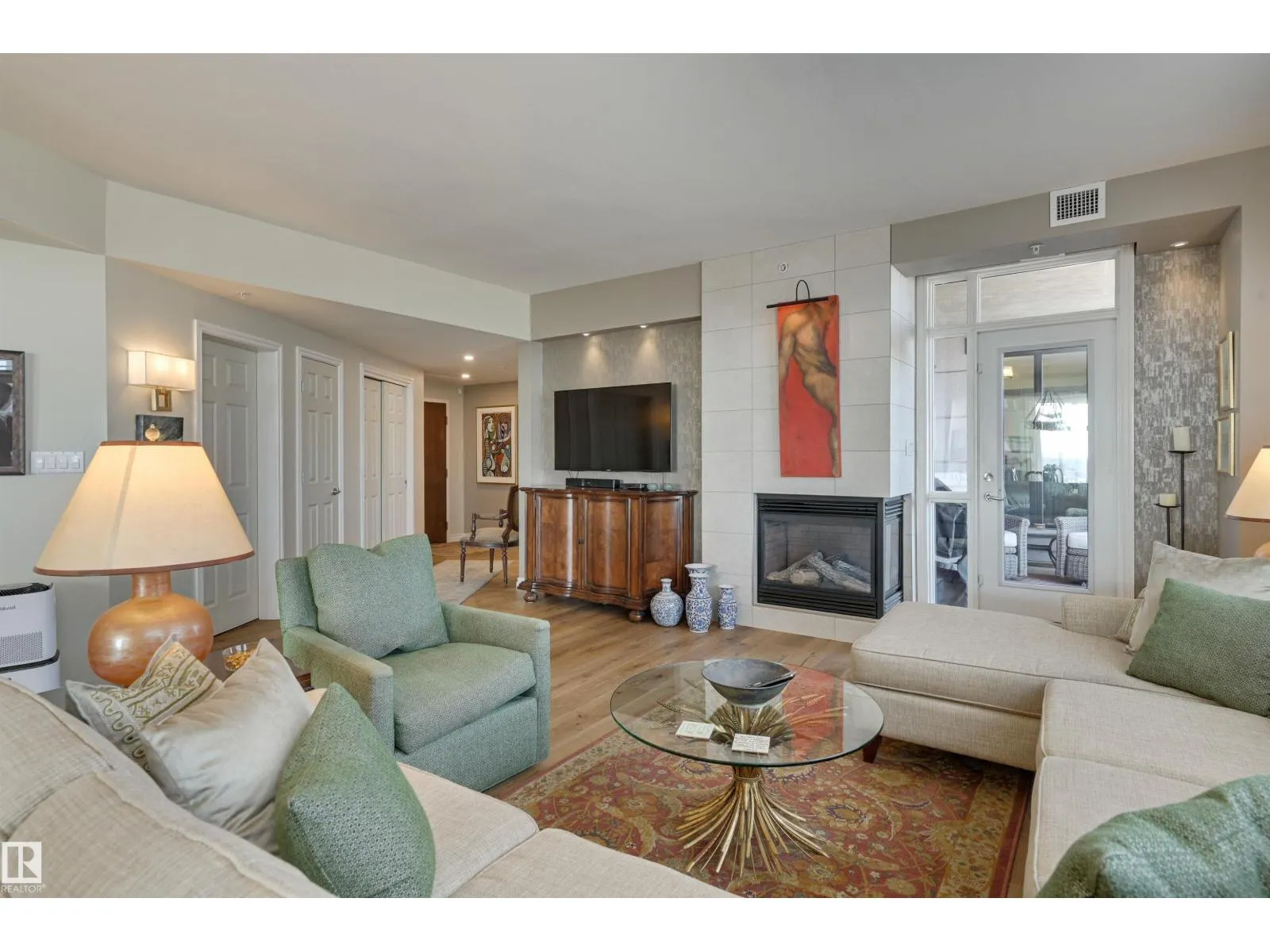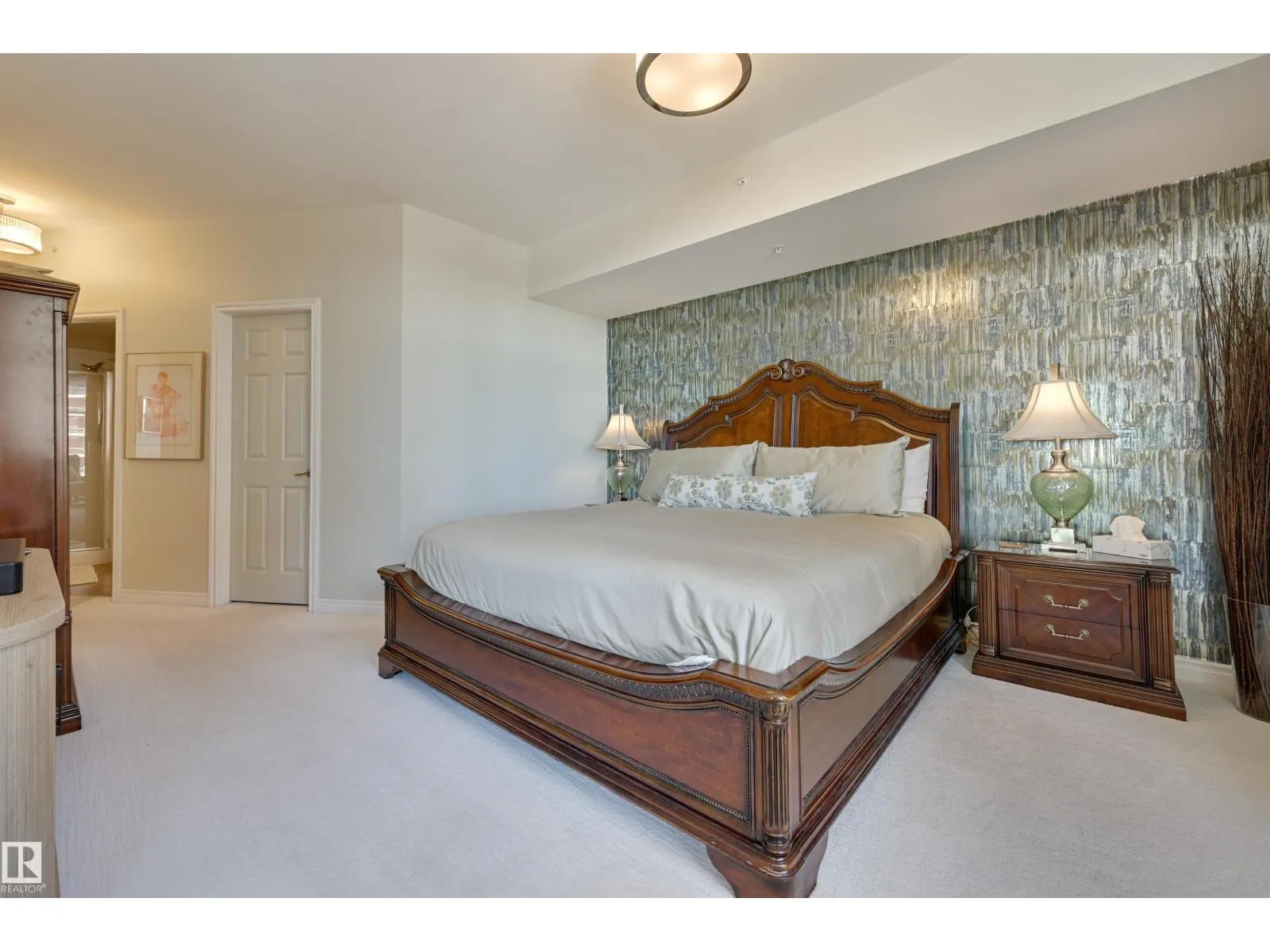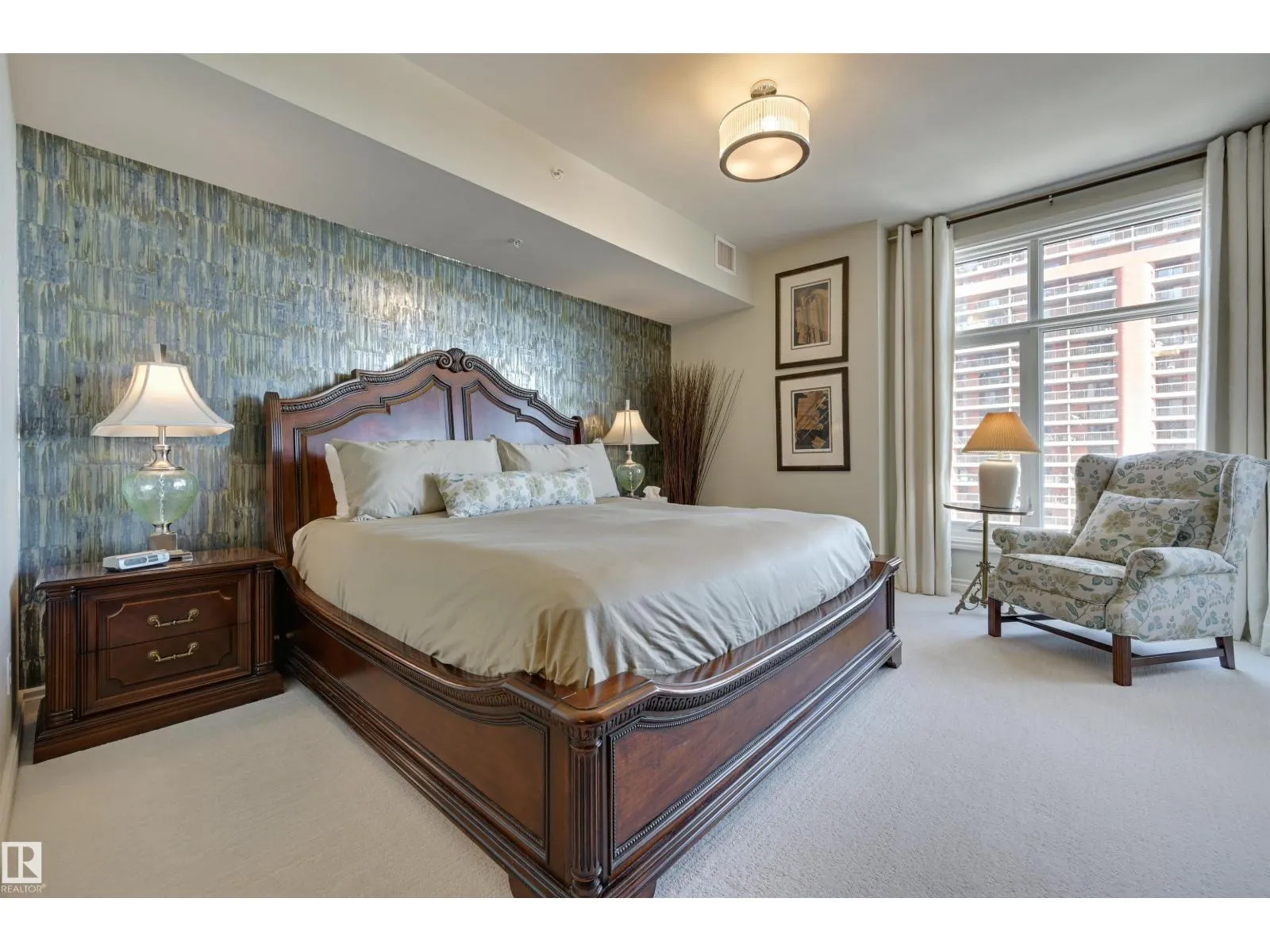 SPECTACULAR RIVER VALLEY VIEW from this UPGRADED 1520 sq.ft. 2 bedroom 2 bathroom condo in a SECURE GATED COMMUNITY conveniently located on Jasper Ave with the bus at your door, the river valley trails & quick access to the Ice District & U of A. Features OPEN FLOOR PLAN with 9' ceilings & floor to ceiling windows, scraped ceilings, distressed white oak hardwood flooring, luxurious carpeting in the primary bedroom & tile in the bathrooms, kitchen & laundry room. Chef's kitchen with ample cabinetry, granite countertops, pantry, raised eating bar, S/S appliances, subway tile backsplash & recessed lighting. Murphy bed in the 2nd bedroom. The primary suite has a walk-in closet & 4 piece ensuite. Heat pump & humidifier (2019). A/C, 2 U/G PARKING. Condo fees INCLUDE ALL UTILITIES! EXTENSIVE UPGRADES IN THE BUILDING: triple pane windows (2024), roof (2019), cooling tower (2023), exterior membrane (2025/2026), security upgrades, landscaping (2026). On-site manager, exercise room. Pet friendly. GORGEOUS! (id:27476)