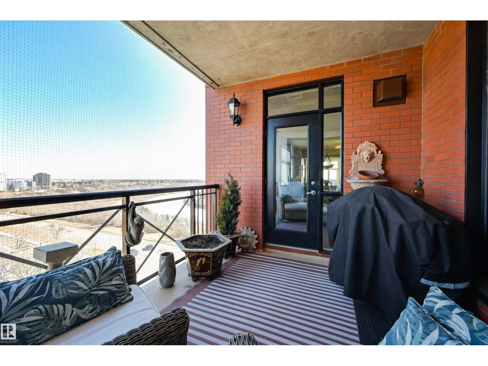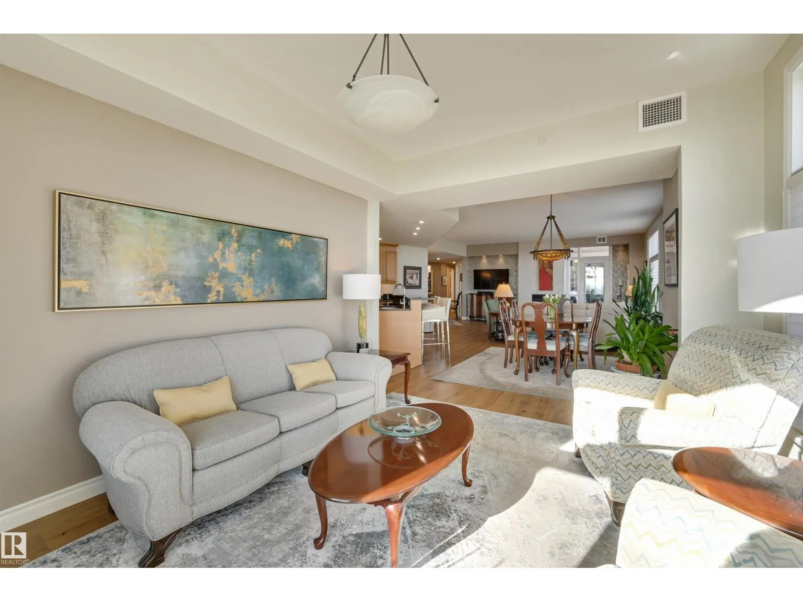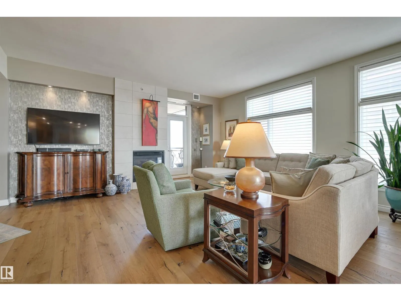 SPECTACULAR RIVER VALLEY VIEW from this UPGRADED 1520 sq.ft. 2 bedroom 2 bathroom condo in a SECURE GATED COMMUNITY conveniently located on Jasper Ave with the bus at your door, the river valley trails & quick access to the Ice District & U of A. Features OPEN FLOOR PLAN with 9' ceilings & floor to ceiling windows, scraped ceilings, distressed white oak hardwood flooring, luxurious carpeting in the primary bedroom & tile in the bathrooms, kitchen & laundry room. Chef's kitchen with ample cabinetry, granite countertops, pantry, raised eating bar, S/S appliances, subway tile backsplash & recessed lighting. Murphy bed in the 2nd bedroom. The primary suite has a walk-in closet & 4 piece ensuite. Heat pump & humidifier (2019). A/C, 2 U/G PARKING. Condo fees INCLUDE ALL UTILITIES! EXTENSIVE UPGRADES IN THE BUILDING: triple pane windows (2024), roof (2019), cooling tower (2023), exterior membrane (2025/2026), security upgrades, landscaping (2026). On-site manager, exercise room. Pet friendly. GORGEOUS! (id:27476)