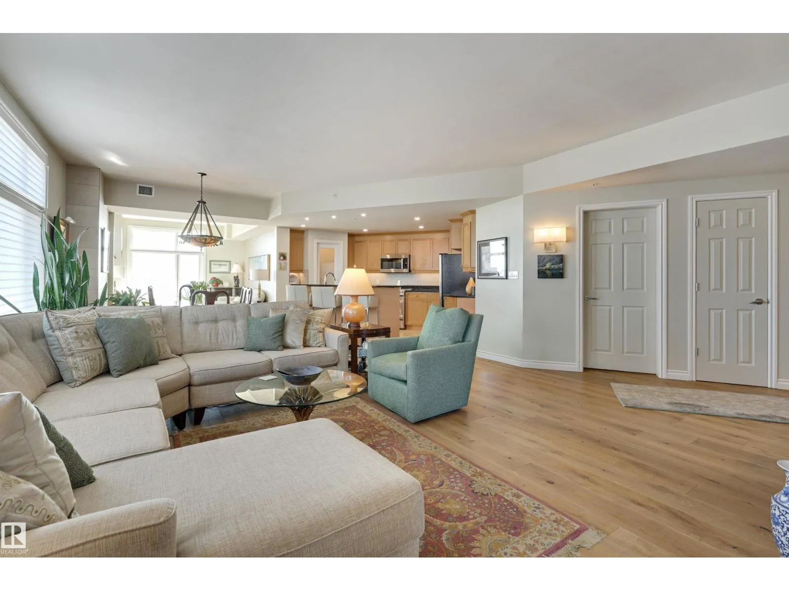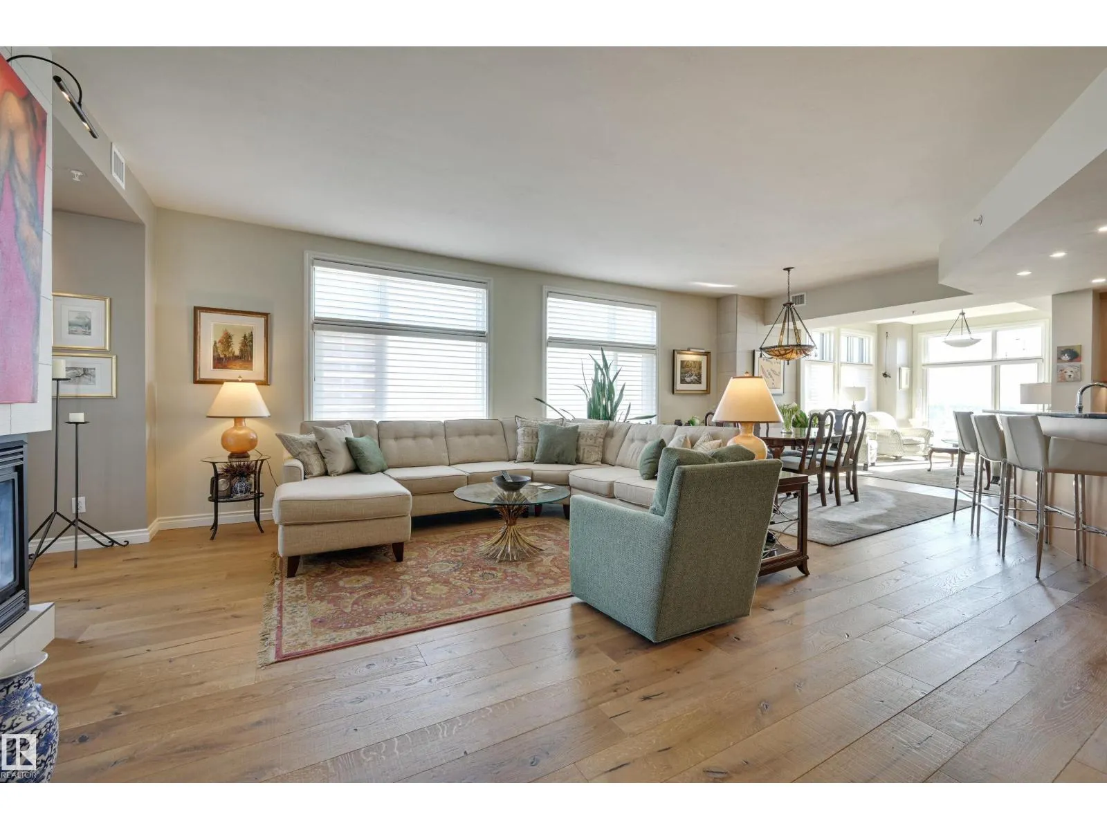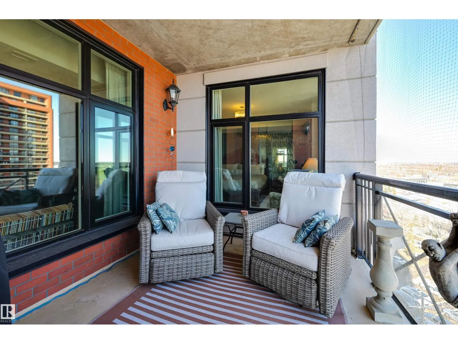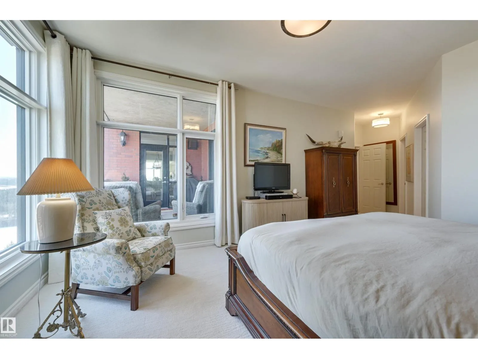 SPECTACULAR RIVER VALLEY VIEW from this UPGRADED 1520 sq.ft. 2 bedroom 2 bathroom condo in a SECURE GATED COMMUNITY conveniently located on Jasper Ave with the bus at your door, the river valley trails & quick access to the Ice District & U of A. Features OPEN FLOOR PLAN with 9' ceilings & floor to ceiling windows, scraped ceilings, distressed white oak hardwood flooring, luxurious carpeting in the primary bedroom & tile in the bathrooms, kitchen & laundry room. Chef's kitchen with ample cabinetry, granite countertops, pantry, raised eating bar, S/S appliances, subway tile backsplash & recessed lighting. Murphy bed in the 2nd bedroom. The primary suite has a walk-in closet & 4 piece ensuite. Heat pump & humidifier (2019). A/C, 2 U/G PARKING. Condo fees INCLUDE ALL UTILITIES! EXTENSIVE UPGRADES IN THE BUILDING: triple pane windows (2024), roof (2019), cooling tower (2023), exterior membrane (2025/2026), security upgrades, landscaping (2026). On-site manager, exercise room. Pet friendly. GORGEOUS! (id:27476)