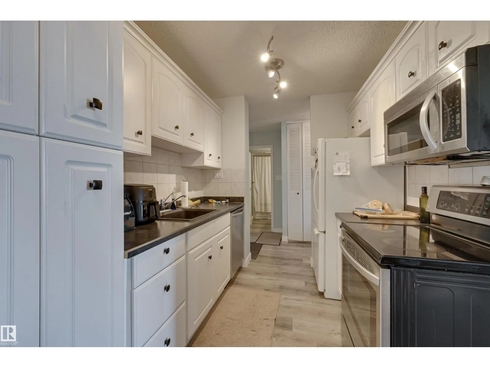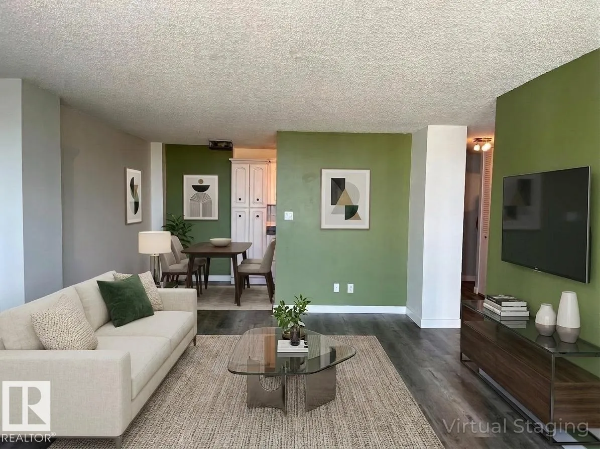 It's all about the lifestyle and the experience of urban living in this spacious 1-bed and 1-bath home, boasting amazing city views. This home offers unrivaled convenience and adult-only living. Commute effortlessly with quick access to public transportation & LRT, enjoy the treasure trove of unique shops and restaurants just steps away, or immerse yourself in nature with the promenade & river valley trails at your doorstep. Inside, you'll be thrilled by the chic galley-style kitchen, complete with ample cabinet and counter space, a large living room, ample dining area, a spacious bedroom, and in-suite storage. Youâll appreciate the convenience of secure, titled, heated underground parking (#118). Along with the community amenities, the perks include full access to the freshly upgraded gym, social room, dry sauna, and free laundry facilities. Your guests will appreciate the visitor parking. The condo fees include heat, water, and electricity. A perfect home to immerse yourself in the joy of urban living. (id:27476)