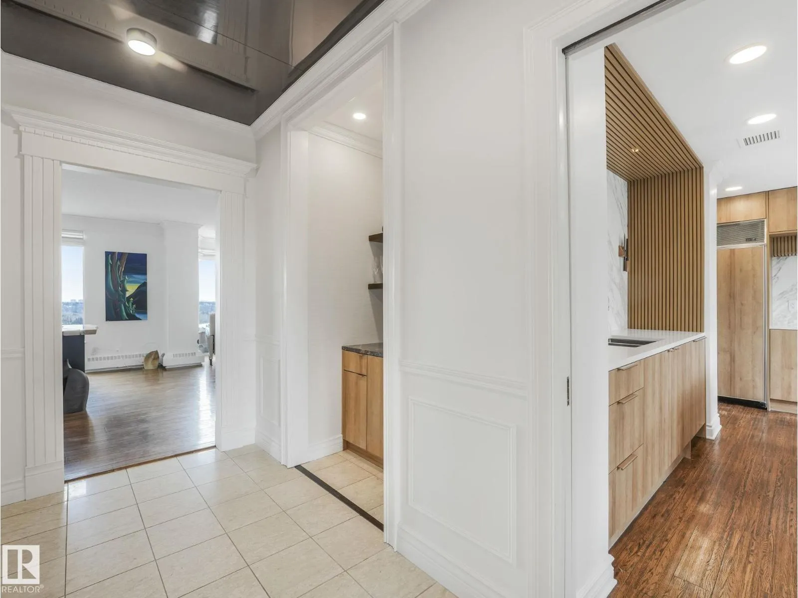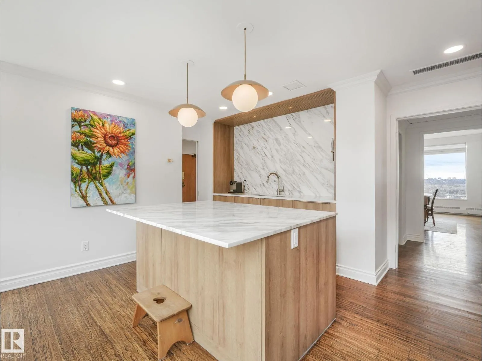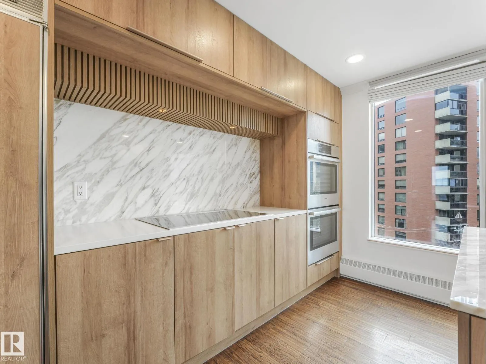 SPECTACULAR RIVER VALLEY VIEW from this renovated 2,071 sq. ft. 2 bedroom, 2.5 bath condo in the prestigious Carlisle, perfectly situated on the Promenade. With renovations by Brianna Hughes Interiors, this stunning home showcases attention to detail throughout. The open-concept layout features floor-to-ceiling windows with south west exposures, filling the space with natural light and breathtaking views of the River Valley. Hardwood flooring flows throughout, with tile in the bathrooms. The custom kitchen is a showpiece, offering solid wood dovetail cabinetry, quartz countertops, marble backsplash and premium Bosch appliances including two built-in ovens, induction cooktop, dishwasher & fridge. The spacious primary ensuite is beautifully appointed with double sinks, walk-in shower, Victorian Albert soaker tub, and Kohler fixtures. The 2nd bedroom includes its own private ensuite, ideal for guests. Complete with 2 underground parking stalls. Offering luxury, comfort and an unbeatable location. (id:27476)