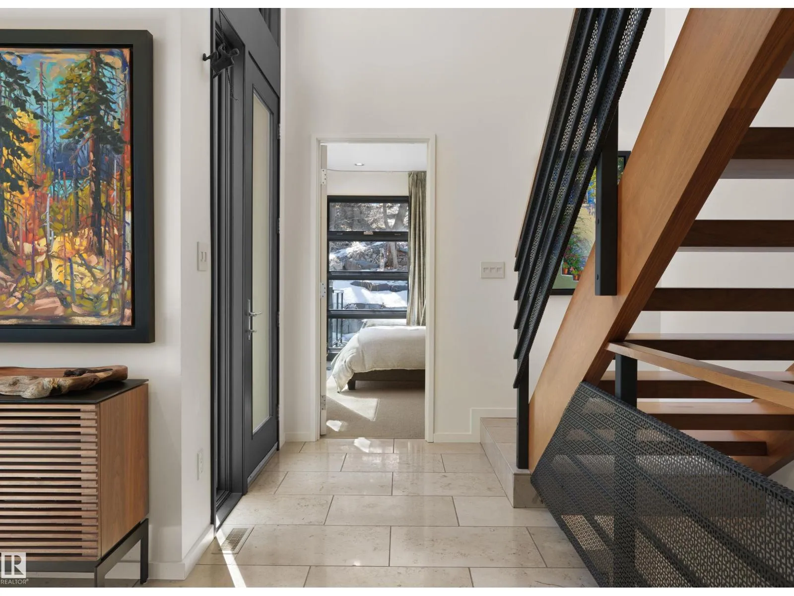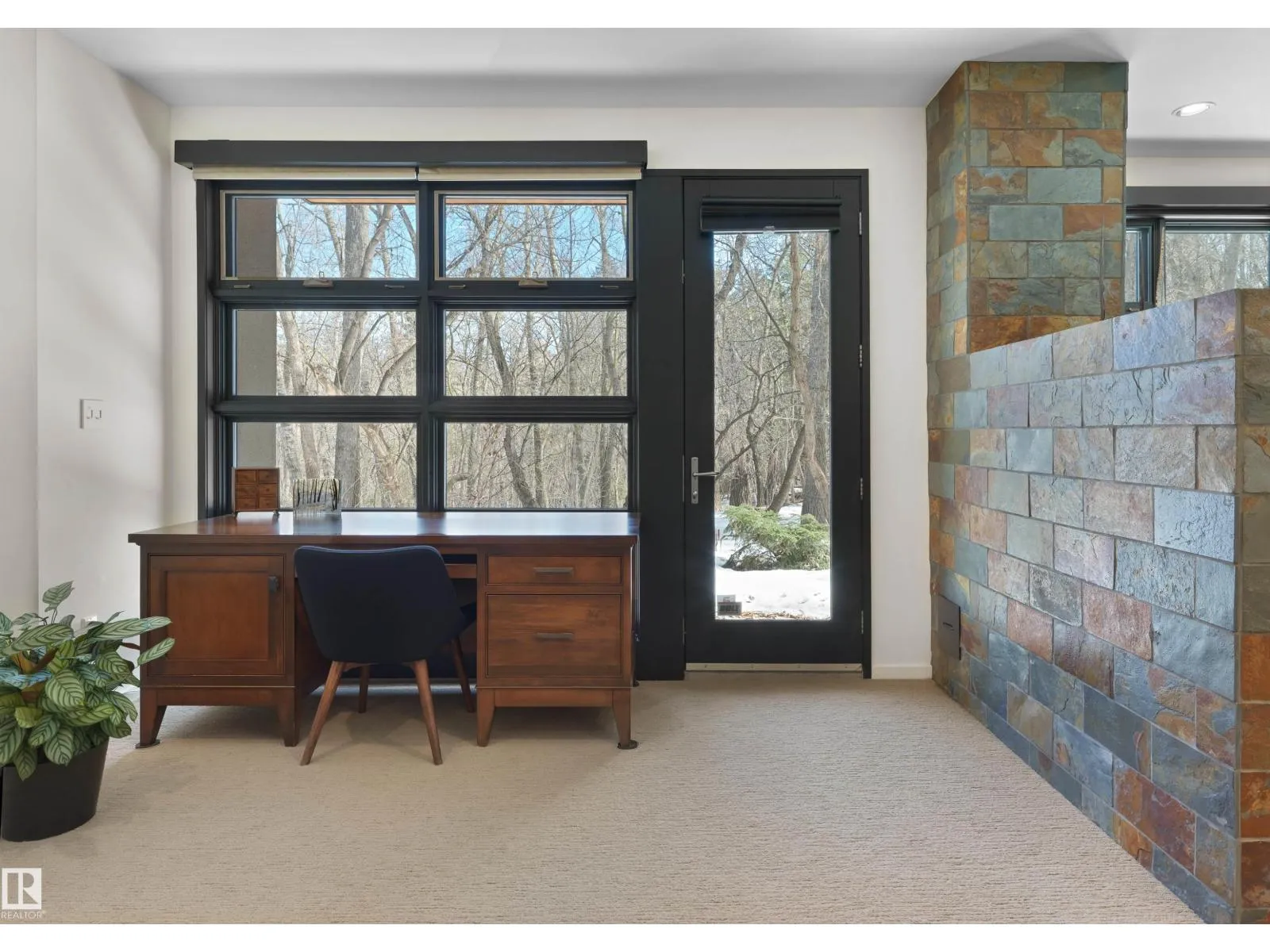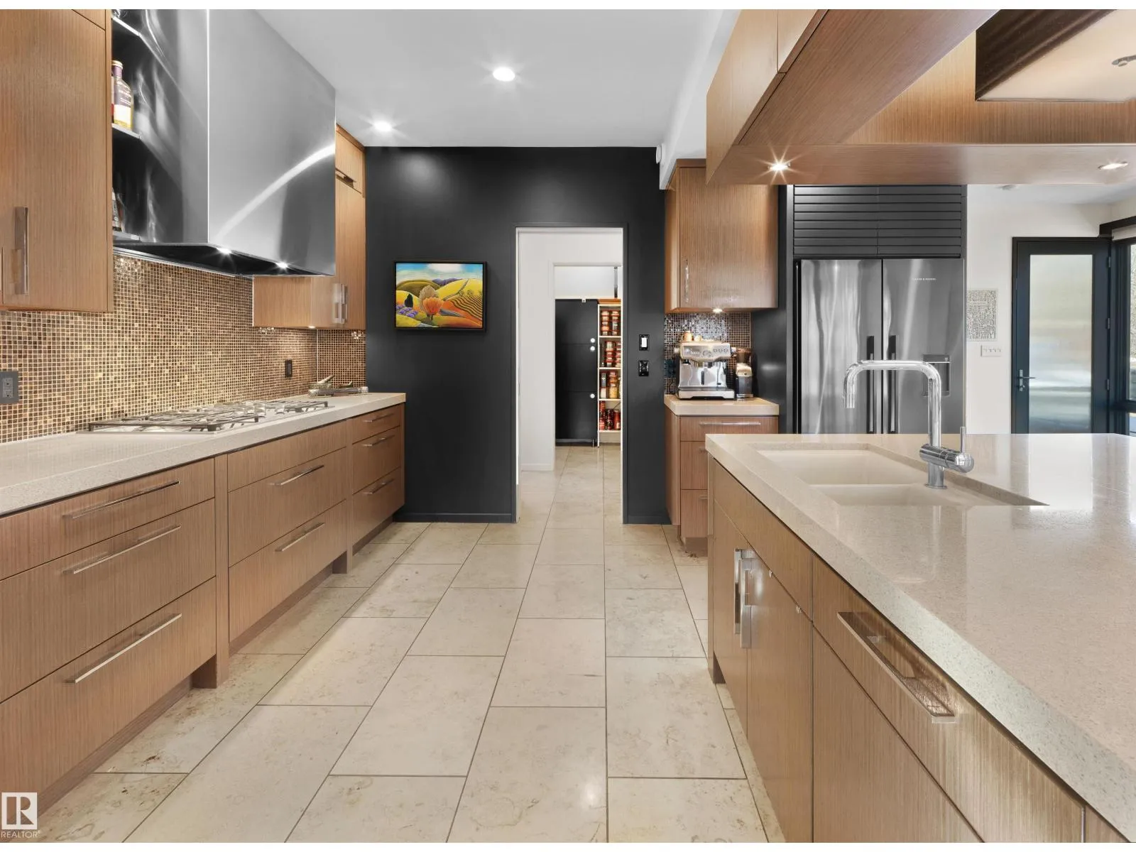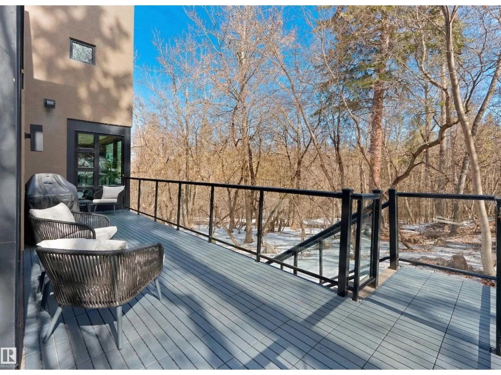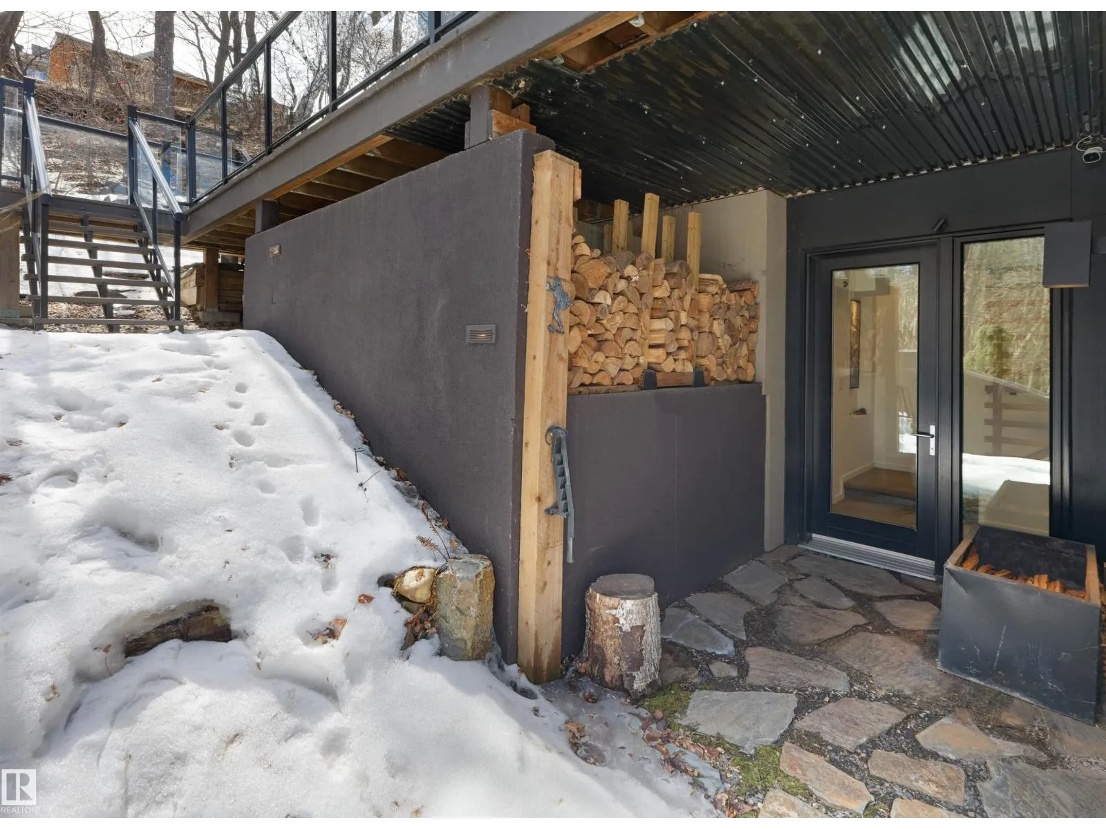 Set discreetly into the hillside on a rare double lot and surrounded by Mill Creek Ravine on 3 sides, this architecturally significant 2 storey walkout custom residence is a masterclass in site-responsive design. Conceived to honour its natural setting, the home is defined by intentional massing, soaring volumes, and walls of glass that dissolve the boundary between indoors and out. Warm modern interiors feature Savana limestone, walnut cabinetry, custom ironwork, solid teak soffits, bespoke millwork, and statement designer lighting. The kitchen is both sculptural and functional, appointed with premium appliances, imported mosaic tile, a large island, and walk-in pantry. Floating stairs, curated materiality, and 3 private decks immersed in the forest canopy create a truly immersive living experience. With 4 bedrooms, 4.5 baths, a serene spa-inspired primary retreat, in-floor heat on all 3 levels, A/C, and a heated detached double garage, this is refined ravine architecture at its finest. (id:27476)