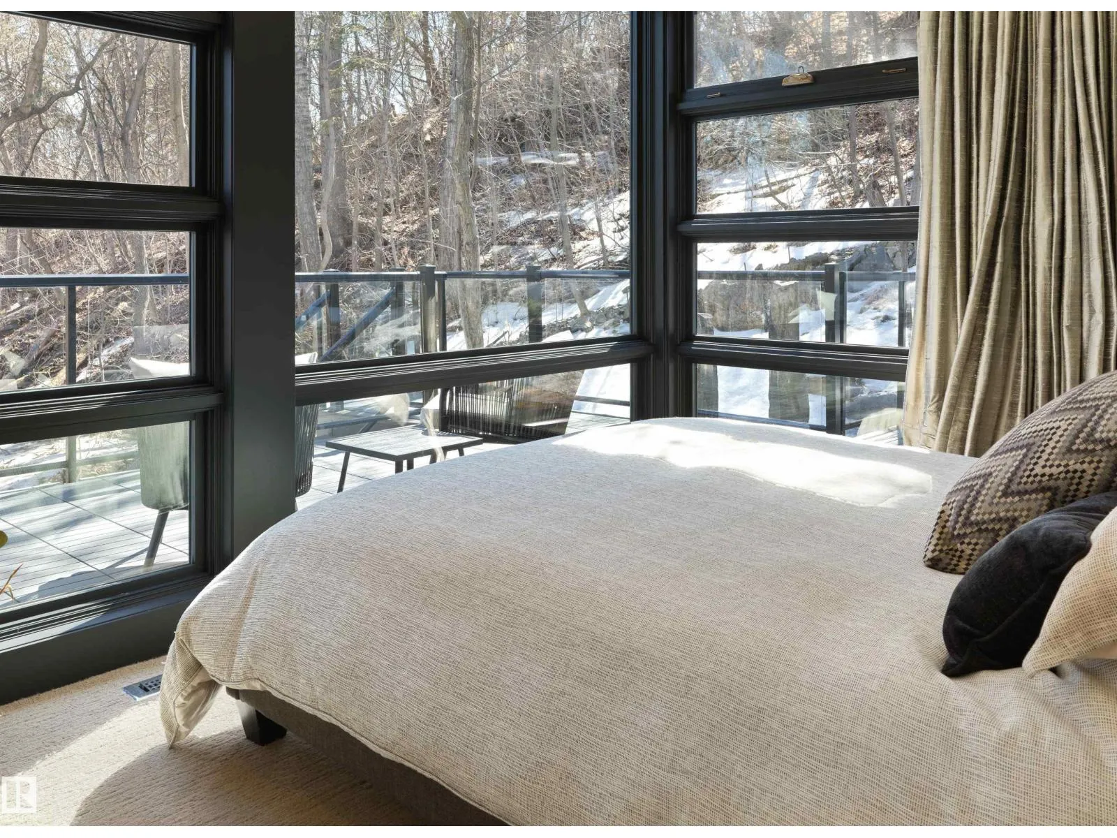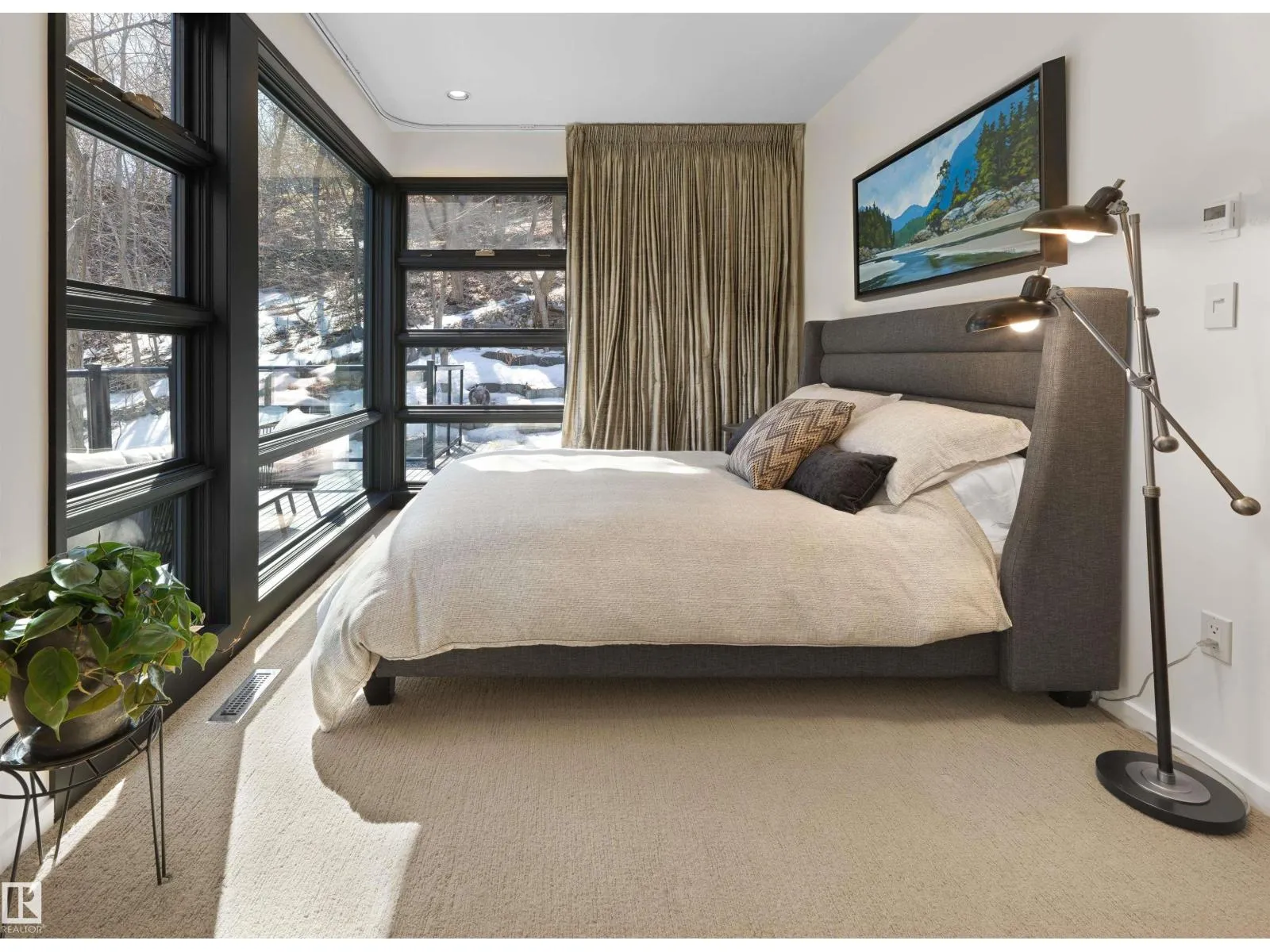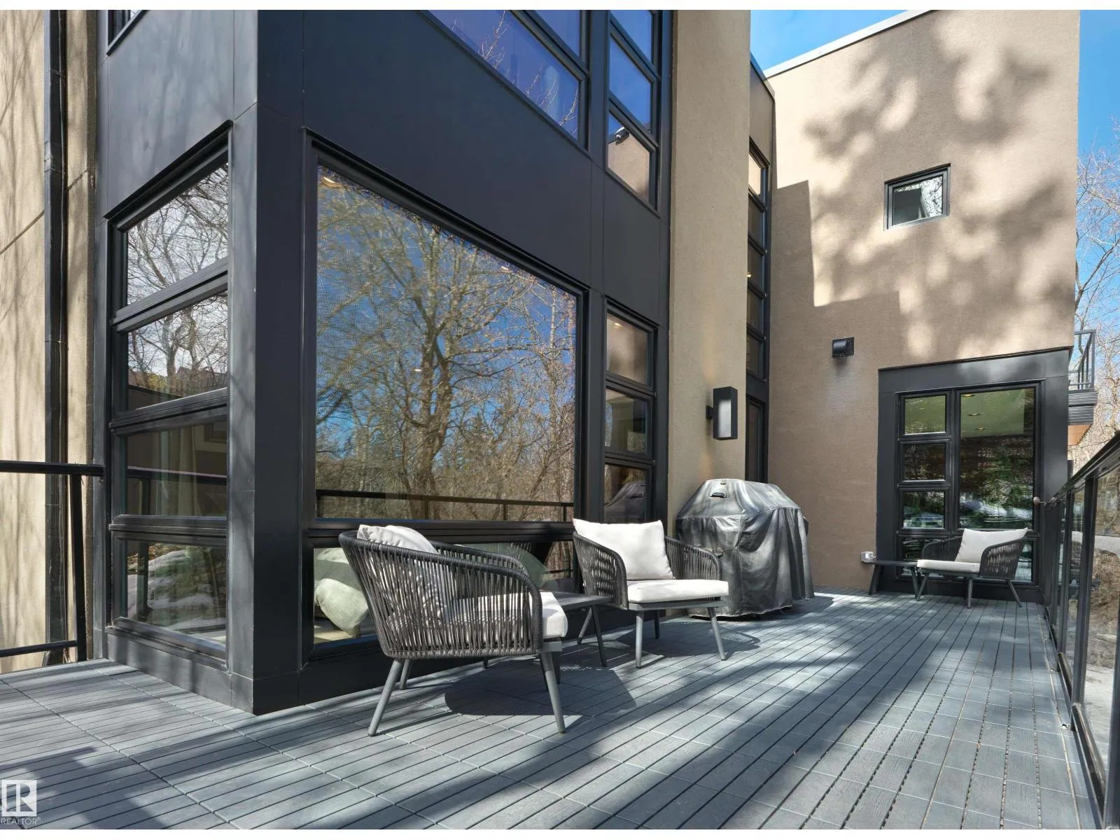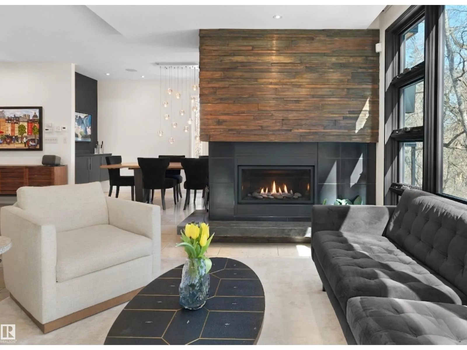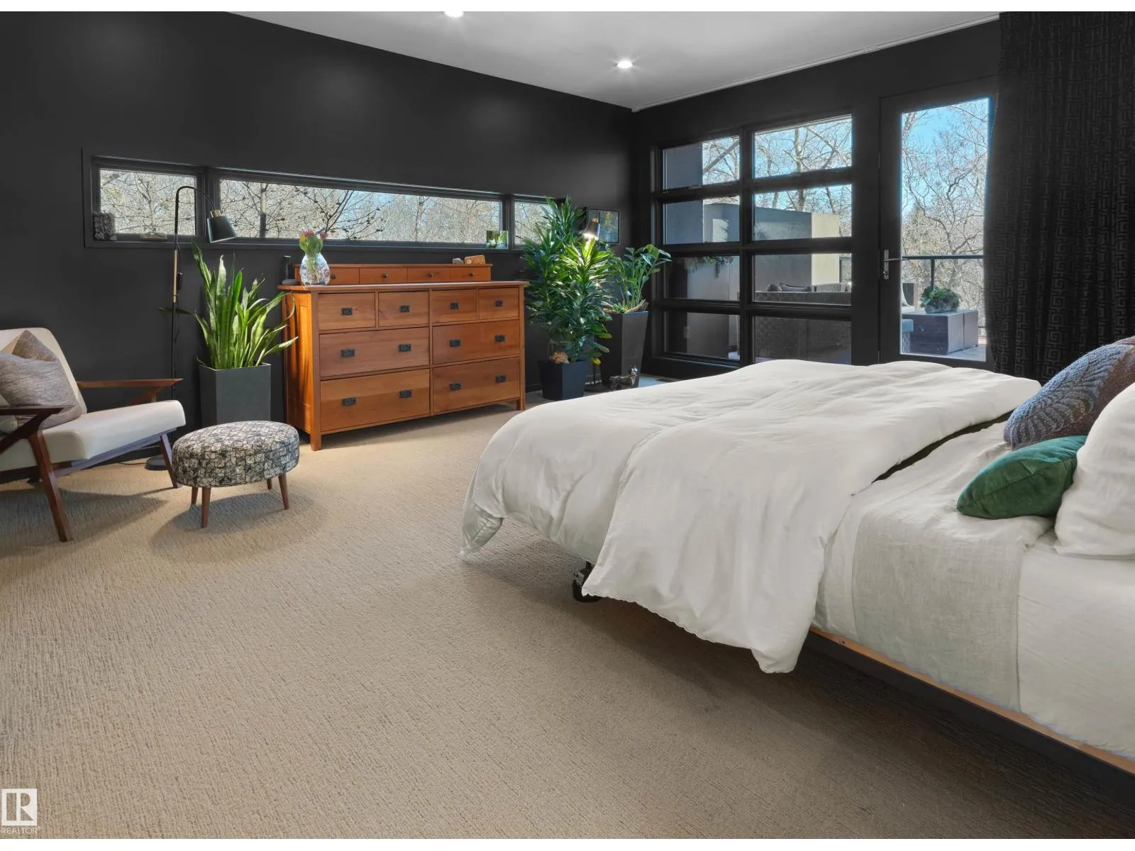 Set discreetly into the hillside on a rare double lot and surrounded by Mill Creek Ravine on 3 sides, this architecturally significant 2 storey walkout custom residence is a masterclass in site-responsive design. Conceived to honour its natural setting, the home is defined by intentional massing, soaring volumes, and walls of glass that dissolve the boundary between indoors and out. Warm modern interiors feature Savana limestone, walnut cabinetry, custom ironwork, solid teak soffits, bespoke millwork, and statement designer lighting. The kitchen is both sculptural and functional, appointed with premium appliances, imported mosaic tile, a large island, and walk-in pantry. Floating stairs, curated materiality, and 3 private decks immersed in the forest canopy create a truly immersive living experience. With 4 bedrooms, 4.5 baths, a serene spa-inspired primary retreat, in-floor heat on all 3 levels, A/C, and a heated detached double garage, this is refined ravine architecture at its finest. (id:27476)