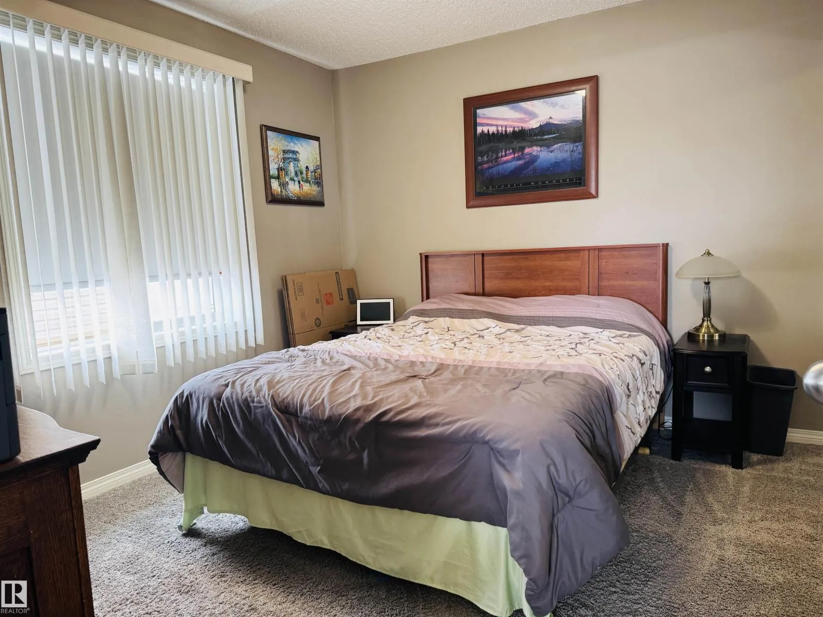 GORGEOUS CORNER UNIT! This beautifully maintained 2 Bdrm, 2 Bath Open Concept home offers style, comfort & convenience. The spacious L/R, D/R, & Kitchen features In-floor Heating, New vinyl plank flooring, Upgraded kitchen cabinets, island, complemented by three stainless steel appliances. Freshly painted & enhanced with an upgraded lighting package, this home is also filled w/lots of natural light. Step through the patio door off the L/R onto the 0/S patio/deck, complete w/a storage shed & a private gate leading to a serene, treed green space, perfect for relaxation & outdoor enjoyment. The Kingsize Primary Retreat boasts a walk-through closet & a 4PC ensuite w/a step-in tub. A generously sized 2nd Bdrm, ideal as a guest room or home office is conveniently located near the 4PC main bath. Addt'l features include Insuite Laundry w/washer, dryer & a storage room. Titled Underground parking & situated in an excellent complex close to the Anthony Henday, parks & schools. A 10+ (id:27476)