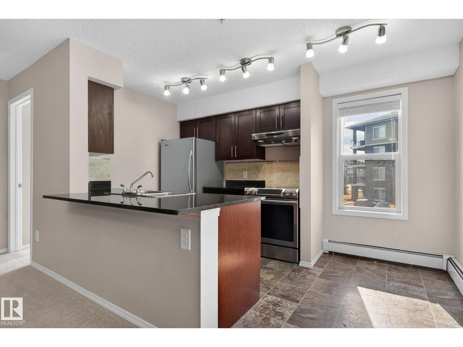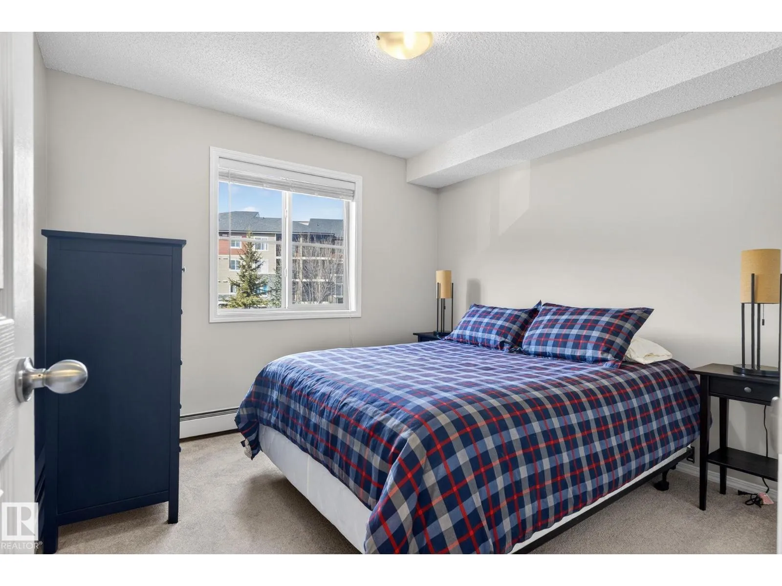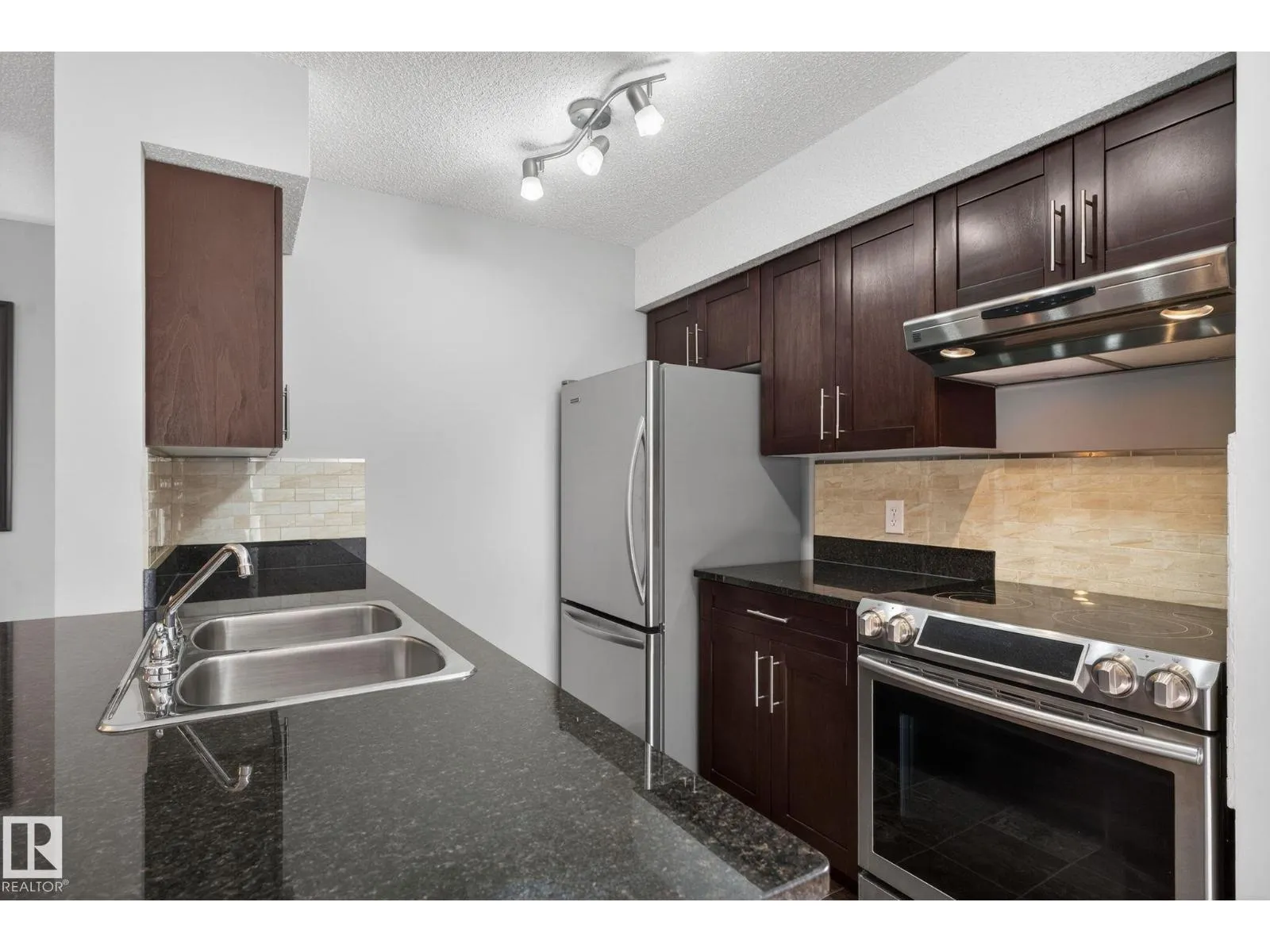 This beautifully maintained CORNER unit offers 2 spacious bedrooms, 2 full bathrooms, and a versatile denâperfect for a home office or flex spaceâall conveniently located on the second floor. Enjoy the rare bonus of TWO titled heated underground parking stalls along with a generously sized storage unit. The open-concept layout is filled with natural light, featuring large windows and direct access to a spacious private balconyâideal for relaxing or entertaining. This home showcases granite countertops throughout, rich dark maple cabinetry, stainless steel appliances, and convenient in-suite stacked laundry. Situated in a well-managed complex complete with an elevator, secure underground heated parking, and ample visitor parking, this property offers both comfort and peace of mind. Commuting is a breeze with quick access to Anthony Henday Drive and Manning Freeway, while the LRT is just minutes away and ETS transit is within walking distance. Move in ready and an absolute gem! Shows 12/10! (id:27476)