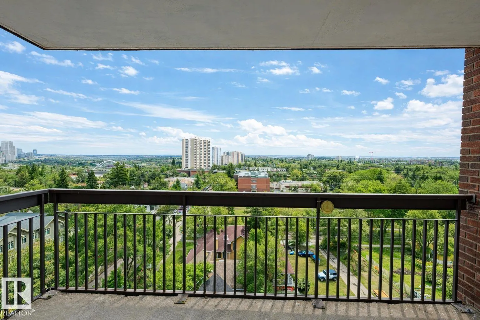 DOWNTOWN & RIVER VALLEY VIEWS await in this spacious 868 sq. ft. condo in CLARIDGE HOUSE, perfectly positioned steps from the U of A and minutes from the vibrant energy of Whyte Avenue. The huge living room provides an abundance of space for relaxation or a home office. Enjoy morning coffee on your east-facing balcony, which offers stunning city and river valley vistas along with a convenient storage room. The primary suite is adjacent to a clean 4-piece bathroom. High-end features include an INSUITE WASHER & DRYER, A/C, and TITLED UNDERGROUND PARKING. The unit is equipped with one-year-old stainless steel appliances. Condo fees are truly all-inclusive, covering all utilities, building maintenance, management, and a resident caretaker. Residents also enjoy access to a party room and visitor parking. This is the ideal blend of size, location, and worry-free living in the heart of the university district, offering unmatched convenience for professionals and students alike. (id:27476)