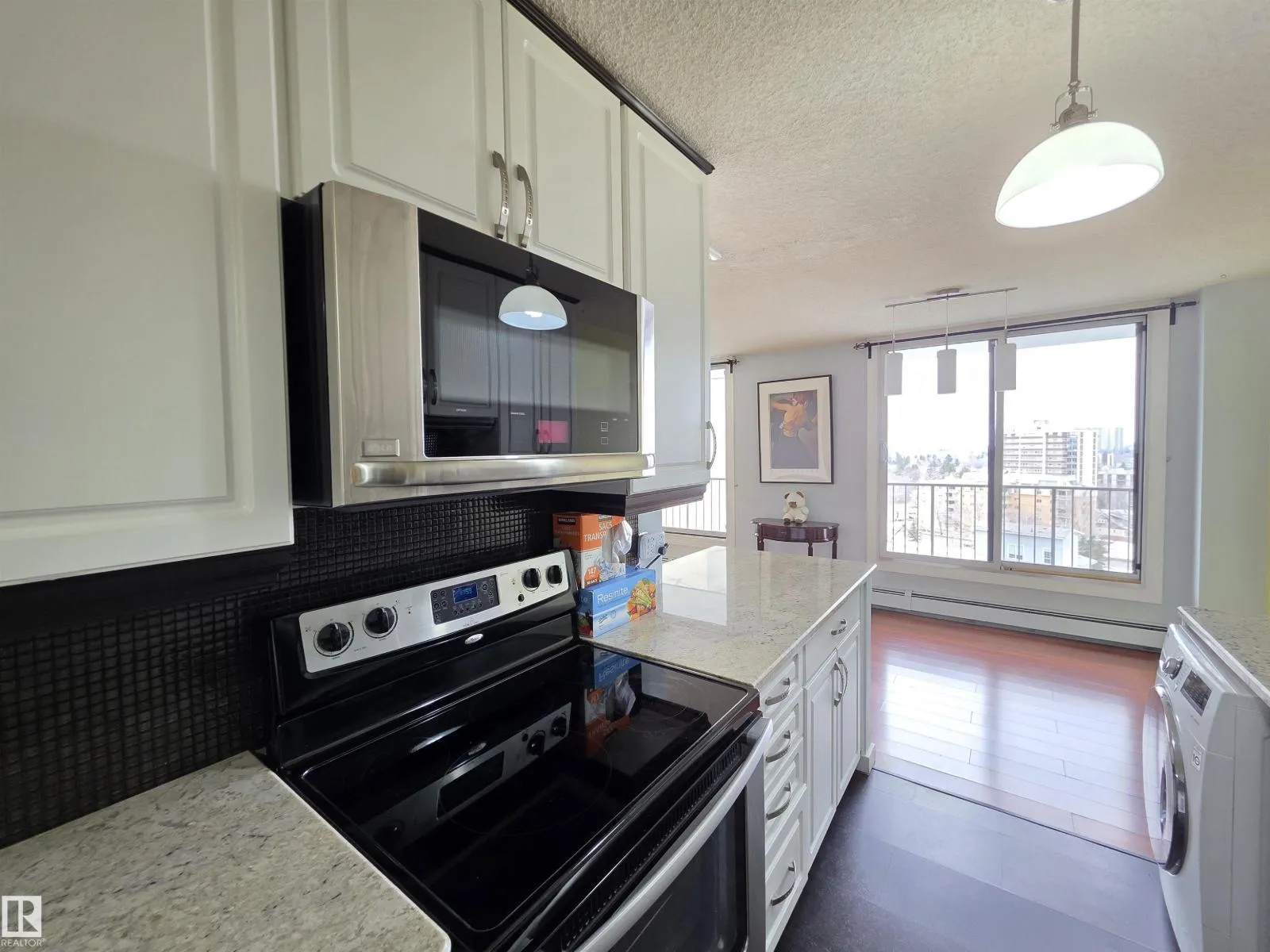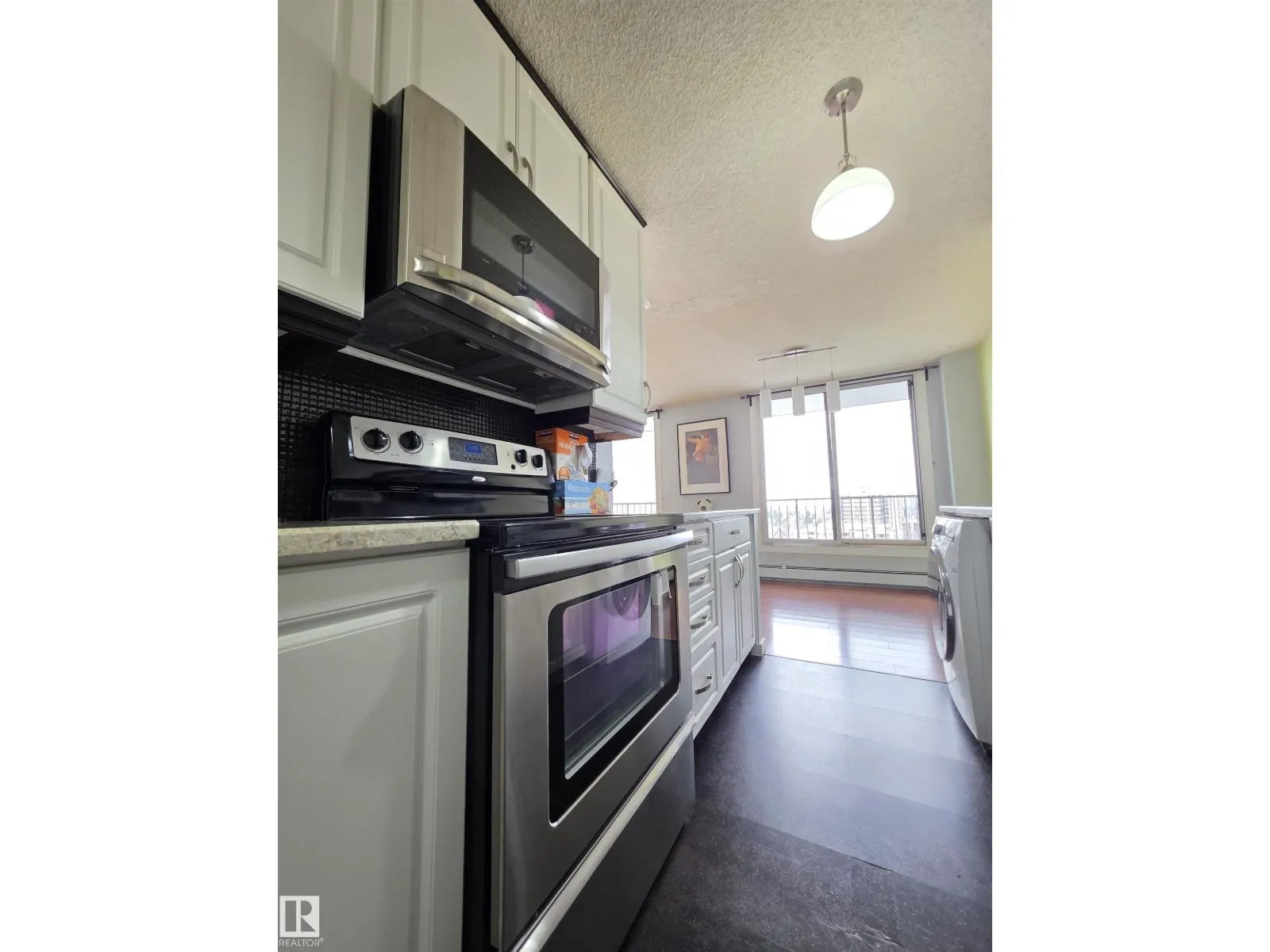 Spacious CORNER SUITE offering 1,089 SQ FT with STUNNING RIVER VALLEY & CITY SKYLINE VIEWS! Located on the 12th floor, enjoy breathtaking views from your private balcony. This larger corner unit offers a bright and functional open-concept layout with a generous living/dining area and a well-appointed kitchen with ample storage. Newer appliances. The primary bedroom features a walk-in closet. Expansive windows fill the home with natural light. Very well-kept unit in a well-managed and PET-FRIENDLY building. Unique to this suite, the entrance offers added privacy and security with an additional door in the common area. Enjoy the convenience of in-suite washer & dryer in addition to common laundry. Building amenities include INDOOR POOL, GYM, SAUNA, UNDERGROUND TITLED PARKING, SECURE ENTRY & ON-SITE MANAGEMENT. ALL UTILITIES INCLUDED IN CONDO FEES! Unbeatable location â steps to Whyte Ave, UofA, downtown, trails, cafes, local markets. Perfect for first-time buyers or investors. (id:27476)
