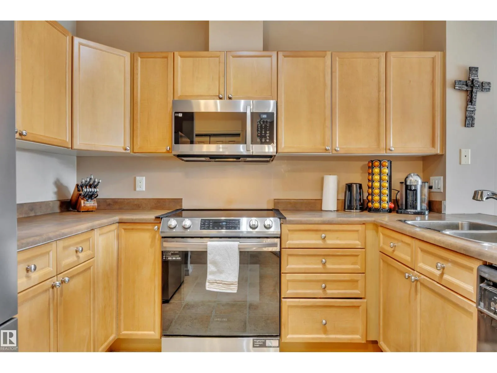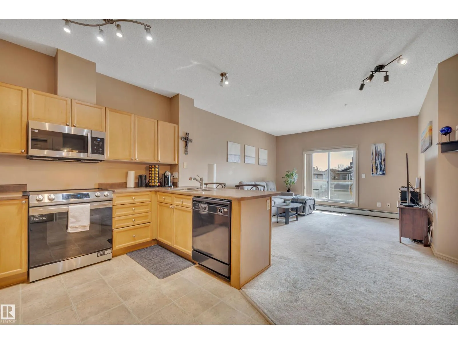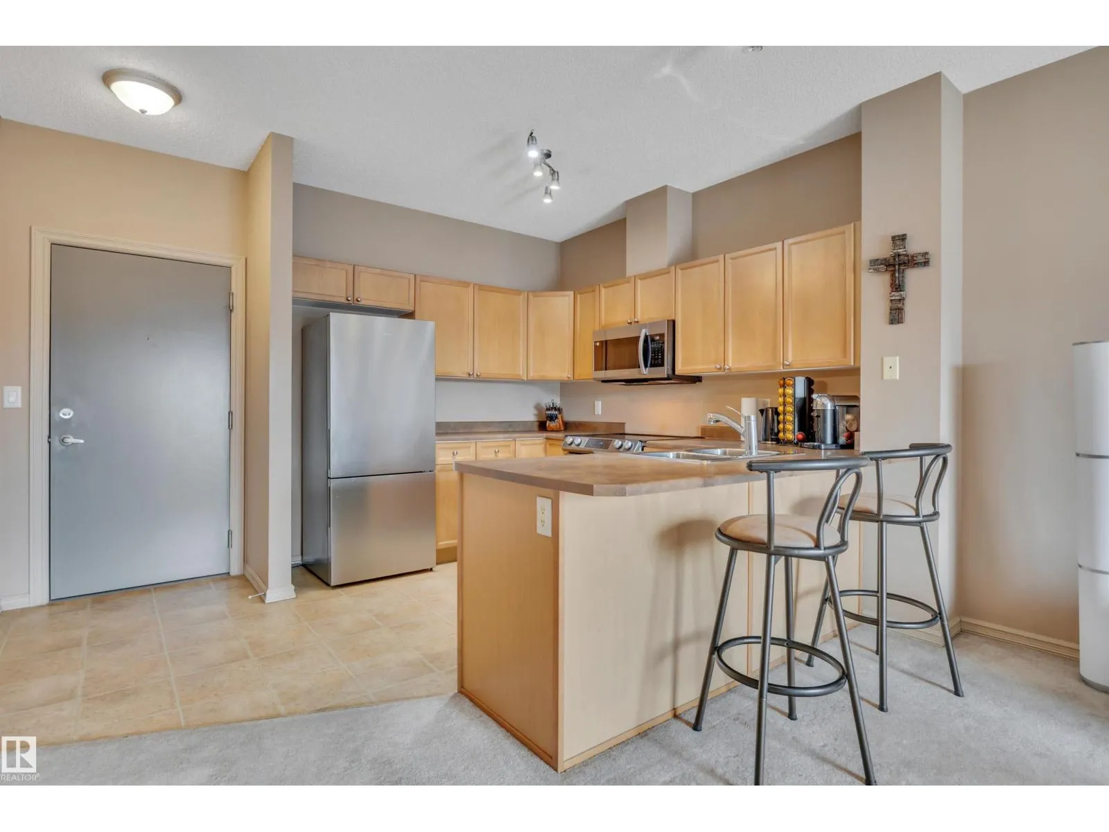 Welcome to this bright and beautifully cared-for south-facing one-bedroom condo! The open-concept layout creates a spacious, airy feel, while large windows fill the home with natural light. Step out onto your sunny balcony and enjoy long summer evenings. The kitchen is designed for both function and style, featuring newer appliances, maple cabinetry, and a handy breakfast barâperfect for hosting friends. You'll love the convenience of in-suite laundry, heated underground parking, and extra storage. Located just a short walk from shops, trails, transit, and moreâwith ELECTRICITY included in the condo fees! Some furniture is also included! (id:27476)