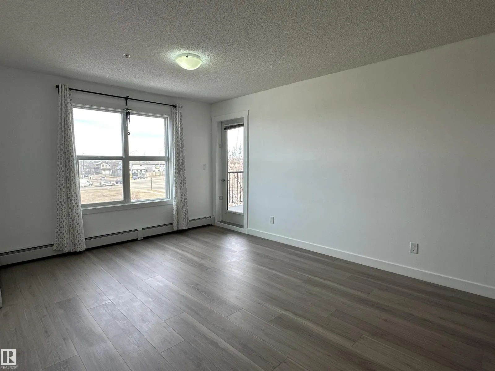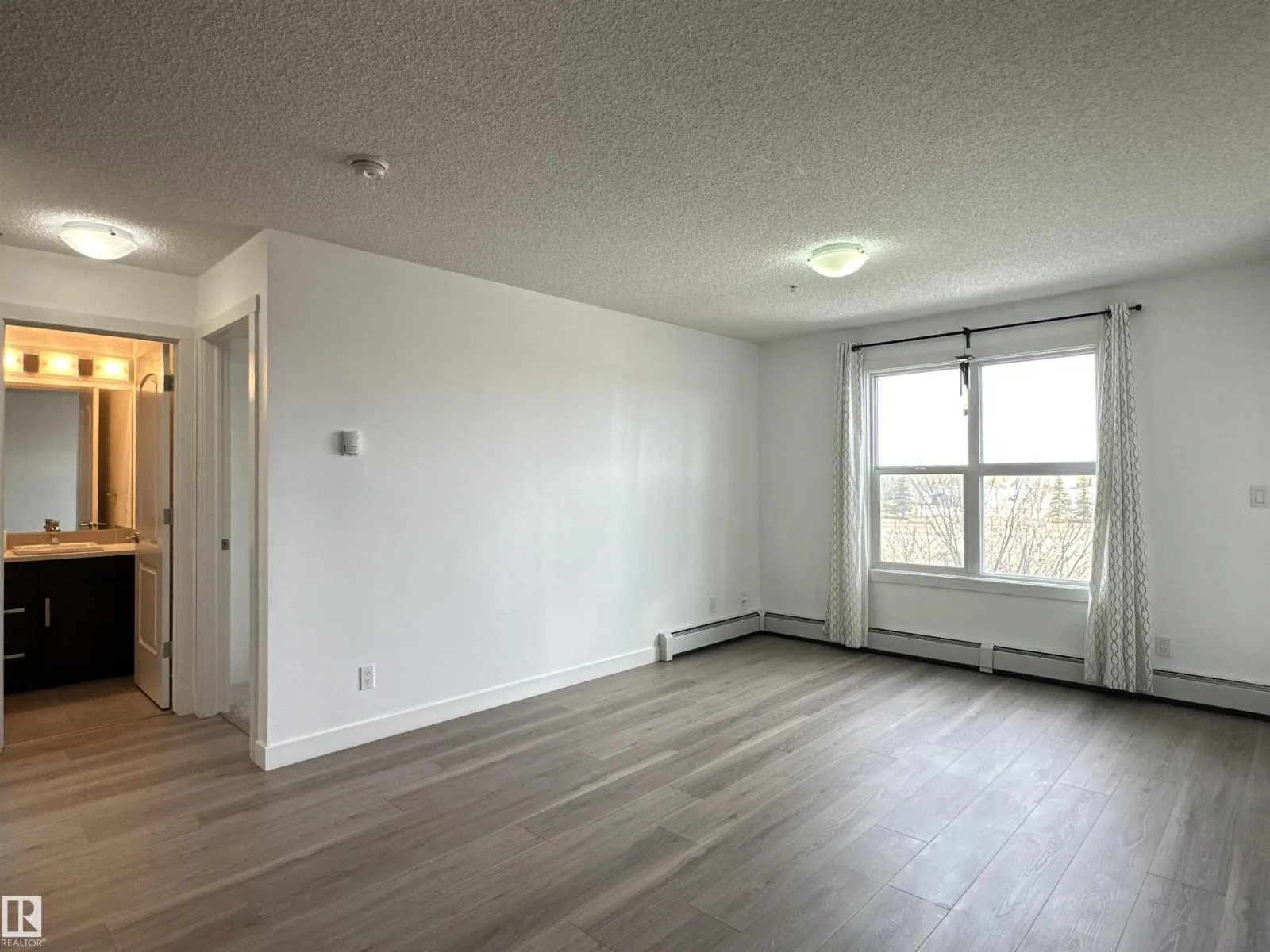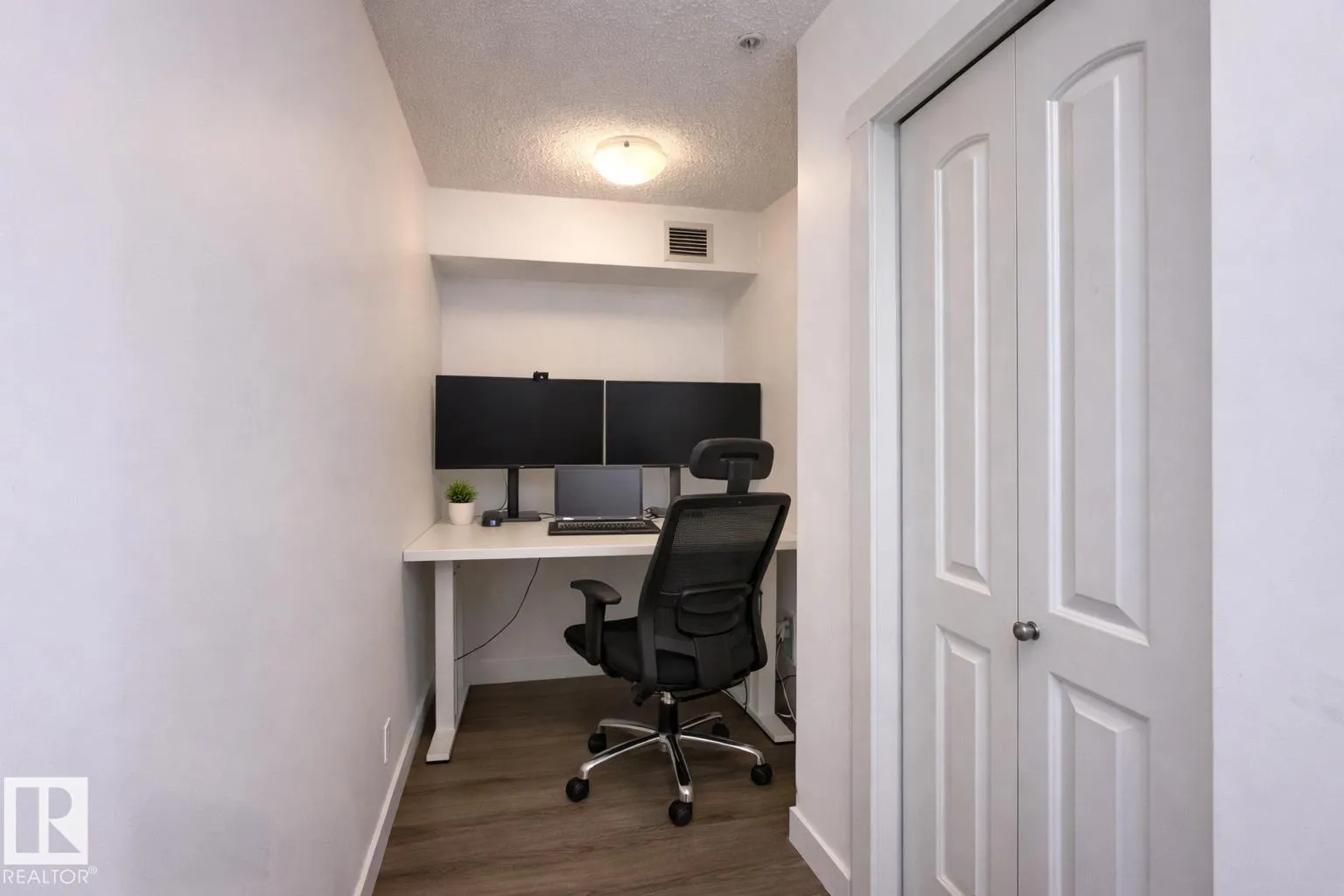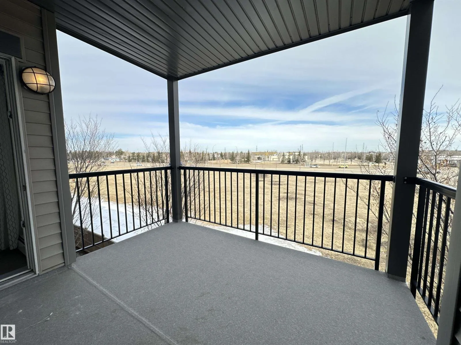 Welcome home to this bright & spacious 2 bed, 2 bath apartment in a highly coveted South Edmonton location. Well-designed unit, modern kitchen with SS appliances, quartz countertop & a generous bar seating. Open-concept living area is filled w/ natural light, direct access to your private covered balcony. The primary bedroom offers a peaceful retreat w/ a walk-through closet & a 4-pc ensuite. The second bedroom is positioned on the opposite side for maximum privacy, conveniently located next to 4-pc bath & in-suite laundry. A versatile den provides flexible space for a home office, guest room or additional living area. Enjoy the secured building access, elevator service, plus titled underground parking & a dedicated storage unit. Quick access to Highway 2, Anthony Henday Dr, 10 mins to South Common, 20 mins to YEG Airport & Premium Outlet. Steps to bus stops, Walmart, Sobeys, Real Canadian, restaurants, shopping, and all major amenities. Please note some pictures are virtually staged including fireplace. (id:27476)
