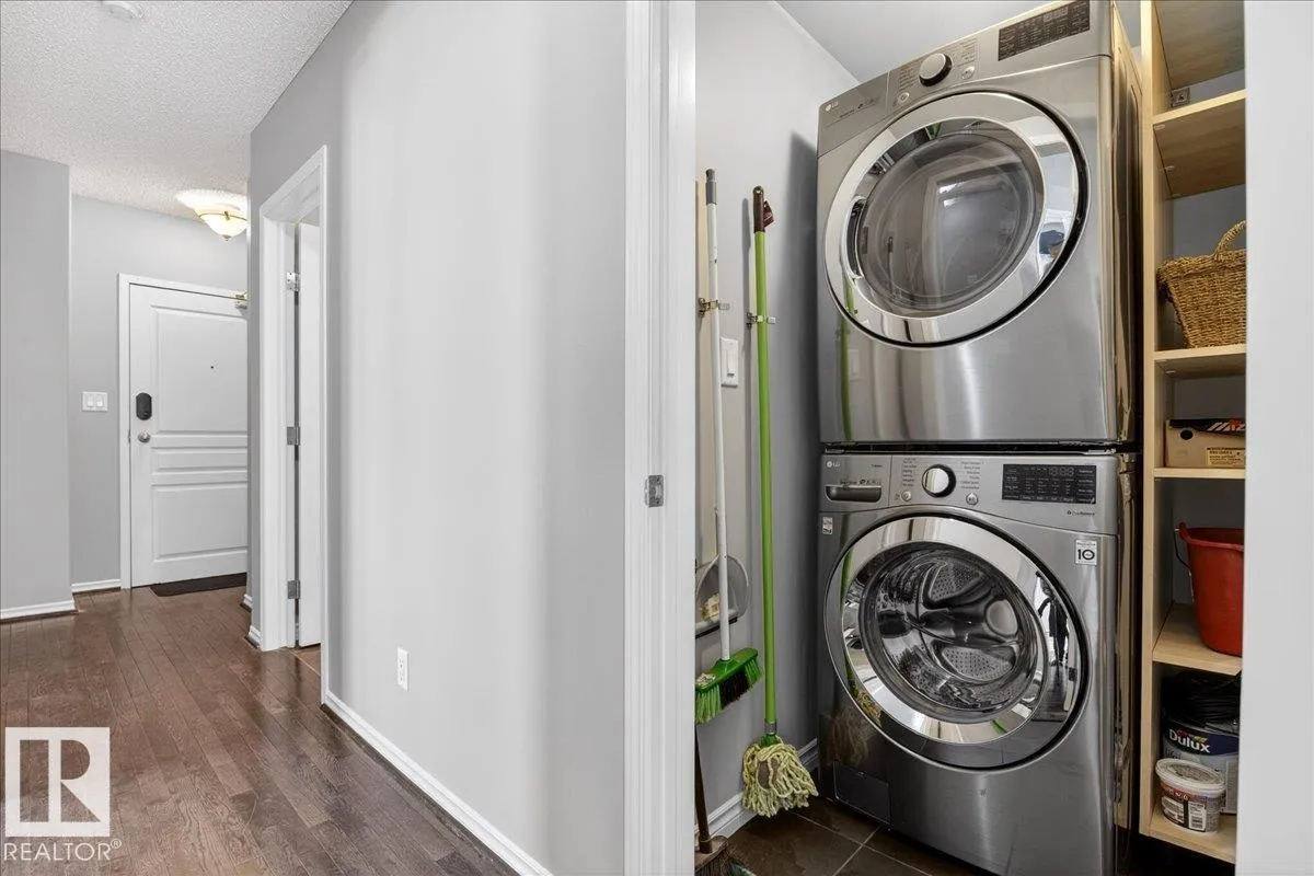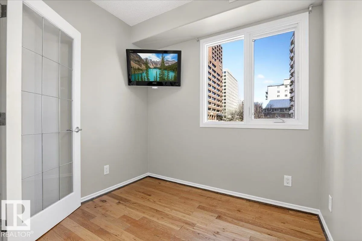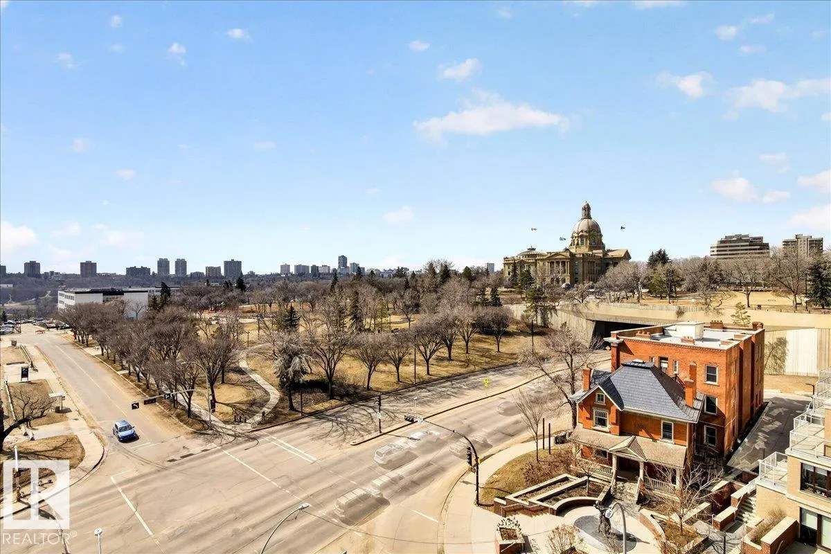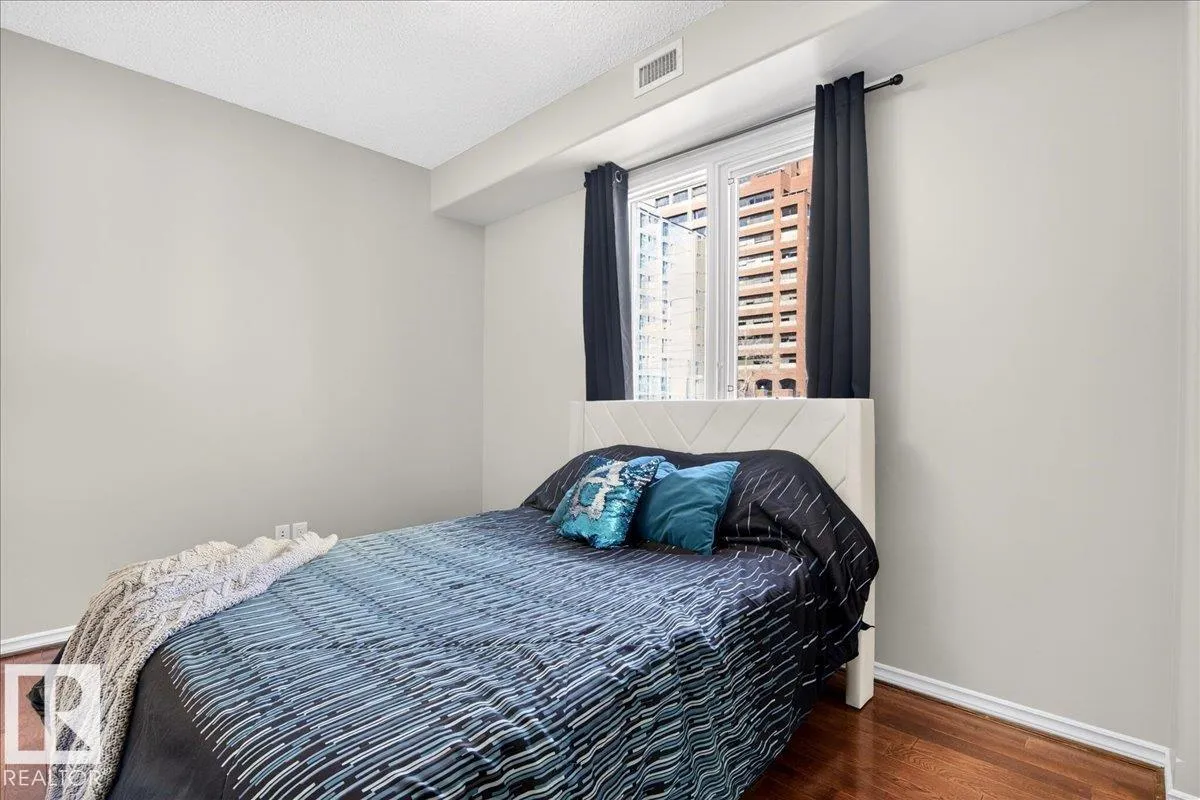 Welcome Downtown living in this well-appointed 2-bedroom, 1-bathroom condo in a solid concrete building. Enjoy an unbeatable location with a private balcony overlooking the Legislature Building and downtown views. The open-concept layout features granite countertops throughout, an undermount silgranite sink, stainless steel appliances, and a corner pantry. The unit is completely carpet-free with hardwood flooring, offering a clean, modern feel. The second bedroom provides great flexibility as a home office, guest room, or additional living space. Convenient in-suite front-load laundry and additional in-suite storage add to the functionality. Includes titled underground parking stall (#6) and access to underground visitor parking for guests. Building amenities include a gym, amenity room, rooftop patio, and garbage chute. (id:27476)