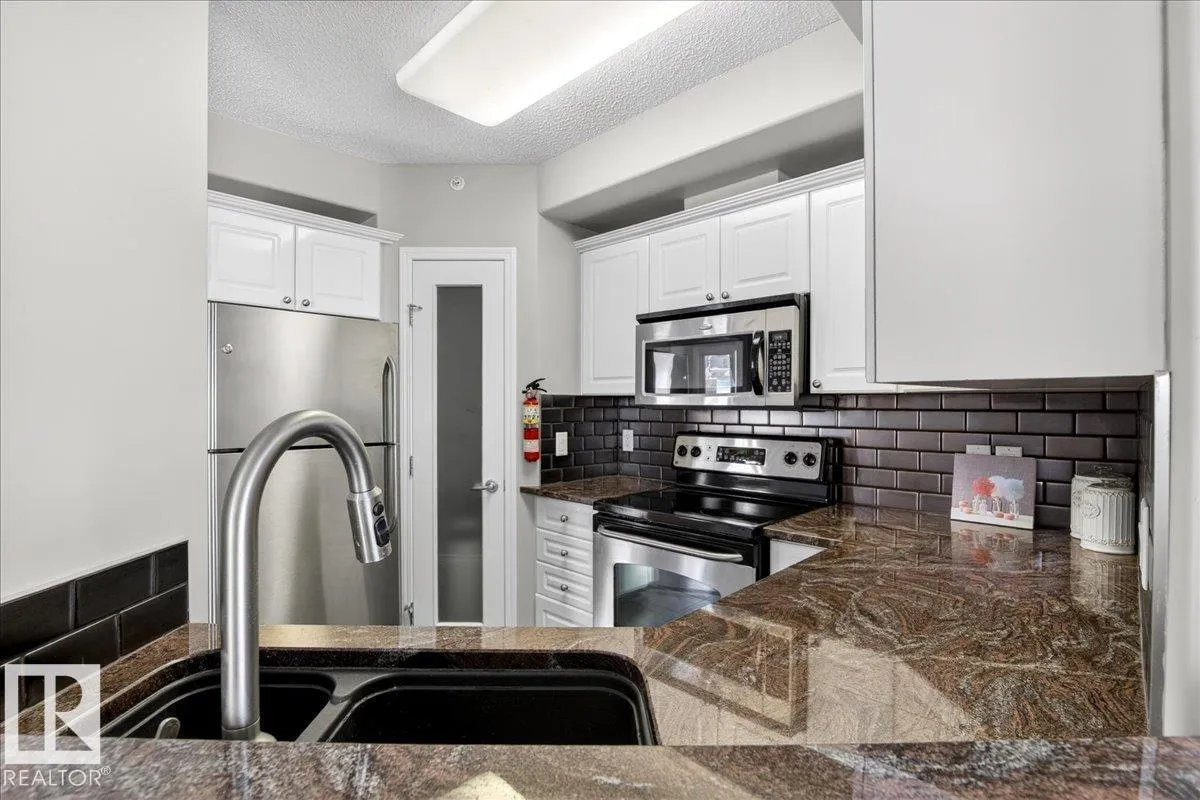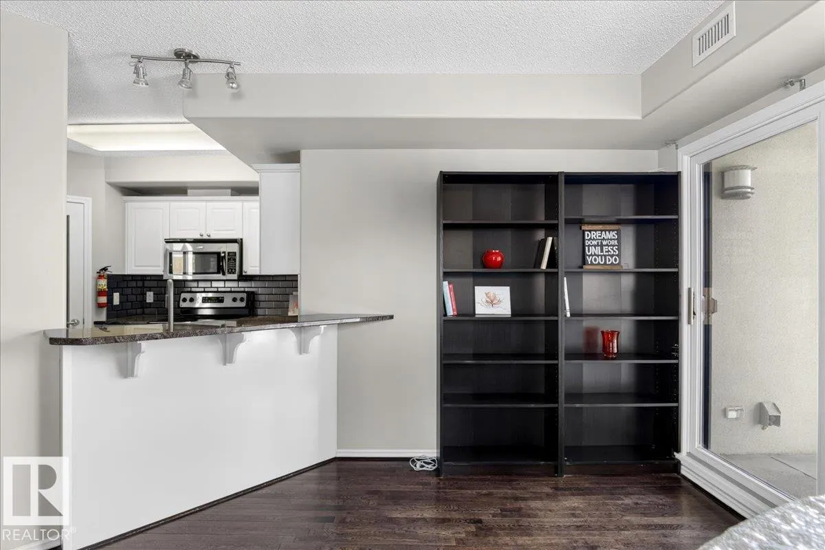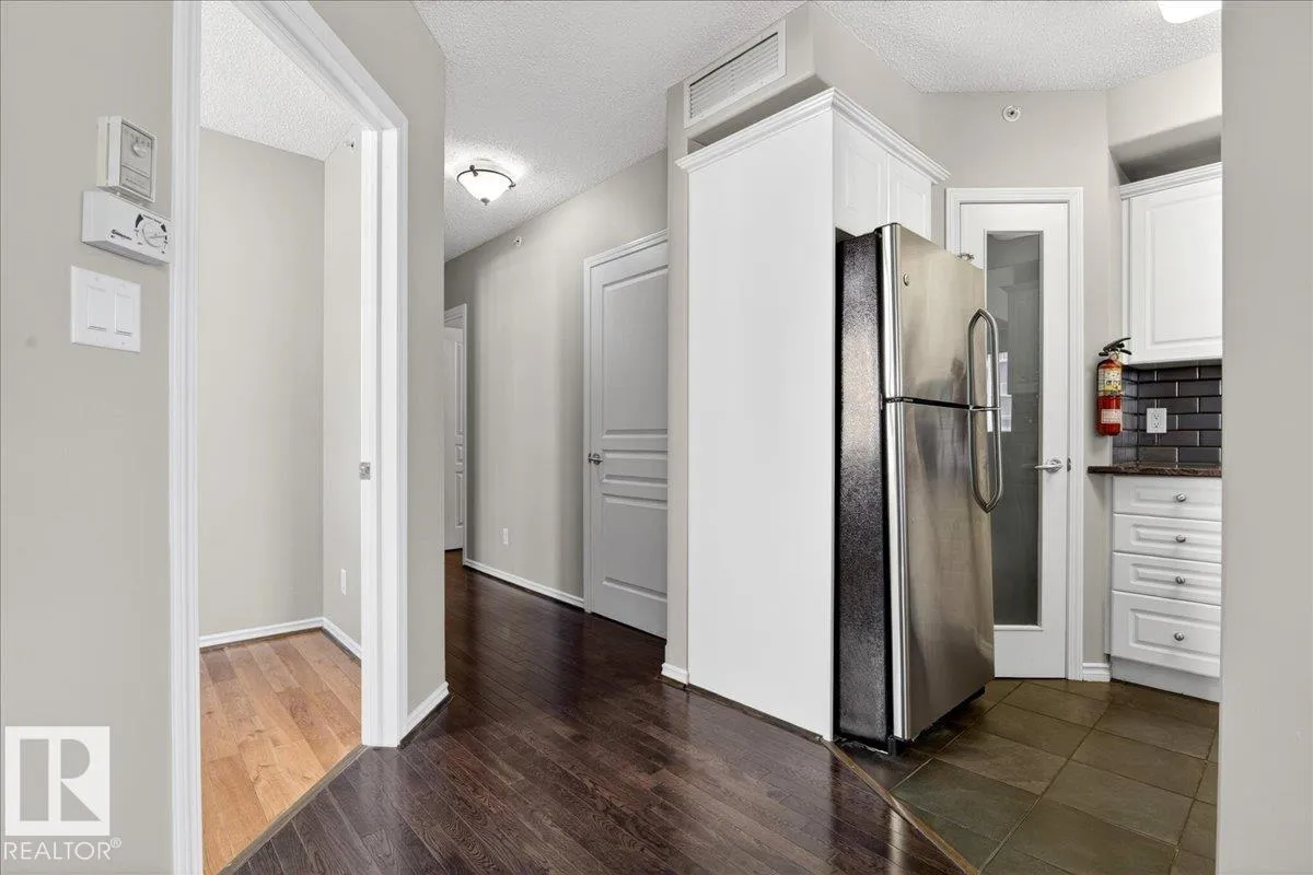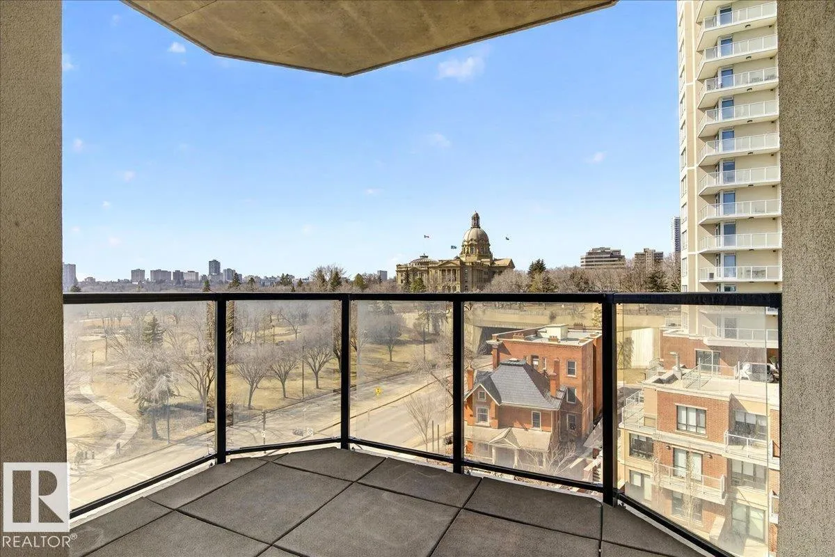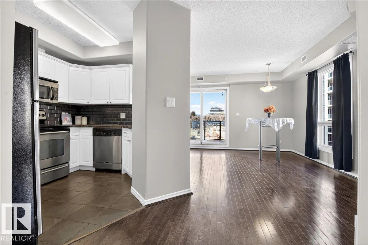 Welcome Downtown living in this well-appointed 2-bedroom, 1-bathroom condo in a solid concrete building. Enjoy an unbeatable location with a private balcony overlooking the Legislature Building and downtown views. The open-concept layout features granite countertops throughout, an undermount silgranite sink, stainless steel appliances, and a corner pantry. The unit is completely carpet-free with hardwood flooring, offering a clean, modern feel. The second bedroom provides great flexibility as a home office, guest room, or additional living space. Convenient in-suite front-load laundry and additional in-suite storage add to the functionality. Includes titled underground parking stall (#6) and access to underground visitor parking for guests. Building amenities include a gym, amenity room, rooftop patio, and garbage chute. (id:27476)