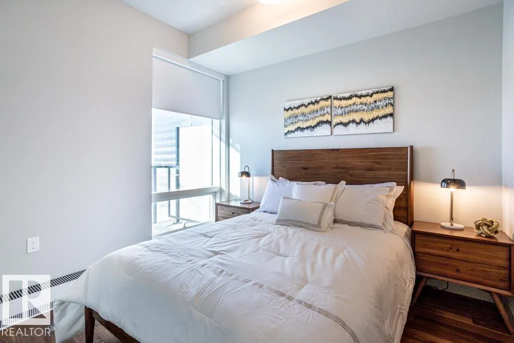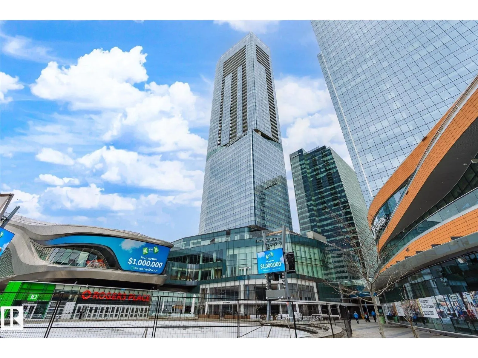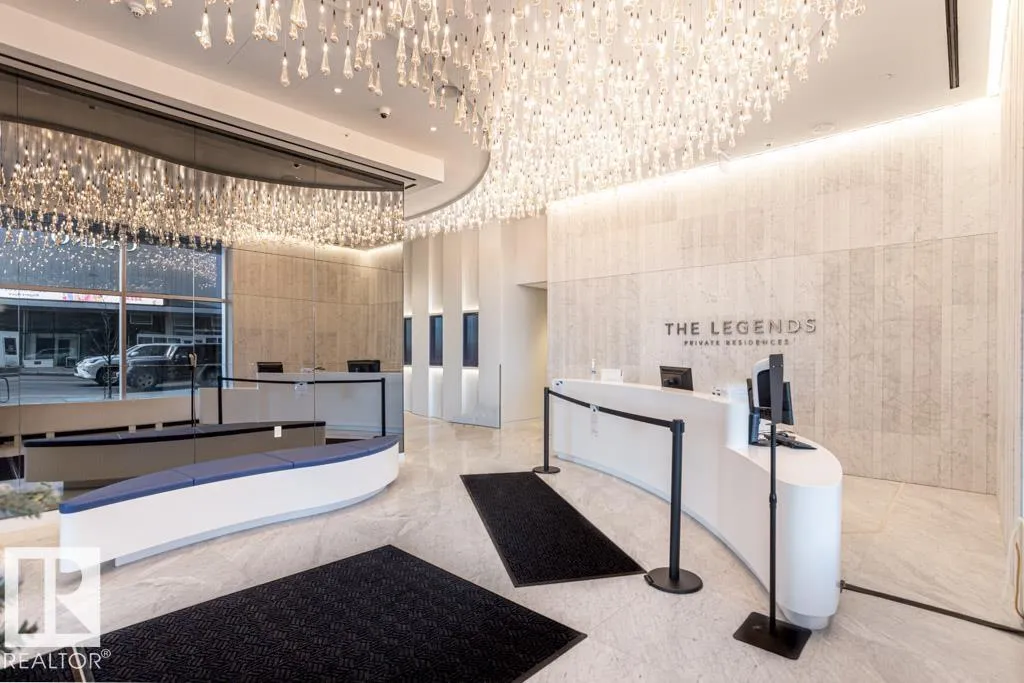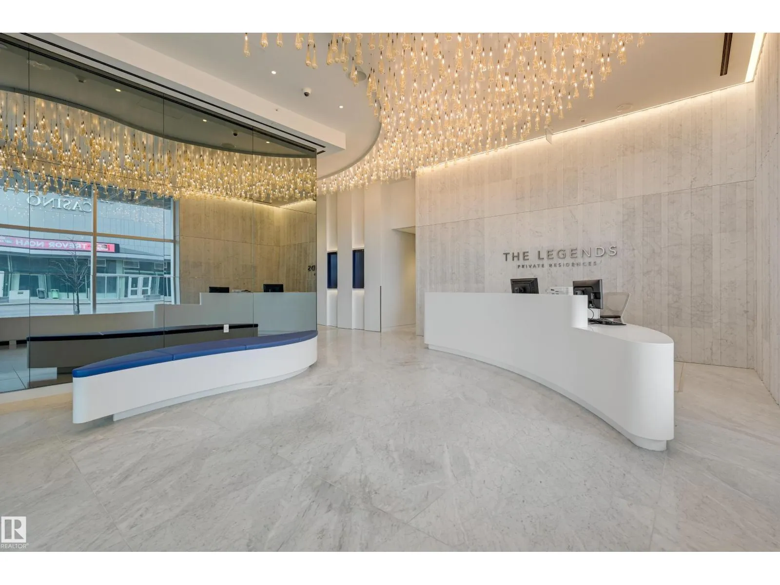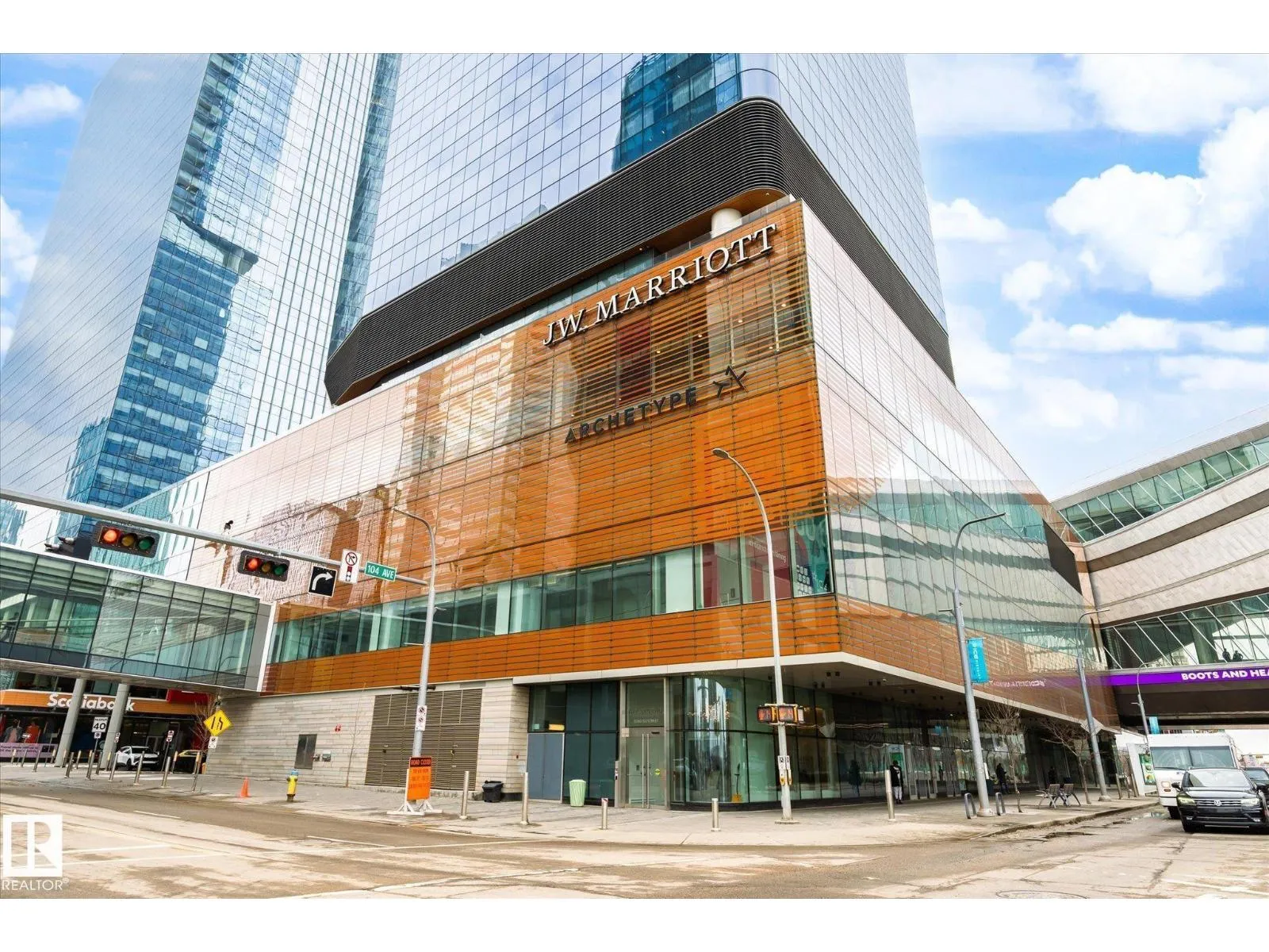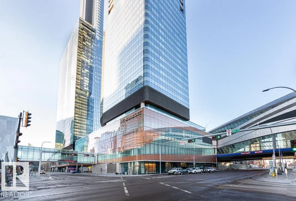 Experience elevated living at The Legends Private Residences atop the JW Marriott Hotel in Edmonton's vibrant ICE District. This 1 bedroom, 1 bathroom unit offers a thoughtfully designed space on the 25th floor with amazing views. Step into an open-concept layout featuring high ceilings, engineered hardwood floors, floor-to-ceiling windows, and premium finishes throughout. The kitchen is equipped with stainless steel appliances, quartz countertops, and chic cabinetry. The bedroom connects to a spa-like 4-piece bathroom. Enjoy in-suite laundry and a private balcony. Building amenities include, indoor pool, rooftop patio, owner's lounge, BBQ area, and 24/7 concierge. Access Rogers Place, City Centre, and LRT via the Pedway. Includes one titled underground parking stall. Can be sold fully furnished. (id:27476)