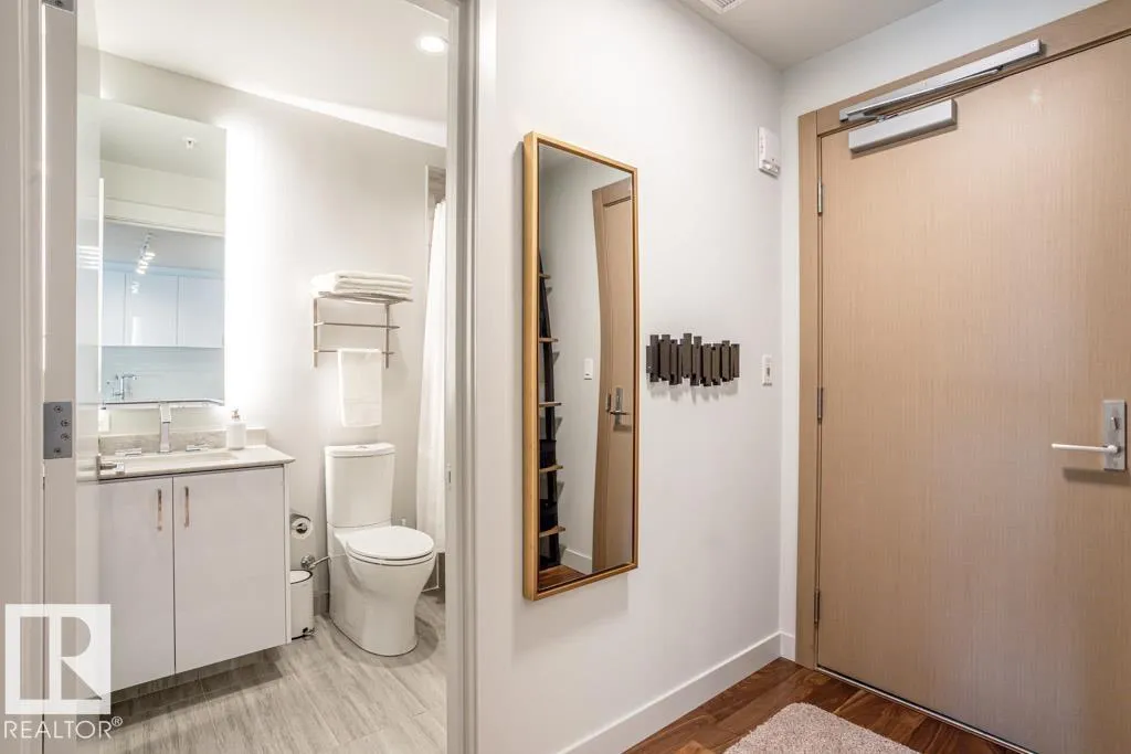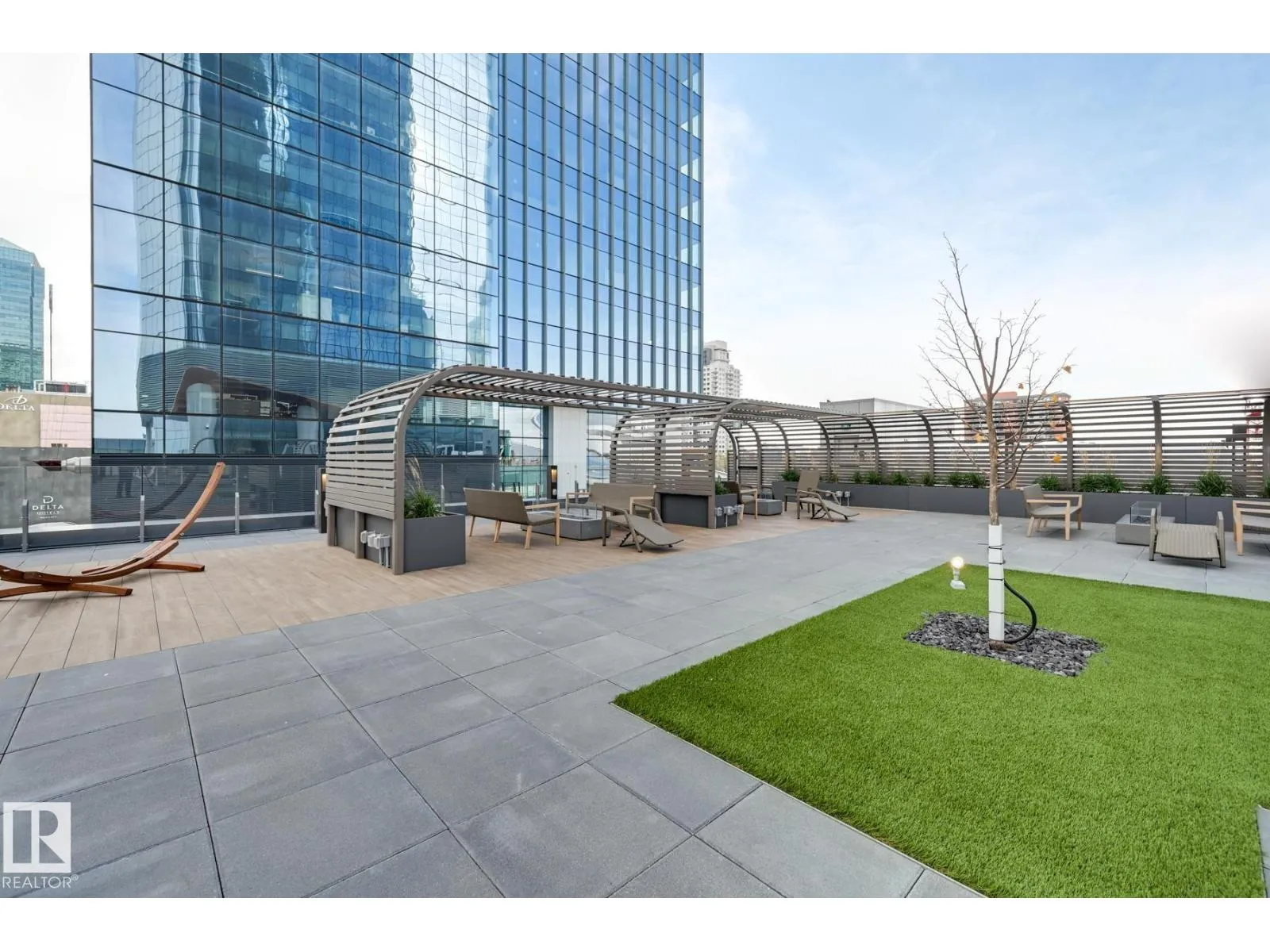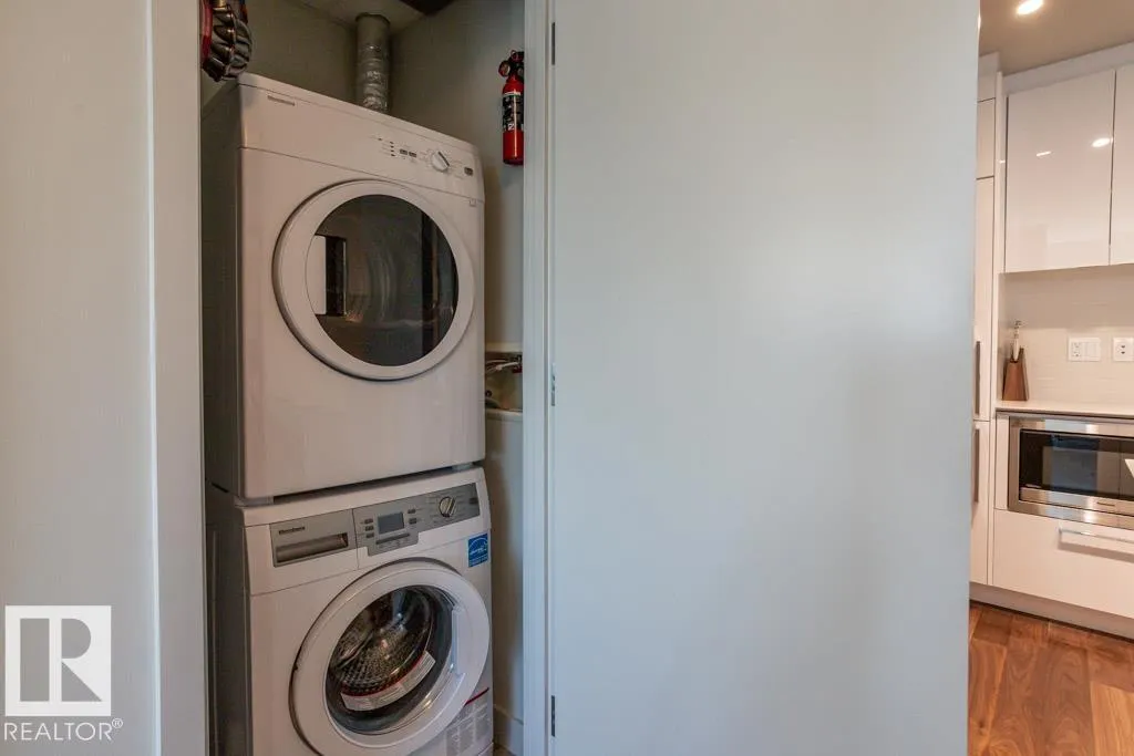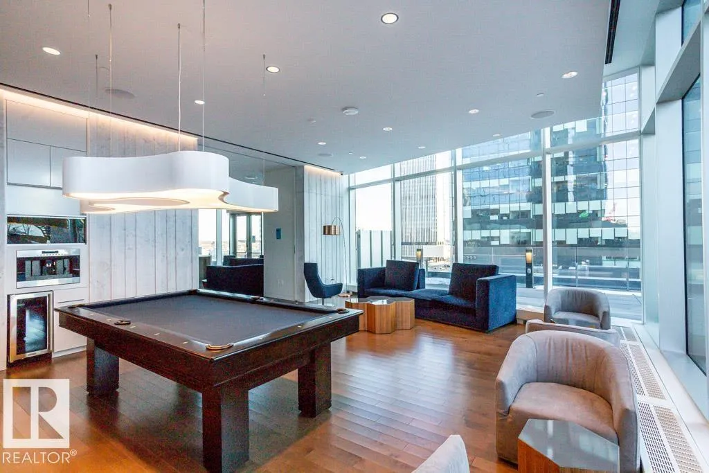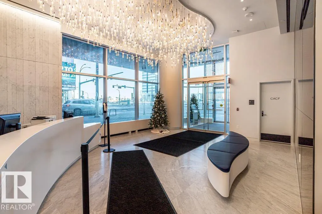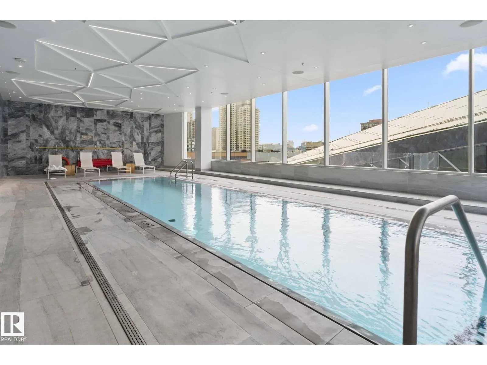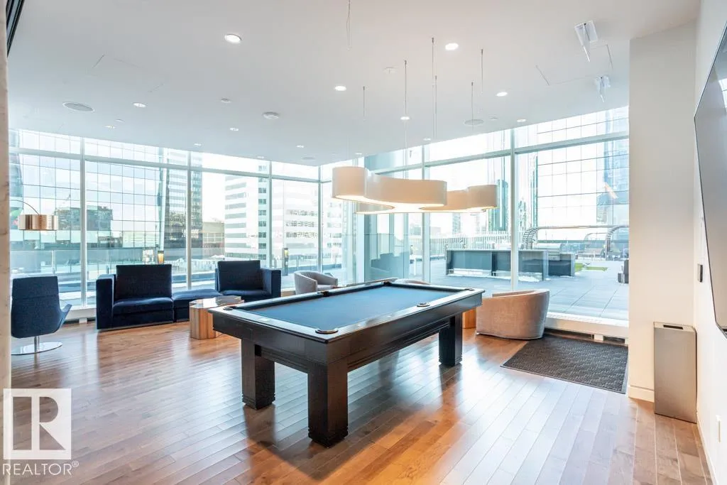 Experience elevated living at The Legends Private Residences atop the JW Marriott Hotel in Edmonton's vibrant ICE District. This 1 bedroom, 1 bathroom unit offers a thoughtfully designed space on the 25th floor with amazing views. Step into an open-concept layout featuring high ceilings, engineered hardwood floors, floor-to-ceiling windows, and premium finishes throughout. The kitchen is equipped with stainless steel appliances, quartz countertops, and chic cabinetry. The bedroom connects to a spa-like 4-piece bathroom. Enjoy in-suite laundry and a private balcony. Building amenities include, indoor pool, rooftop patio, owner's lounge, BBQ area, and 24/7 concierge. Access Rogers Place, City Centre, and LRT via the Pedway. Includes one titled underground parking stall. Can be sold fully furnished. (id:27476)