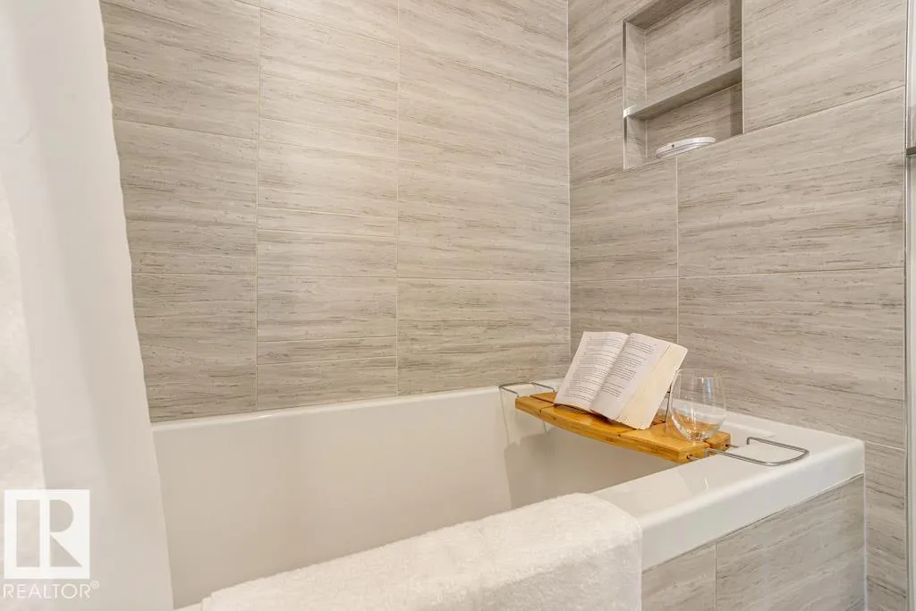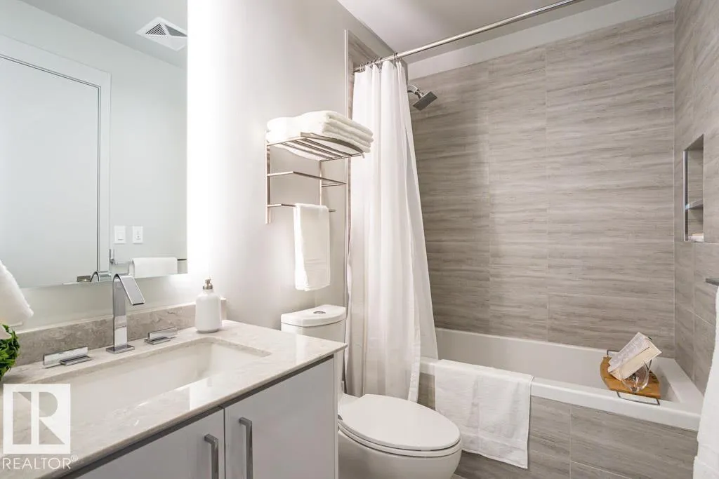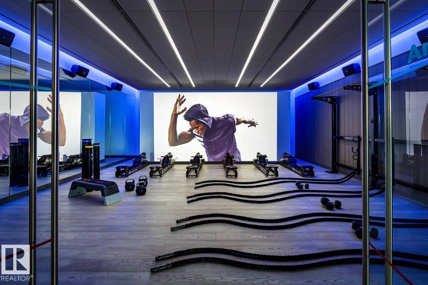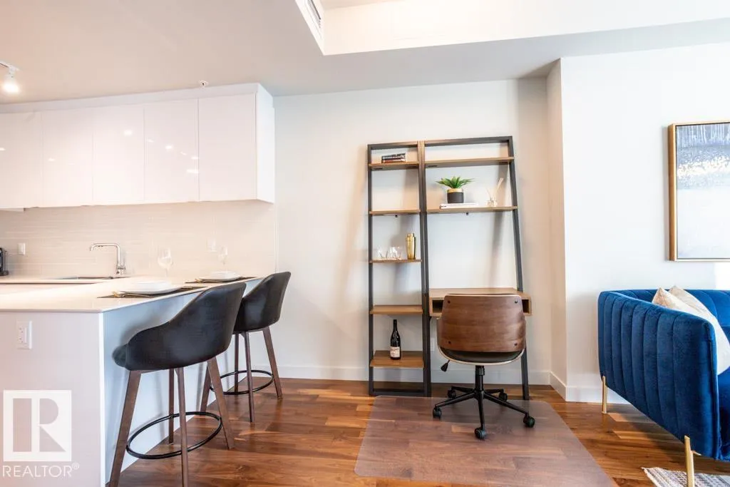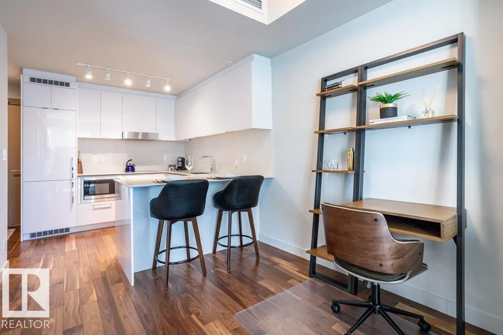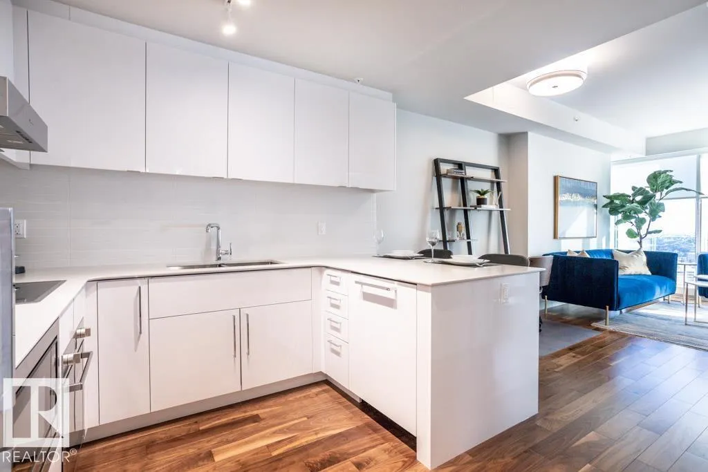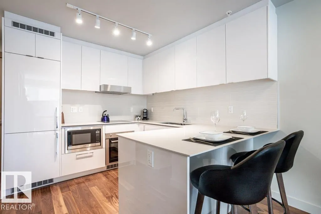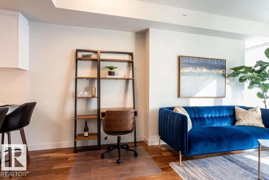 Experience elevated living at The Legends Private Residences atop the JW Marriott Hotel in Edmonton's vibrant ICE District. This 1 bedroom, 1 bathroom unit offers a thoughtfully designed space on the 25th floor with amazing views. Step into an open-concept layout featuring high ceilings, engineered hardwood floors, floor-to-ceiling windows, and premium finishes throughout. The kitchen is equipped with stainless steel appliances, quartz countertops, and chic cabinetry. The bedroom connects to a spa-like 4-piece bathroom. Enjoy in-suite laundry and a private balcony. Building amenities include, indoor pool, rooftop patio, owner's lounge, BBQ area, and 24/7 concierge. Access Rogers Place, City Centre, and LRT via the Pedway. Includes one titled underground parking stall. Can be sold fully furnished. (id:27476)