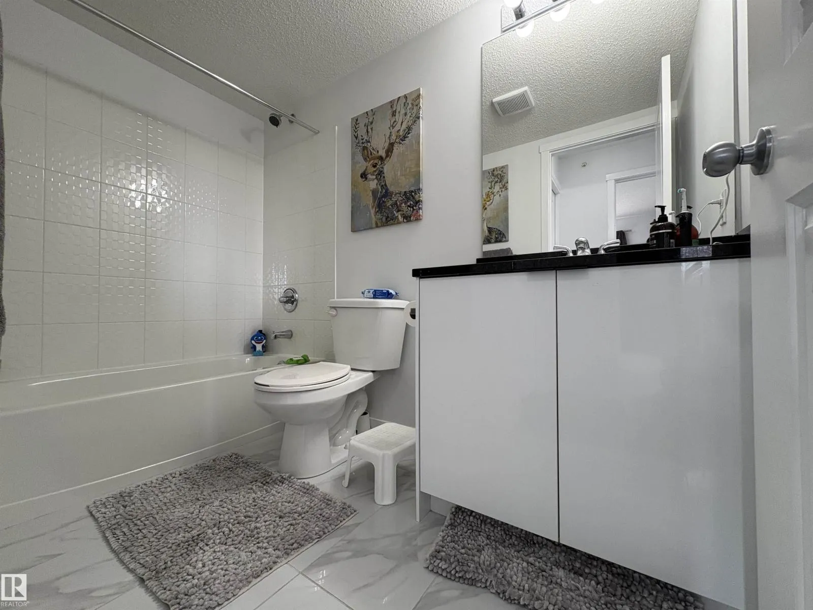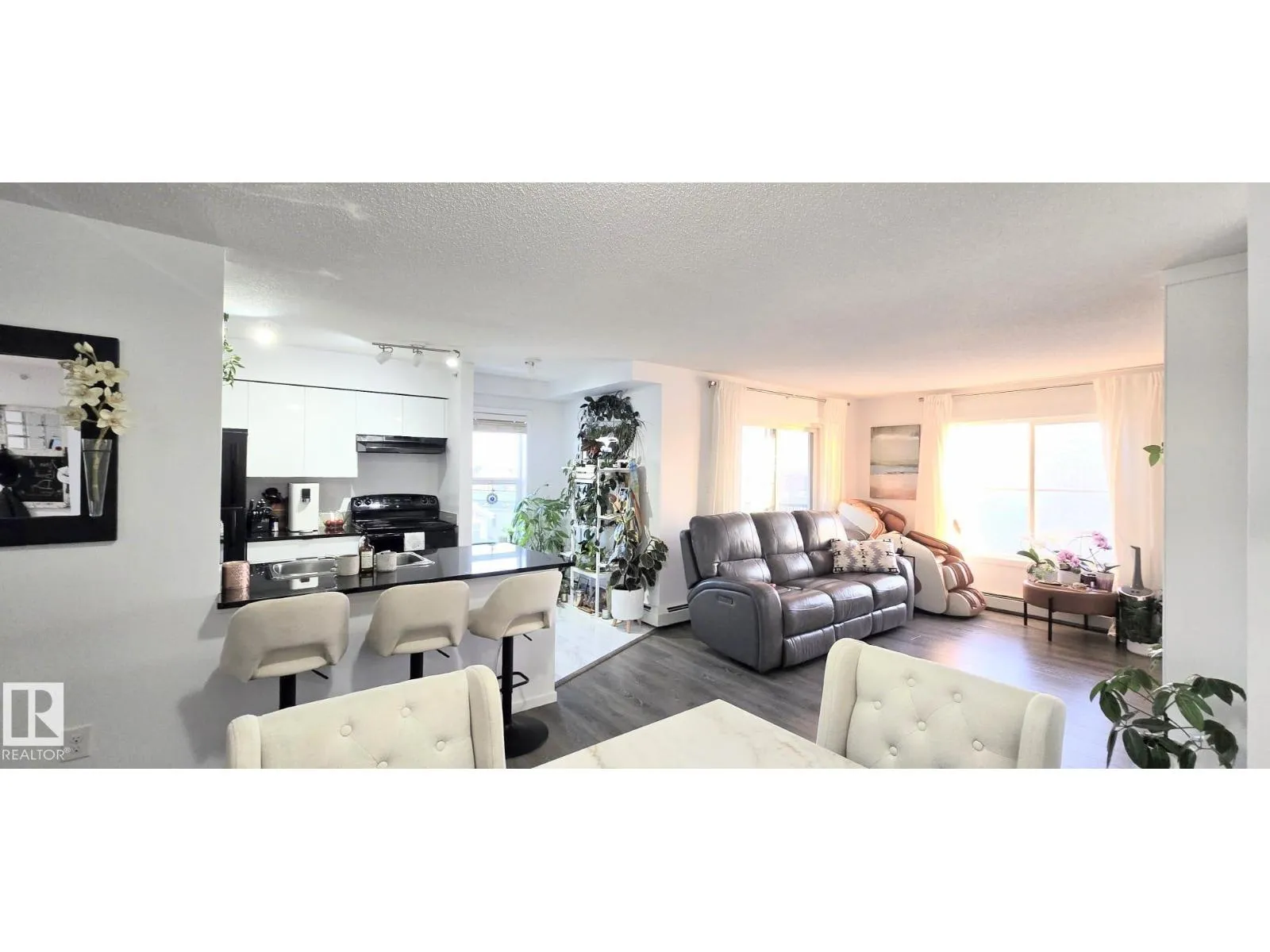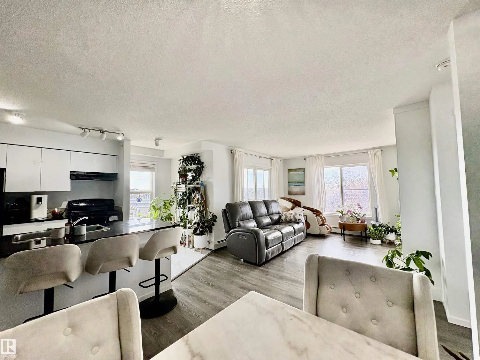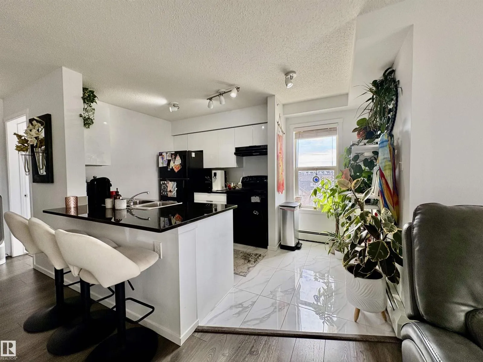 Bright, sunny top-floor corner unit with 2 bedrooms, 2 baths, den with desirable south-west exposure with lake views! This beautifully renovated home features a brand-new kitchen with quartz countertops, ceramic tile floors, fresh paint, plush carpeting, updated bathrooms, and stylish lighting throughout, as well as a custom-built-in TV wall unit and a new washer-dryer. All renovations have been completed within the last year, offering modern comfort and peace of mind. Step out onto the private deck and enjoy the serene surroundings and downtown skyline view. This spacious layout includes two bedrooms plus a den/office, with loads of windows that flood the home with natural light. A cleverly designed hidden office adds both functionality and charm, making this space truly unique. Includes a titled heated underground parking stall for added comfort and convenience. Shows fantasticâmove-in ready! (id:27476)