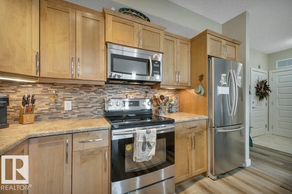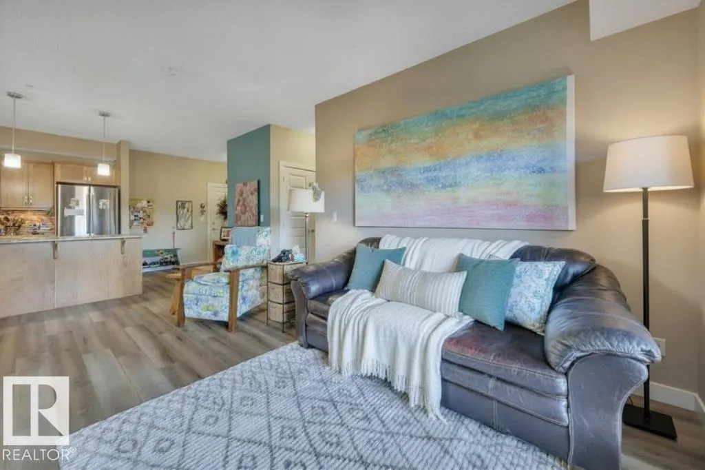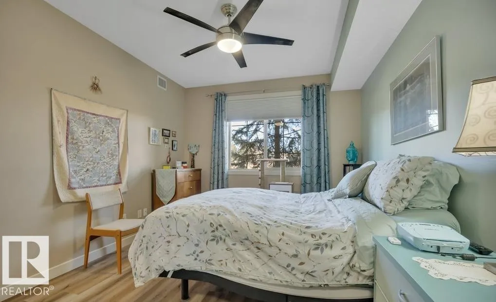 ENJOY Sunshine, Space & SERENITY in Serenity Gardens! Built in 2010, this well cared-for, original-owner condo offers over 915 SF of bright, functional space thatâs MOVE-IN READY! Open-concept design with a welcoming foyer, spacious kitchen, LARGE ISLAND, and plenty of room to cook, gather, and entertain. Living room is filled with beautiful natural light as it leads to the RAISED WEST-FACING BALCONY overlooking a Mt. Pleasant Park. Both bedrooms also face west with LARGE WINDOWS for even more natural light! Generous primary bedroom includes a WALK-THROUGH CLOSET and PRIVATE 3-PIECE ENSUITE. With the 2nd bedroom and additional 4-PIECE BATH, this unit offers ample room for family or guests. Enjoy A/C, gas BBQ hookup (BBQ INCLUDED) + TITLED UNDERGROUND PARKING w/private storage. Serene colour palette, newer vinyl plank floors, and 9â ceilings. Fantastic location in Pleasantview - surrounded by green space and close to U of A, schools, Southgate Mall, many other amenities, and major routes. Welcome home! (id:27476)