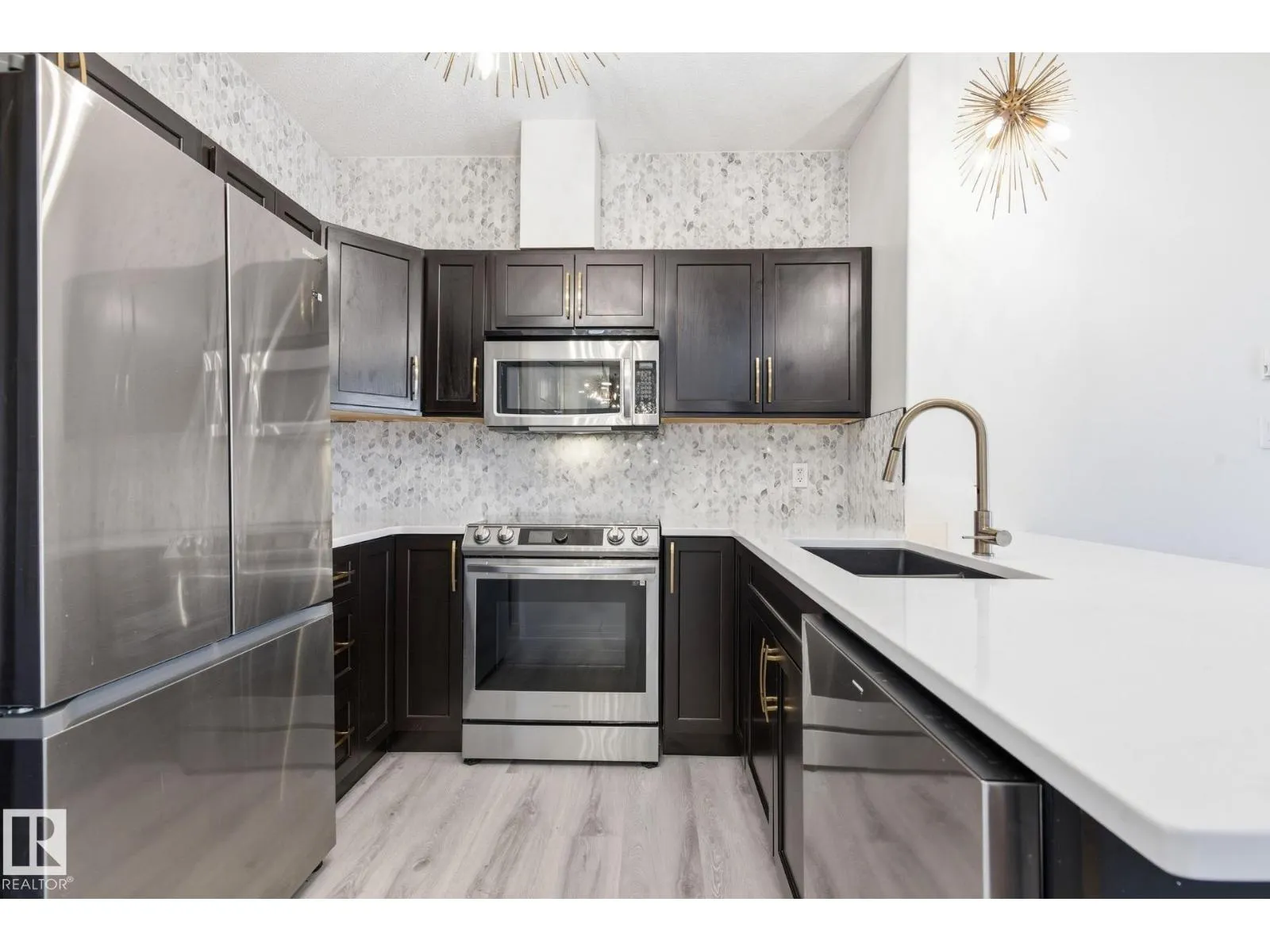 This original owner 2-bed+2-bath+den main-floor unit has been professionally renovated top to bottom, with everything done for you, including central A/C and all appliances. You'll love the fresh, modern feel with all-new vinyl plank flooring (no carpet), fresh paint, new baseboards, doors, lighting, plumbing fixtures, and hardware throughout. The kitchen has been completely redone with white quartz countertops, large island, marble backsplash, new lower cabinetry & pull-out drawers, while both bathrooms are fully updated with new vanities, tile surrounds, and ceiling-height mirrors. The custom wall detailing in the living room and oversized mirrors in the den and dining area add a unique design touch you donât typically see. Enjoy the west-facing patio, 9 ft ceilings, and the added bonus of the guest suite just 2 doors down. The building is very well run, has some of the lowest condo fees in the area, and a high percentage of long-term owners, which speaks to how happy people are here. Pet friendly too! (id:27476)
