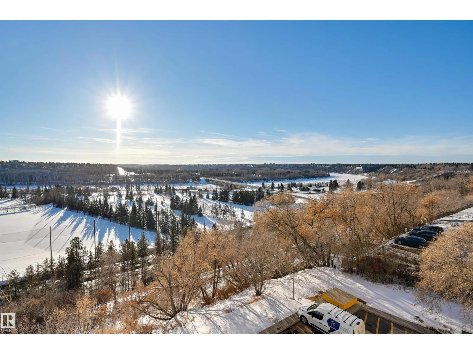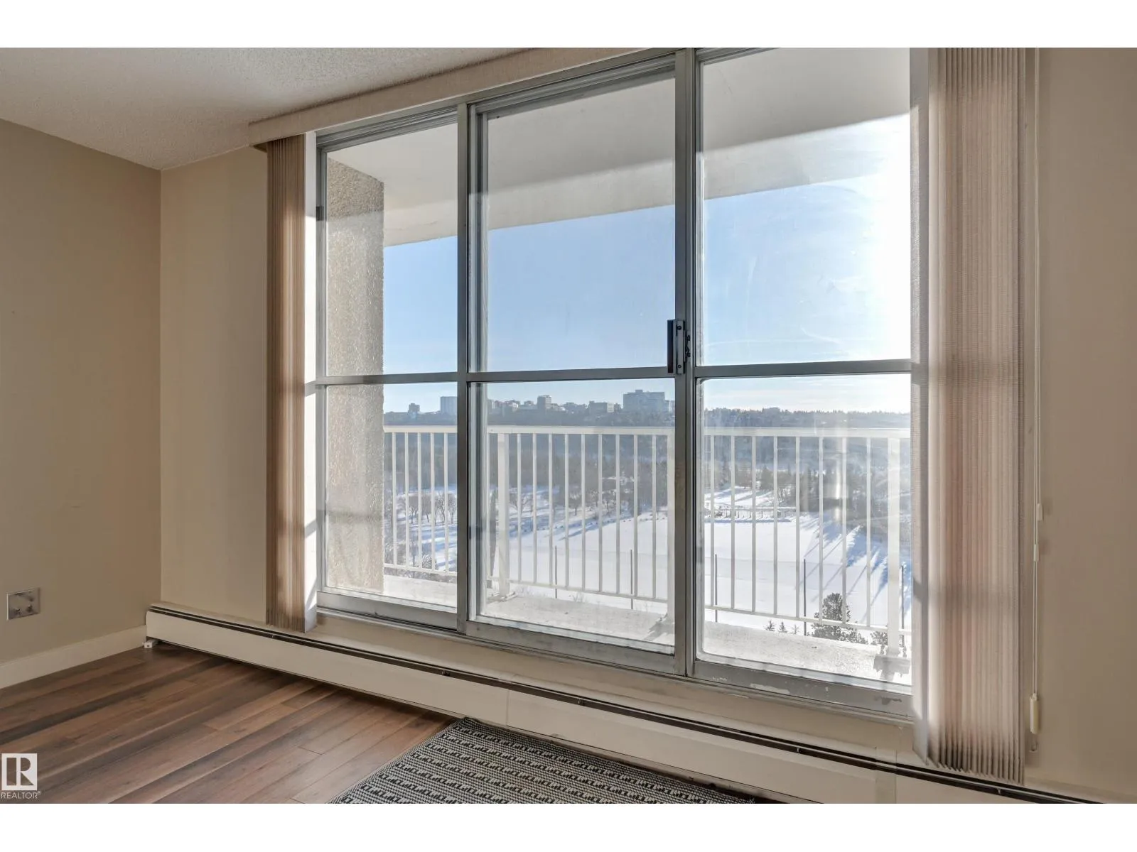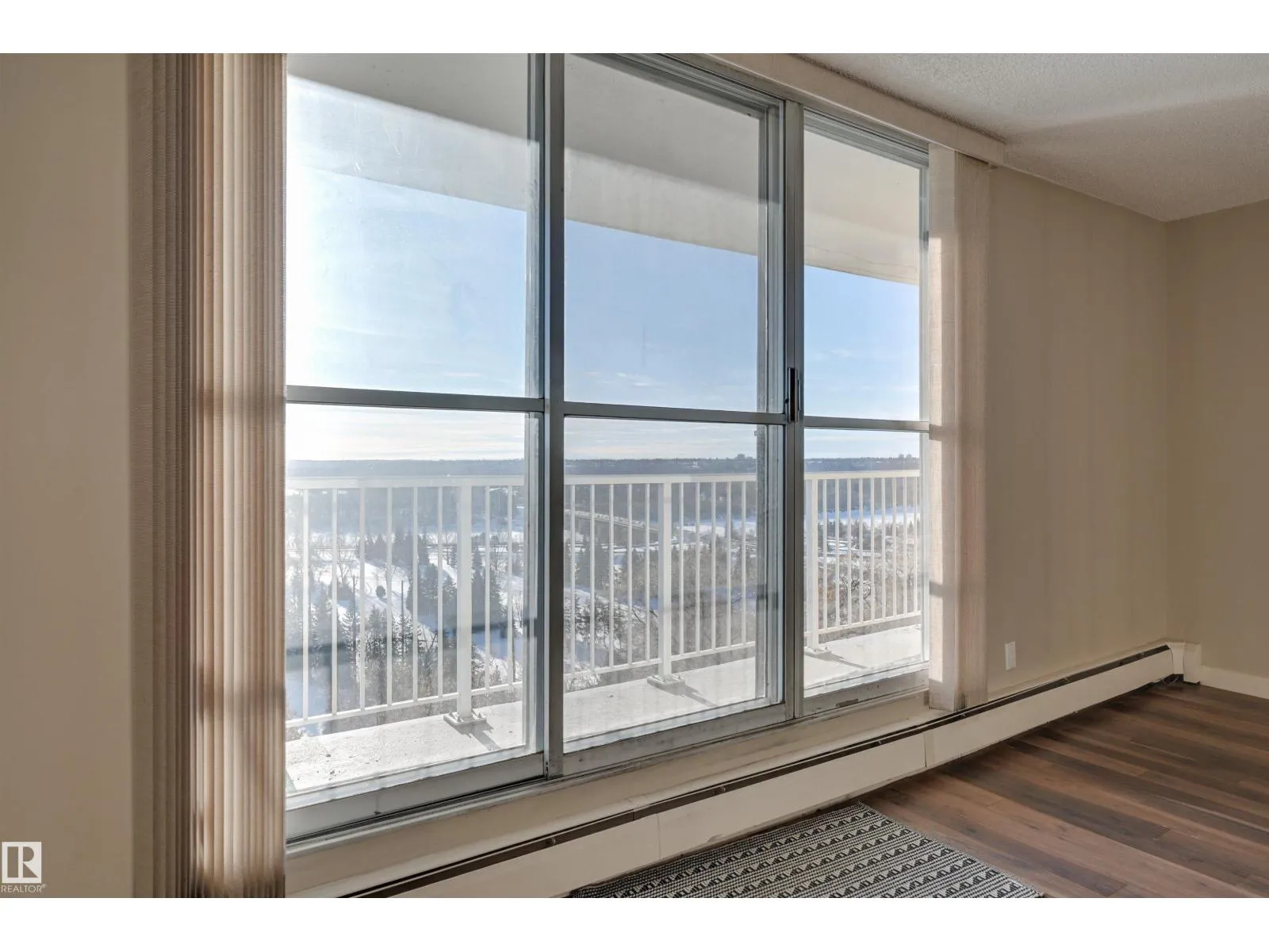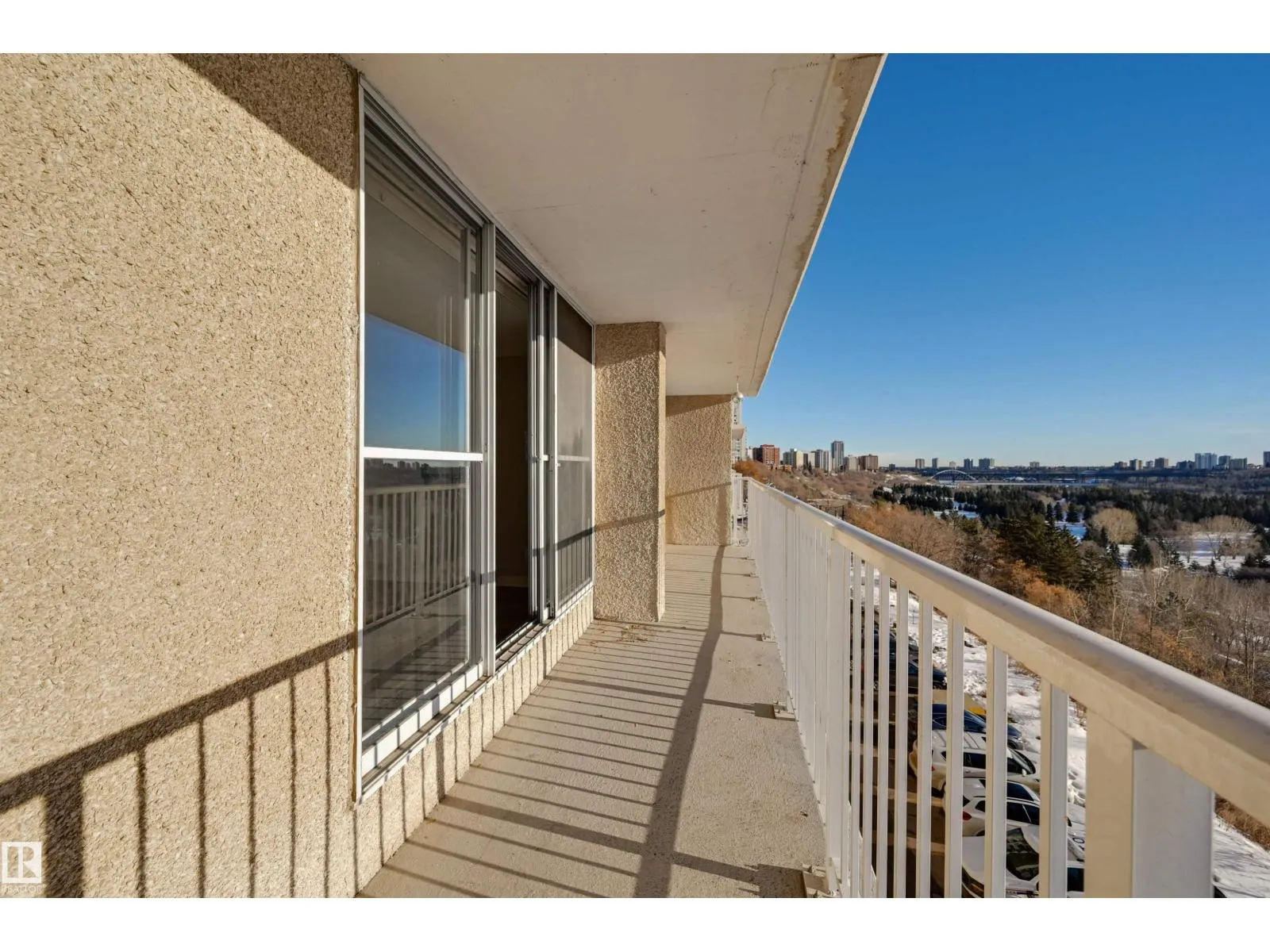 SPECTACULAR RIVER VALLEY VIEW from every window in this BRIGHT, COMPLETELY RENOVATED 1126 sq.ft. 2 bedroom 1.5 bathroom condo in TOP OF THE VALLEY conveniently located with transportation at your doorstep, close to unique shops, restaurants, coffee shops, Art Galleries, the Brewery District, the river valley walking/biking trails & quick access to the U of A. Spacious living room overlooking the river & access to the sunny south facing balcony. The gourmet kitchen is open to the living area with espresso color cabinetry, granite countertops, S/S appliances. The dining room has built-in cabinets. The primary suite is complete with a walk-in closet & a 2 piece bathroom. Spacious 2nd bedroom & a 4 piece bathroom with tile tub surround, new vanity & toilet. Laminate flooring throughout except for tile in the bathrooms. Large storage room. The condo fees include heat, water, power, laundry & underground parking. The building features a completely remodelled exercise room & lobby. Shows very well! (id:27476)