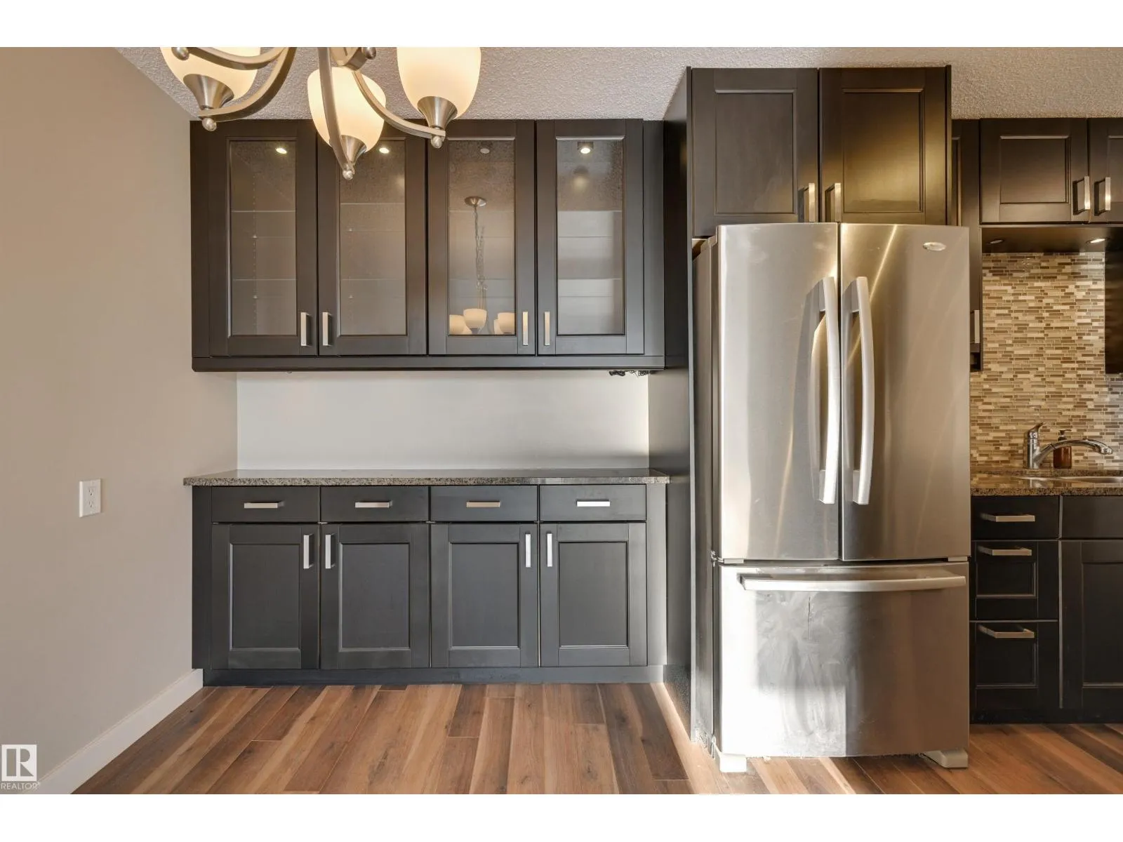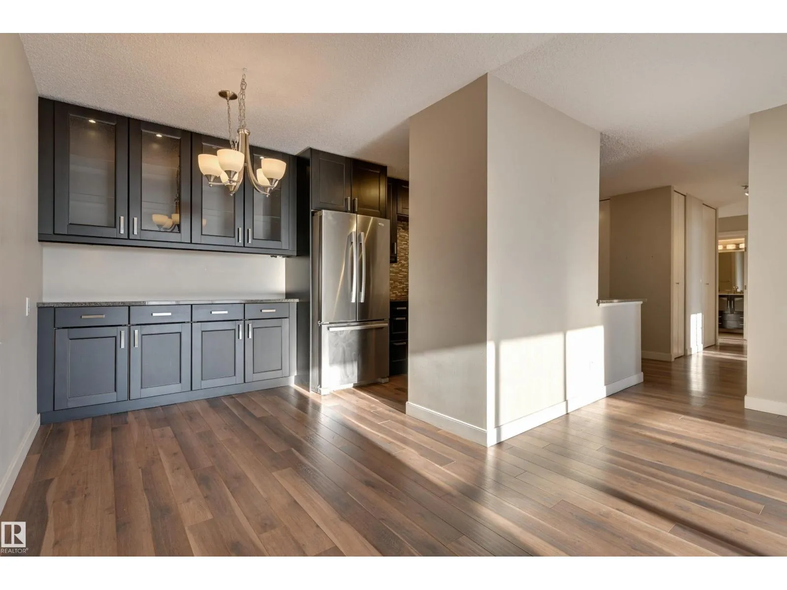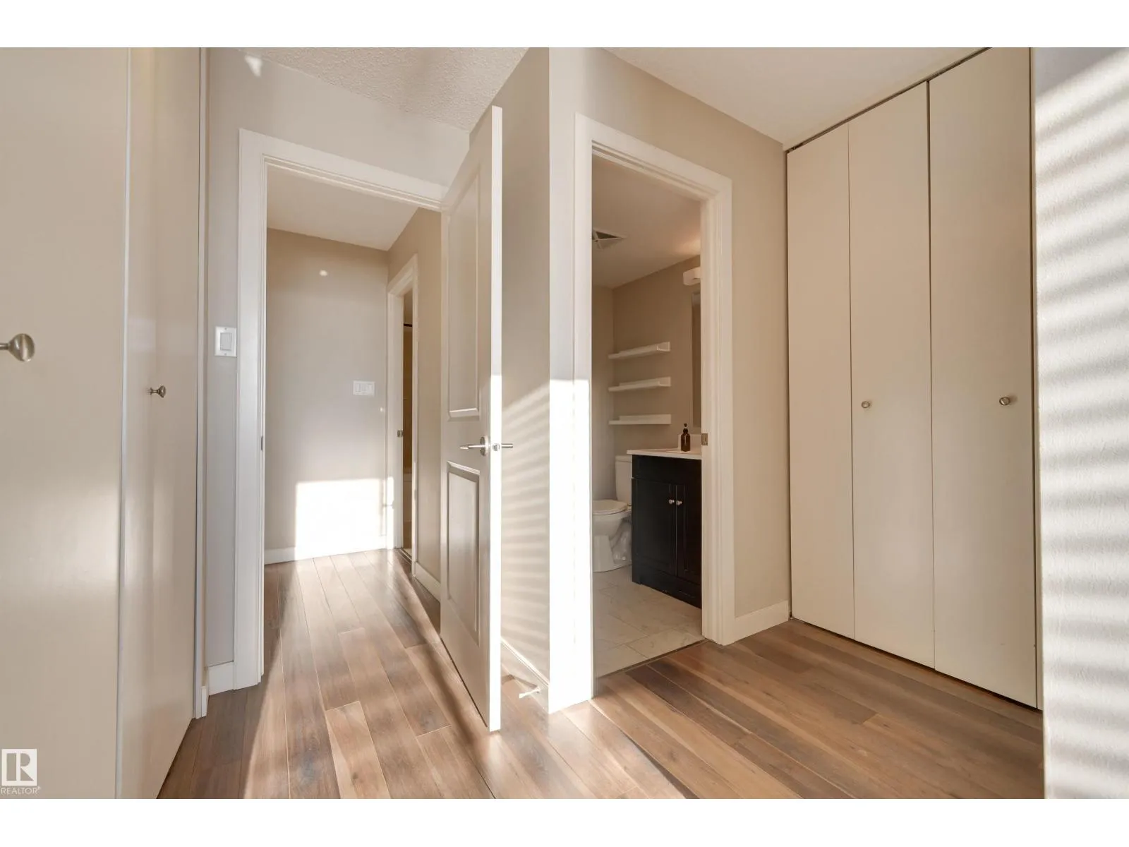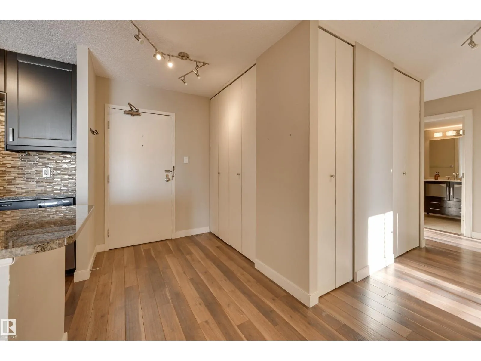 SPECTACULAR RIVER VALLEY VIEW from every window in this BRIGHT, COMPLETELY RENOVATED 1126 sq.ft. 2 bedroom 1.5 bathroom condo in TOP OF THE VALLEY conveniently located with transportation at your doorstep, close to unique shops, restaurants, coffee shops, Art Galleries, the Brewery District, the river valley walking/biking trails & quick access to the U of A. Spacious living room overlooking the river & access to the sunny south facing balcony. The gourmet kitchen is open to the living area with espresso color cabinetry, granite countertops, S/S appliances. The dining room has built-in cabinets. The primary suite is complete with a walk-in closet & a 2 piece bathroom. Spacious 2nd bedroom & a 4 piece bathroom with tile tub surround, new vanity & toilet. Laminate flooring throughout except for tile in the bathrooms. Large storage room. The condo fees include heat, water, power, laundry & underground parking. The building features a completely remodelled exercise room & lobby. Shows very well! (id:27476)