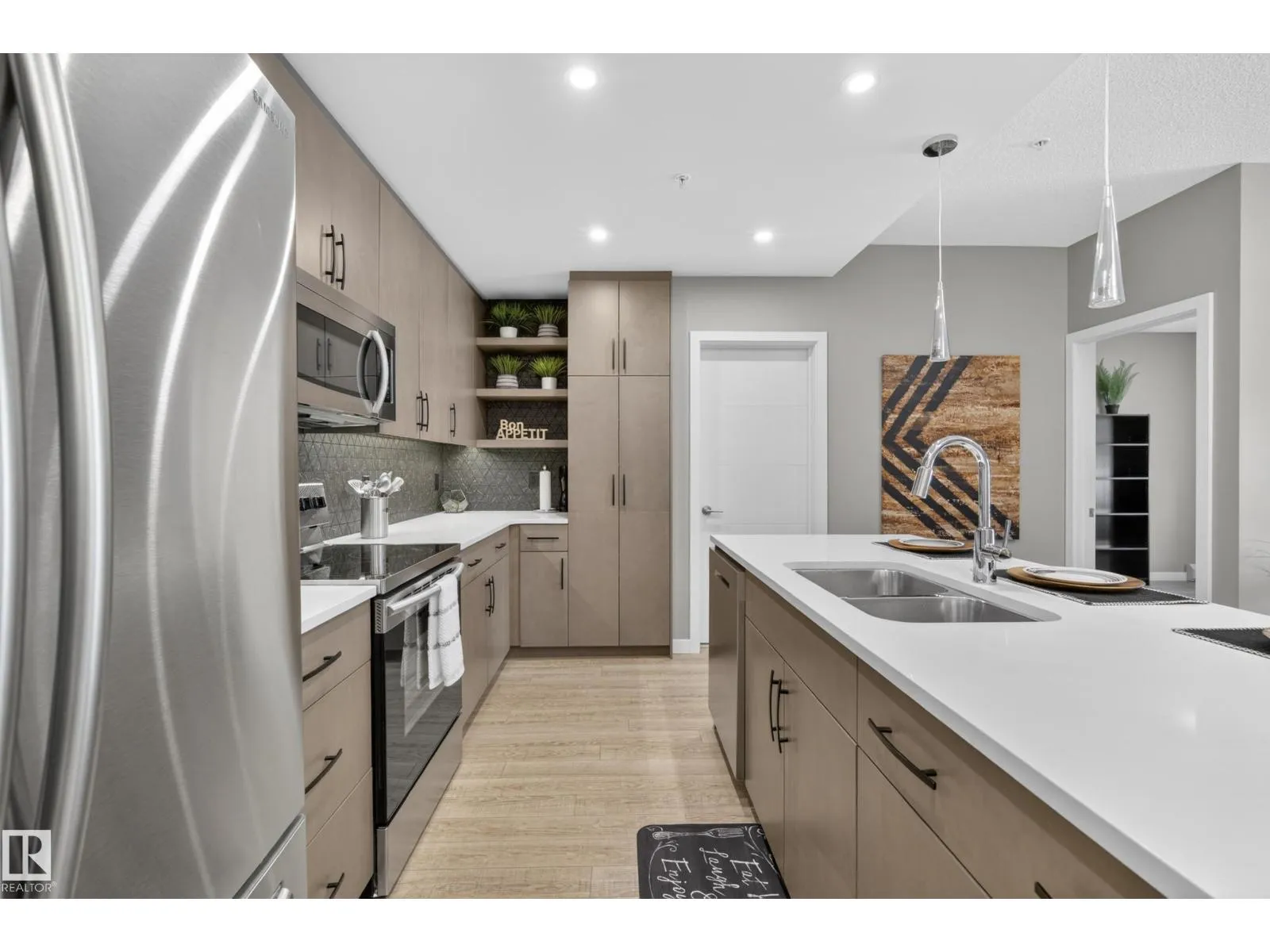 Welcome to this FULLY FURNISHED, modern 2-bedroom, 2-bathroom condo in the desirable community of Allard. Offering a bright open-concept layout with 9â ceilings, this home features a stylish kitchen complete with quartz countertops, sleek cabinetry, and stainless steel appliances. The spacious living area is perfect for everyday living and entertaining, with access to a private balcony to relax and unwind. The primary bedroom includes a walk-in closet and 3-piece ensuite, while the second bedroom is ideal for guests, a home office, or additional living space. Enjoy the convenience of in-suite laundry and a titled heated underground parking stall. Located just minutes from Blackmud Creek Ravine, shopping, restaurants, schools, and major commuter routes, including Anthony Henday and QE2, this property offers the perfect balance of comfort and accessibility. Ideal for first-time buyers, downsizers, or investors. (id:27476)