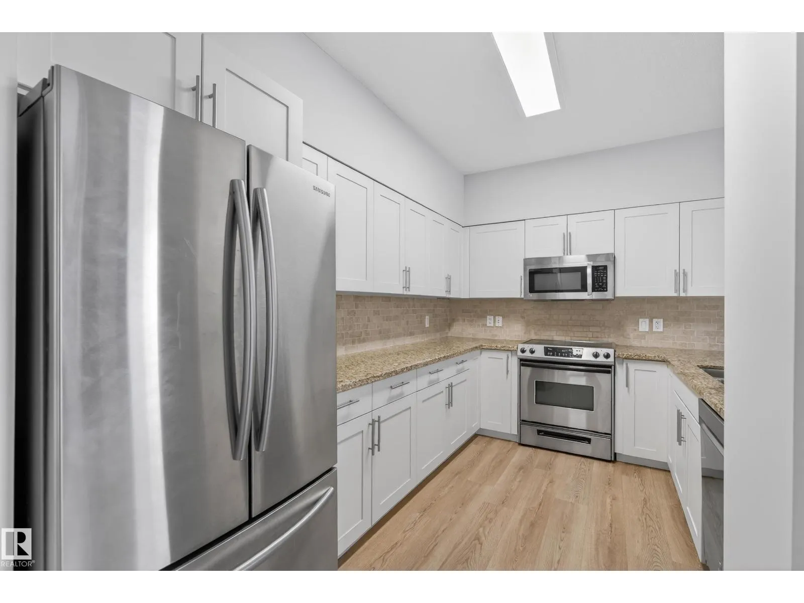 Experience the best of downtown living in this bright 2-bedroom, 2-bath condo, with titled TANDEM underground parking and a large private patio perfect for entertaining. The open-concept living and dining area flows into a modern kitchen with granite counters, eating bar, and stainless-steel appliances. The spacious primary bedroom offers a generous walk in closet and 3 pc ensuite. The large second bedroom has ample closet space and direct access to the 4 pc bath. Enjoy in-suite laundry, sleek vinyl plank flooring, air conditioning, and plenty of storage. Steps to fantastic restaurants, cafes, shops & nightlife. Minutes to Ice District & Rogers Place. Quick access to the U of A and the rest of the city with LRT across the street. This move-in ready condo is perfect for anyone seeking style, comfort, and vibrant downtown living. (id:27476)