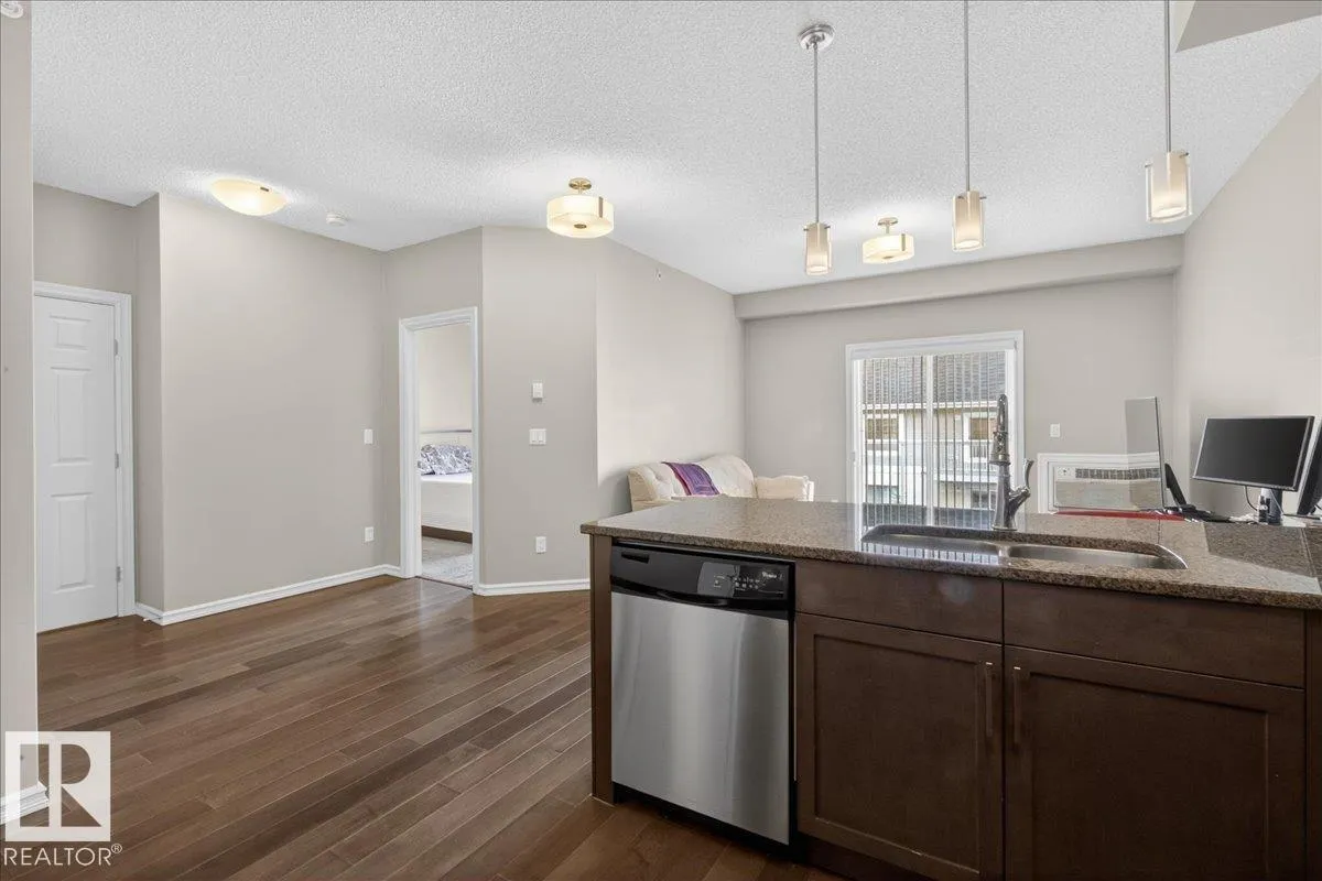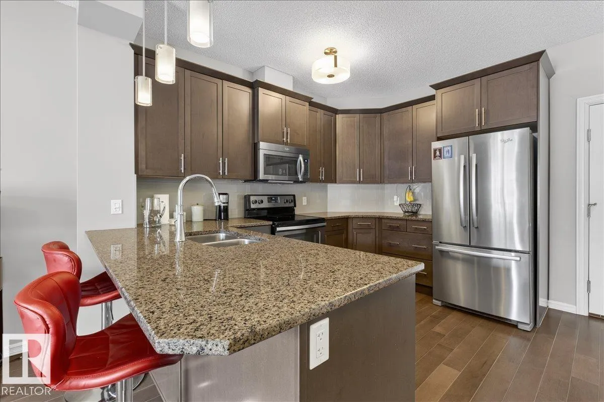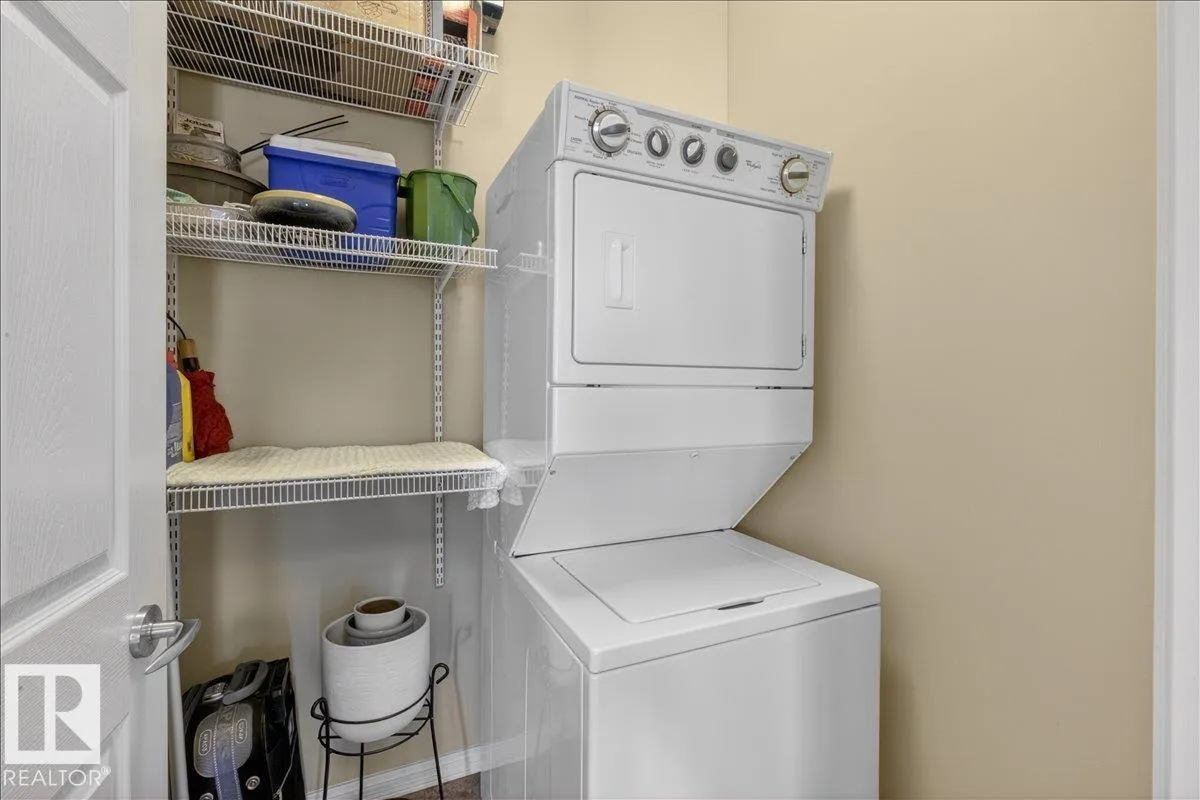 Immaculate! This AIR CONDITIONED one bedroom 4th floor unit is in perfect condition and still looks like it is brand new. This upgraded unit features granite counter tops, a large kitchen with loads of maple cabinets and stainless steel appliances. You won't find a scratch on the beautiful hardwood floors. There is in-suite storage with stacked laundry. This unit includes a non titled storage cage and one titled underground parking stall. Conveniently located just steps from loads of amenities, schools, parks and bus stops with easy access to the Whitemud and Anthony Henday. Aspen Meadows is a very well run complex with a healthy reserve fund and the condo fees include ALL utilities including the electricity. (id:27476)