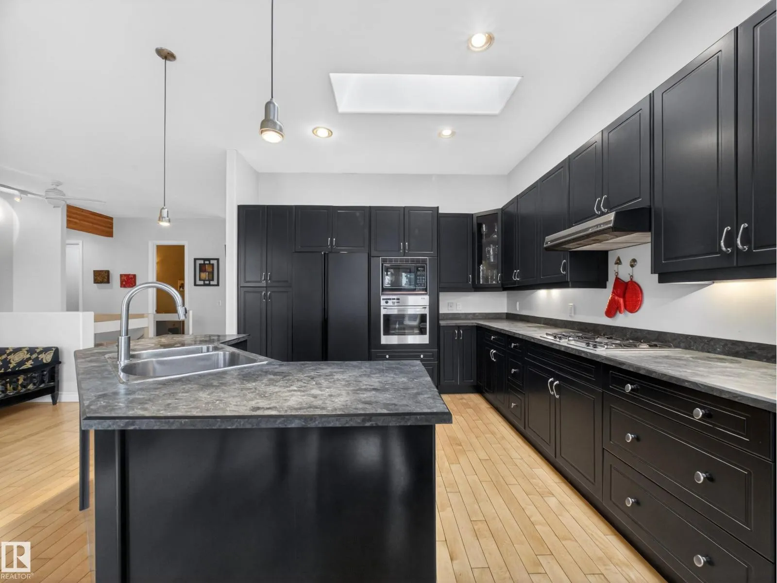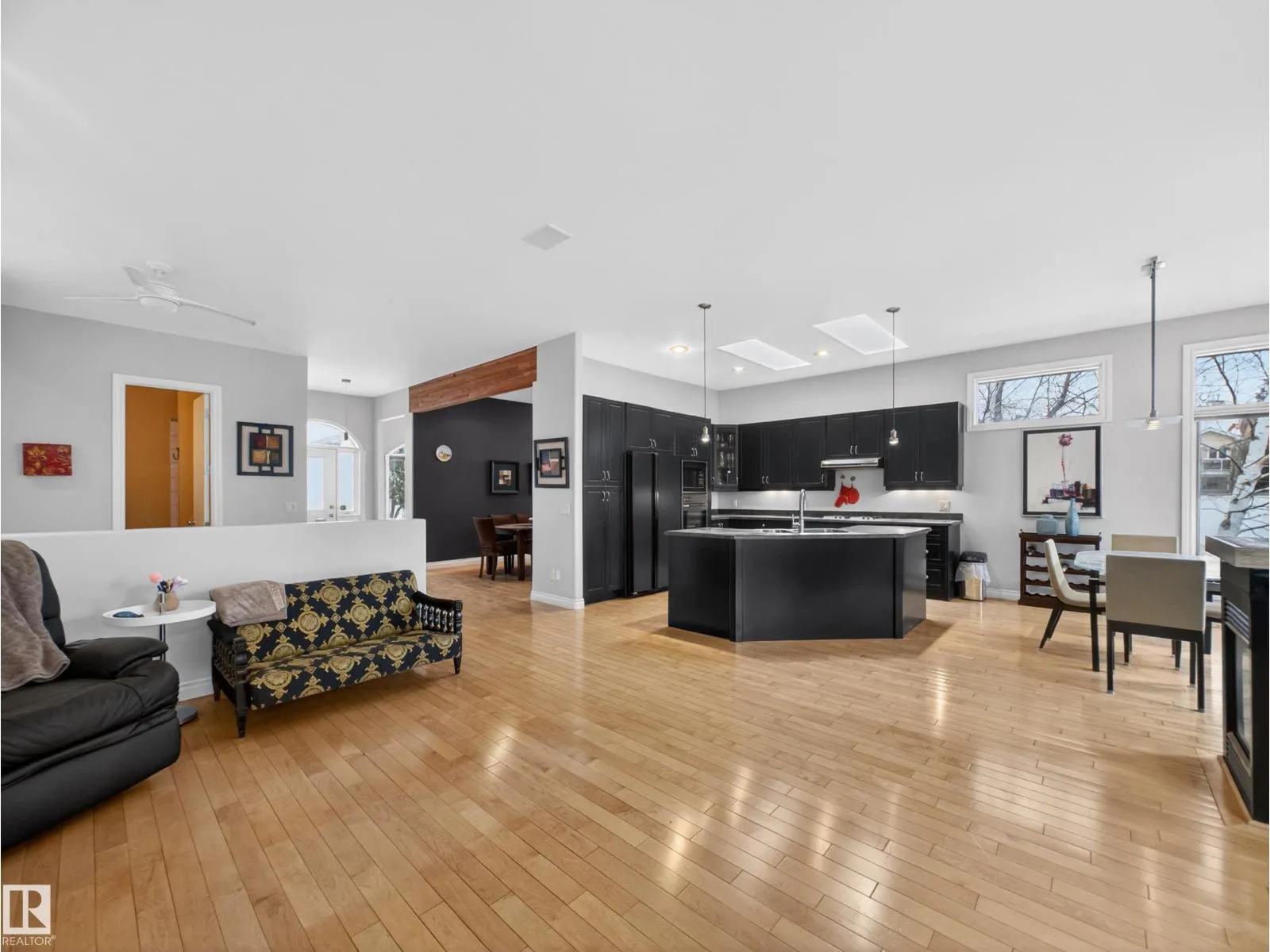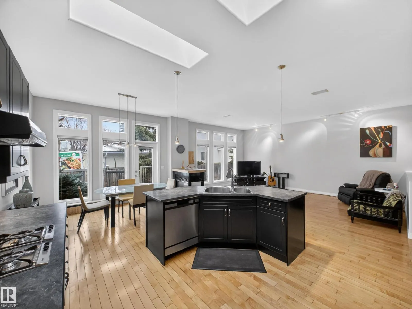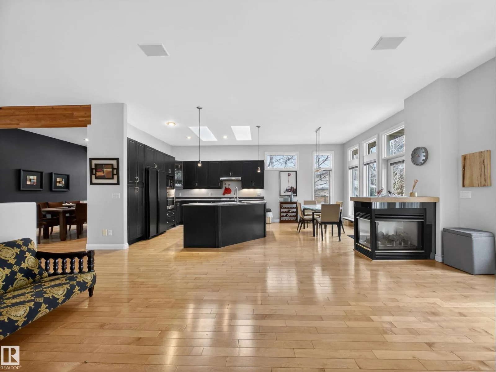 Welcome to this stunning, light-filled bungalow offering almost 3,600 sq ft of fully finished living space. With an abundance of windows throughout, this home is incredibly bright and inviting, soaring 10â ceilings, 8â doors, and 3 skylights that flood the space with natural light. The main floor features 2 spacious bedrooms, including a generous primary retreat, while the fully finished basement adds a third bedroom. The open-concept layout is complemented by hardwood and ceramic tile flooring, and a well-appointed kitchen with built-in oven and gas cooktop. A three-sided gas fireplace anchors the main living areas. Enjoy added comfort with in-floor heating in all bathrooms and the basement, along with the convenience of a water softener. Air conditioning, 9â basement ceilings, and a double attached garage. Situated on a beautifully landscaped, low-maintenance lot with a private deck, and just steps to parks, schools, and shopping, this is a rare opportunity to own a bright, executive bungalow. (id:27476)