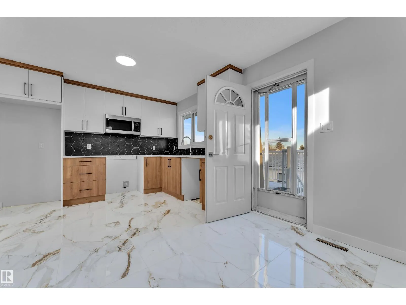 Perfectly located in the desirable community of Meyokumin, this fully renovated residence offers an exceptional blend of style, comfort, and functionality. Featuring 5 bedrooms and 2 bathrooms, the home boasts a thoughtfully designed layout ideal for modern family living. The brand-new kitchen is a true highlight, seamlessly connecting to a spacious deck and a beautifully landscaped, private backyard complete with a double detached garage perfect for both relaxation and entertaining. The main level offers a bright and inviting living room along with three generously sized bedrooms. The fully developed basement expands your living space with two additional bedrooms, a 3-piece bathroom, a den, a second kitchen, and a large recreation area ideal for extended family or potential suite use. Notable upgrades include a carbon water filtration system, leaf guard eavestroughs, and a mobility ramp for enhanced accessibility. Conveniently located near schools, shopping, and with quick access to Anthony Henday Drive. (id:27476)
