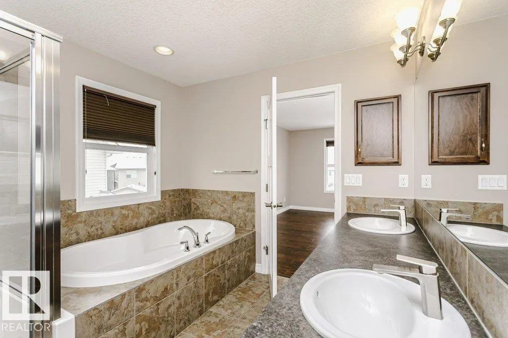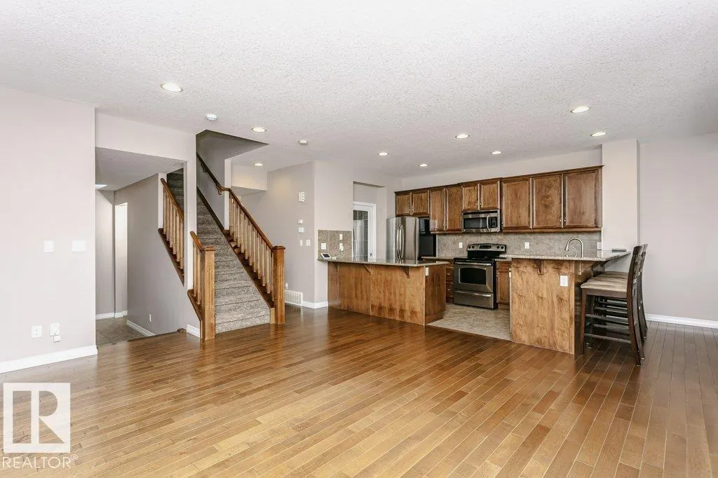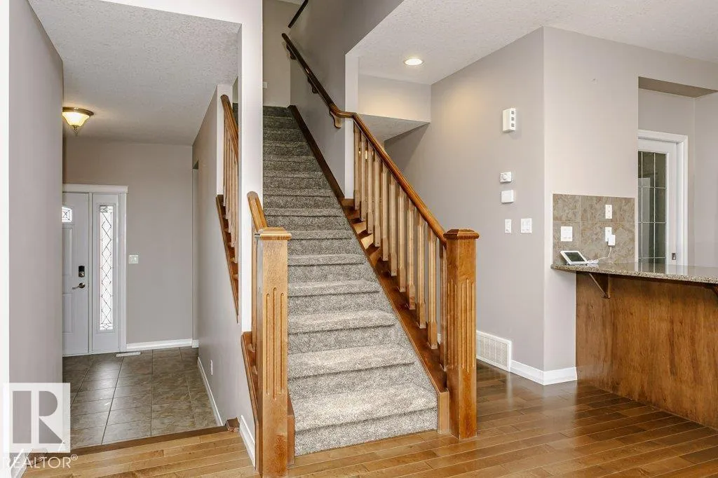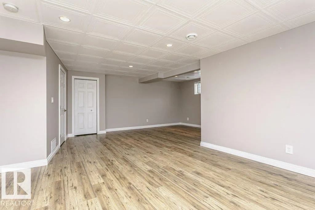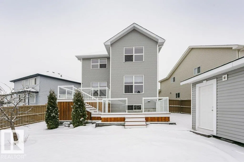 This beautifully upgraded 2-storey features an open-concept main floor with 9â ceilings, quartz countertops, stainless steel appliances, a corner pantry, and a dining area that opens onto two cedar decks with sleek glass railings. The bright living room, w/ gas fireplace, adds warmth and charm, while Hunter Douglas blinds elevate the space throughout. Upstairs offers a spacious bonus room, three bedrooms including a generous primary suite with walk-in closet and spa-inspired ensuite, plus convenient laundry. All upper walls are insulated for added soundproofing, and triple-pane front windows boost energy efficiency. The fully finished basement extends your living space with a large rec room, gym area, workshop, and ample storage, along with high-efficiency furnace, central A/C. Outside, enjoy a landscaped yard with a fruit tree, a 20âx24â garage, a 12âx16â shed with overhead door, and back lane access. Located in family-friendly McConachie near schools, shopping, transit, and quick to the Anthony Henday. (id:27476)