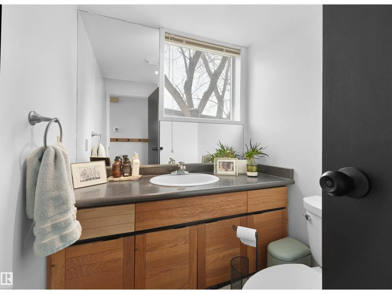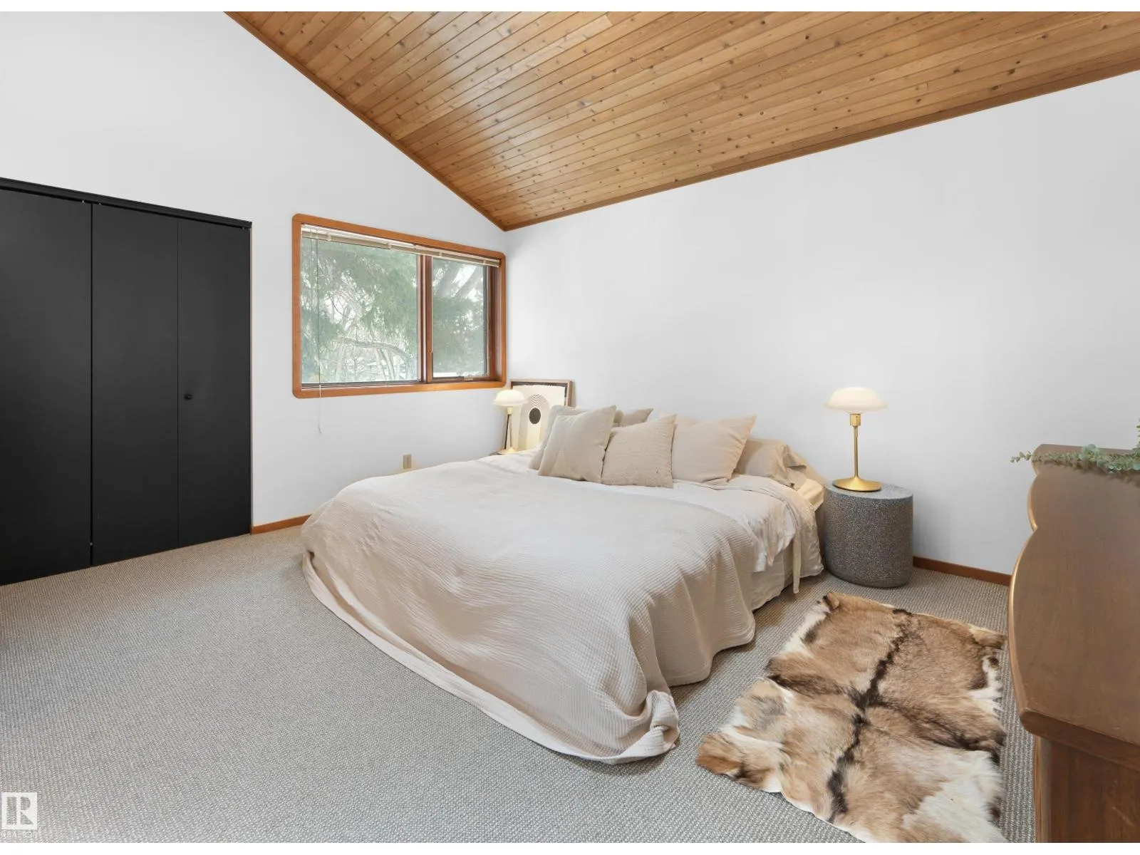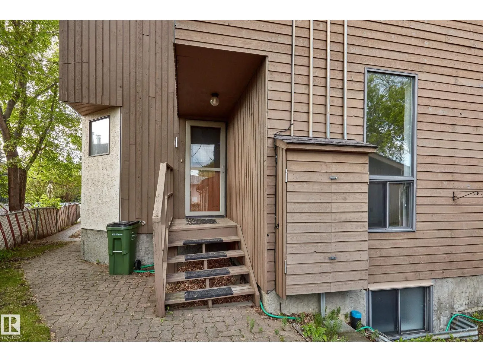 Vaulted cedar ceilings. Walls of glass. A ravine two blocks away. This isn't your typical townhouse. One of 3 units in a boutique 2-storey executive project, this Scandinavian-inspired home delivers over 2,350 sq ft, 4 beds, 2 full & 2 half baths, & unique N/W/E exposures. More finished space & more bathrooms than most single-family detached homes in the area, with the design aesthetic to back it up. The main floor opens to a living room w/ wood-burning fireplace, open-concept kitchen, dining room, & half bath. Upstairs, the primary suite features vaulted cedar ceilings, large windows, a 3-pc ensuite, & his/her closets. Two more generous bedrooms & a full bath complete the upper level. The finished basement adds a rec room, large flex room or 4th bed, storage, & half bath. Outside: a west-facing private courtyard w/ turf, a 2nd-level balcony, a gas BBQ hookup, & a single detached garage. Steps from the ravine, minutes to downtown, U of A, & Whyte Ave. Low fees. Low maintenance. More home than expected! (id:27476)