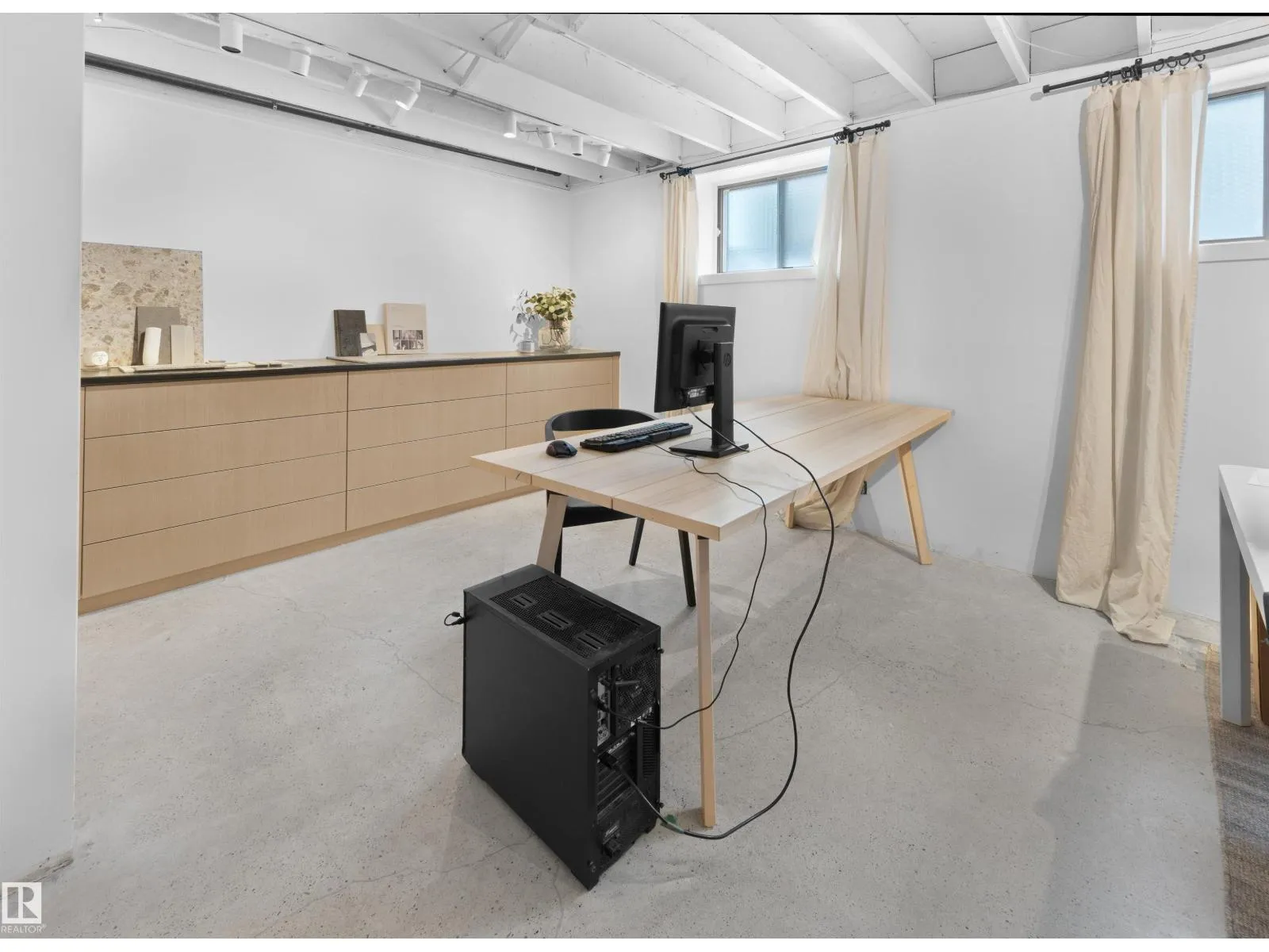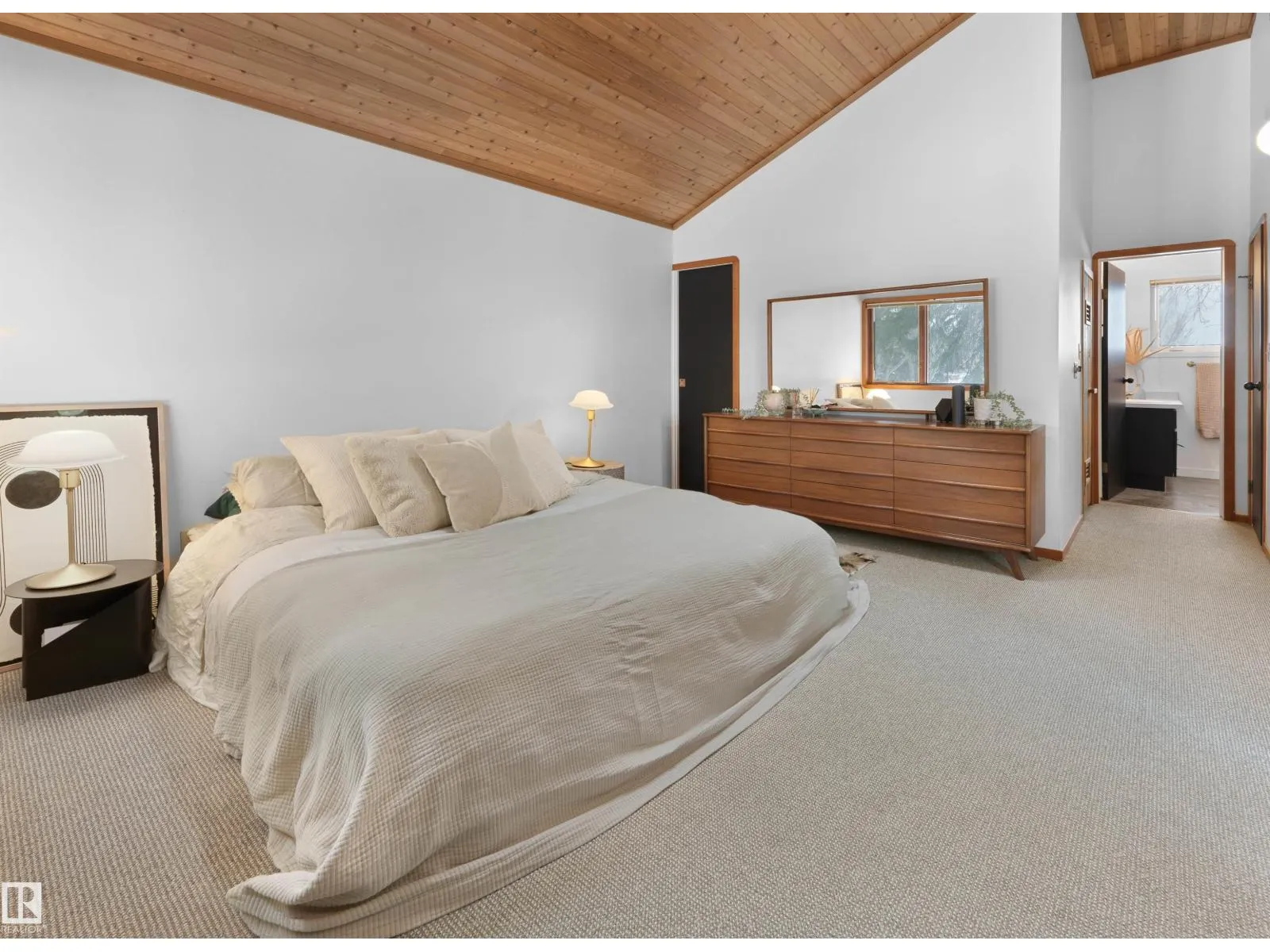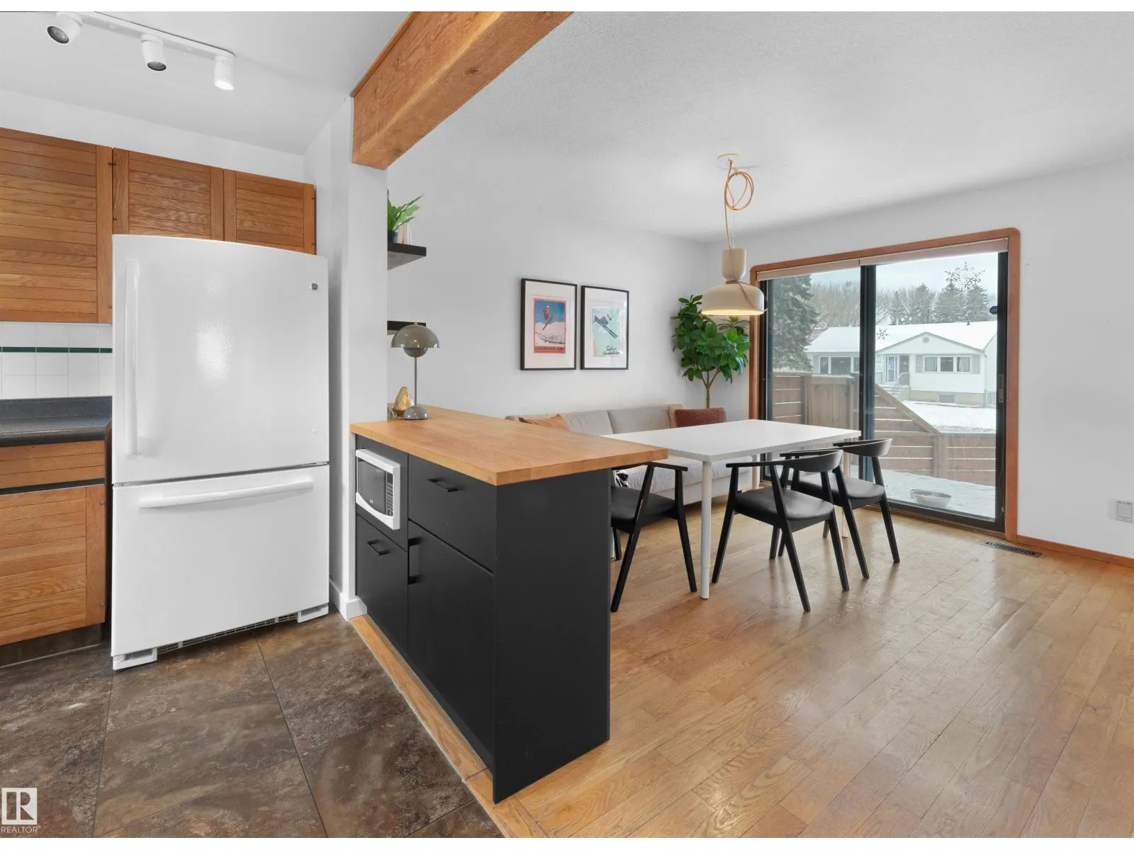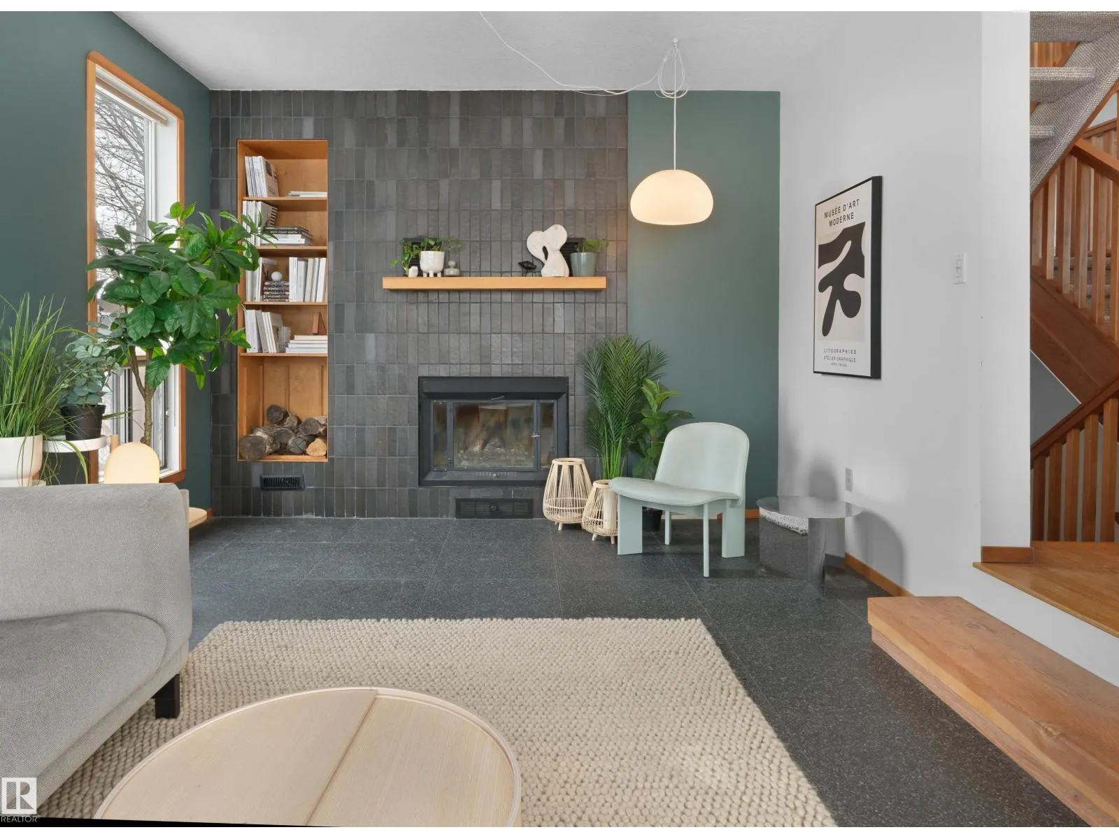 Vaulted cedar ceilings. Walls of glass. A ravine two blocks away. This isn't your typical townhouse. One of 3 units in a boutique 2-storey executive project, this Scandinavian-inspired home delivers over 2,350 sq ft, 4 beds, 2 full & 2 half baths, & unique N/W/E exposures. More finished space & more bathrooms than most single-family detached homes in the area, with the design aesthetic to back it up. The main floor opens to a living room w/ wood-burning fireplace, open-concept kitchen, dining room, & half bath. Upstairs, the primary suite features vaulted cedar ceilings, large windows, a 3-pc ensuite, & his/her closets. Two more generous bedrooms & a full bath complete the upper level. The finished basement adds a rec room, large flex room or 4th bed, storage, & half bath. Outside: a west-facing private courtyard w/ turf, a 2nd-level balcony, a gas BBQ hookup, & a single detached garage. Steps from the ravine, minutes to downtown, U of A, & Whyte Ave. Low fees. Low maintenance. More home than expected! (id:27476)