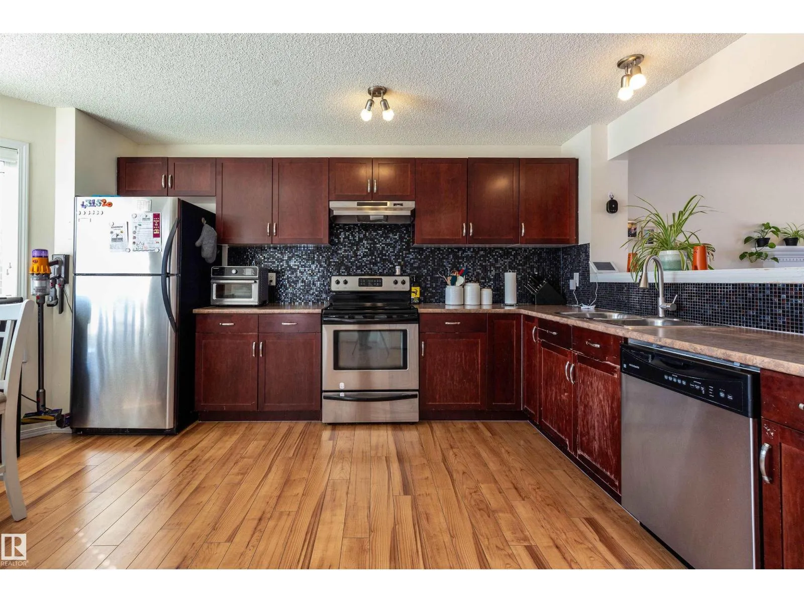 Welcome to the AMAZING community of the Hamptons. Boasting over 1200sq ft of finished living space with NO CONDO FEES, this property is perfect in so many ways. Stepping inside, you will immediately notice a beautiful GAS FIREPLACE, large windows allowing in plenty of NATURAL LIGHT, and plenty of space with the OPEN CONCEPT floorplan which is perfect for spending quality time with family and friends. Upstairs you will find 2 well appointed bedrooms, both with WALK-IN closets and ENSUITES. The basement is unfinished allowing you the freedom to choose the way to finish it. Venturing outside, the SPACIOUS yard is complete with DECK and DOUBLE PARKING PAD for the possibility of a future double garage. With close proximity to schools, shopping, transit and Henday - this property has it ALL! This fantastic property has NO CONDO fees, LARGE YARD, (id:27476)