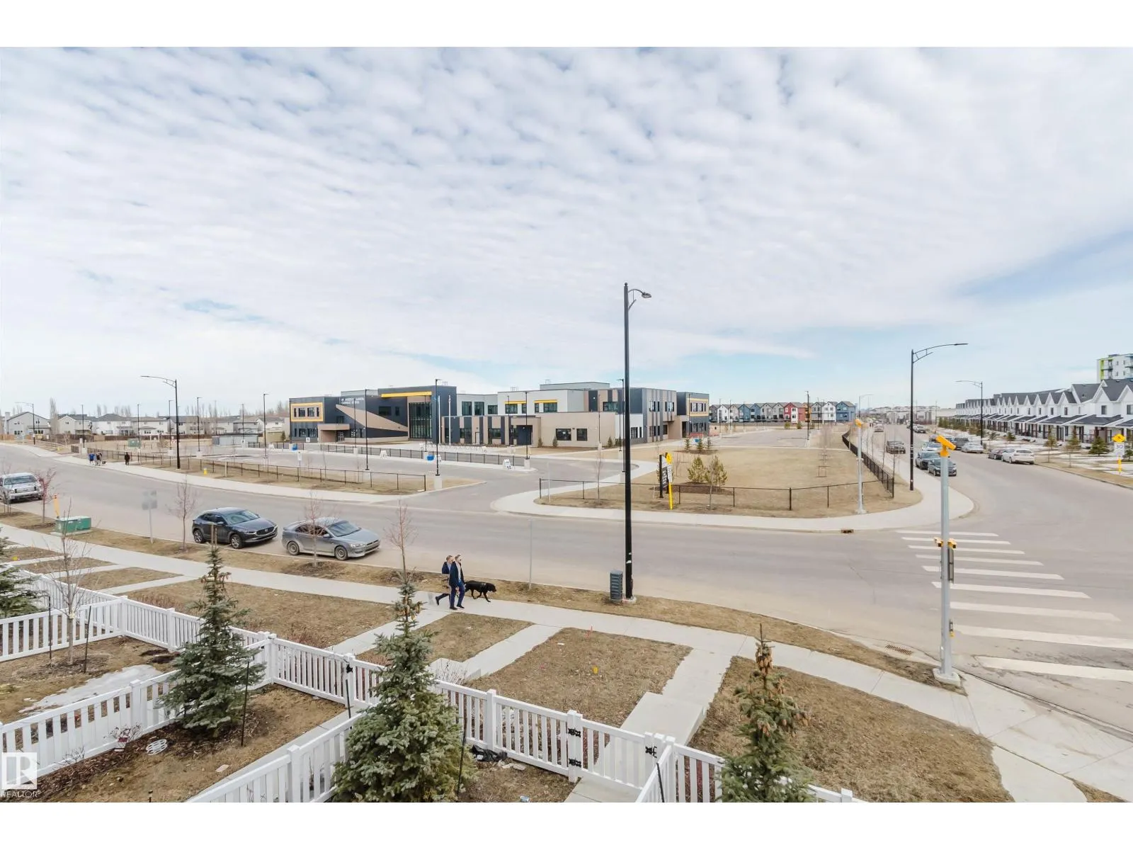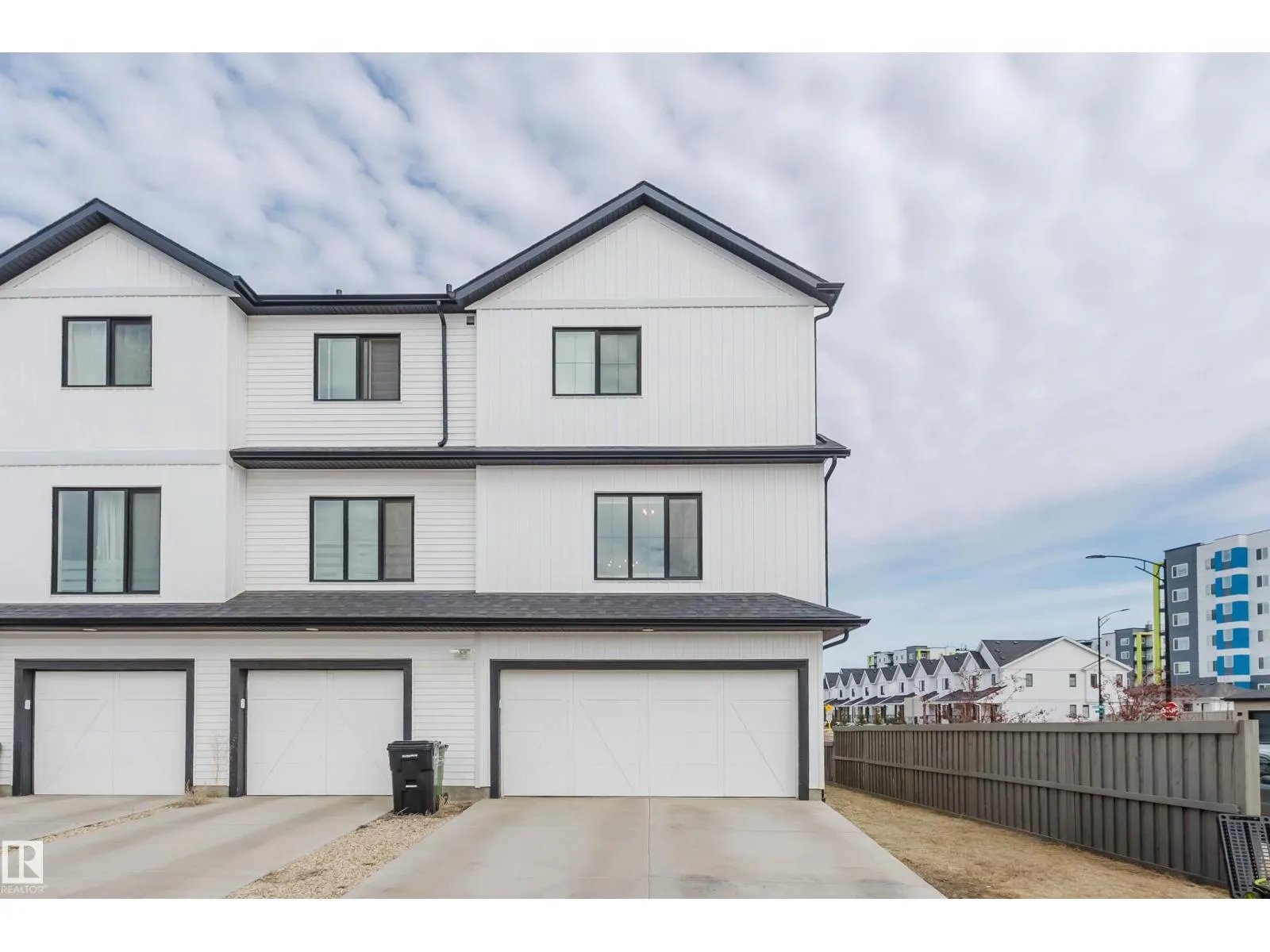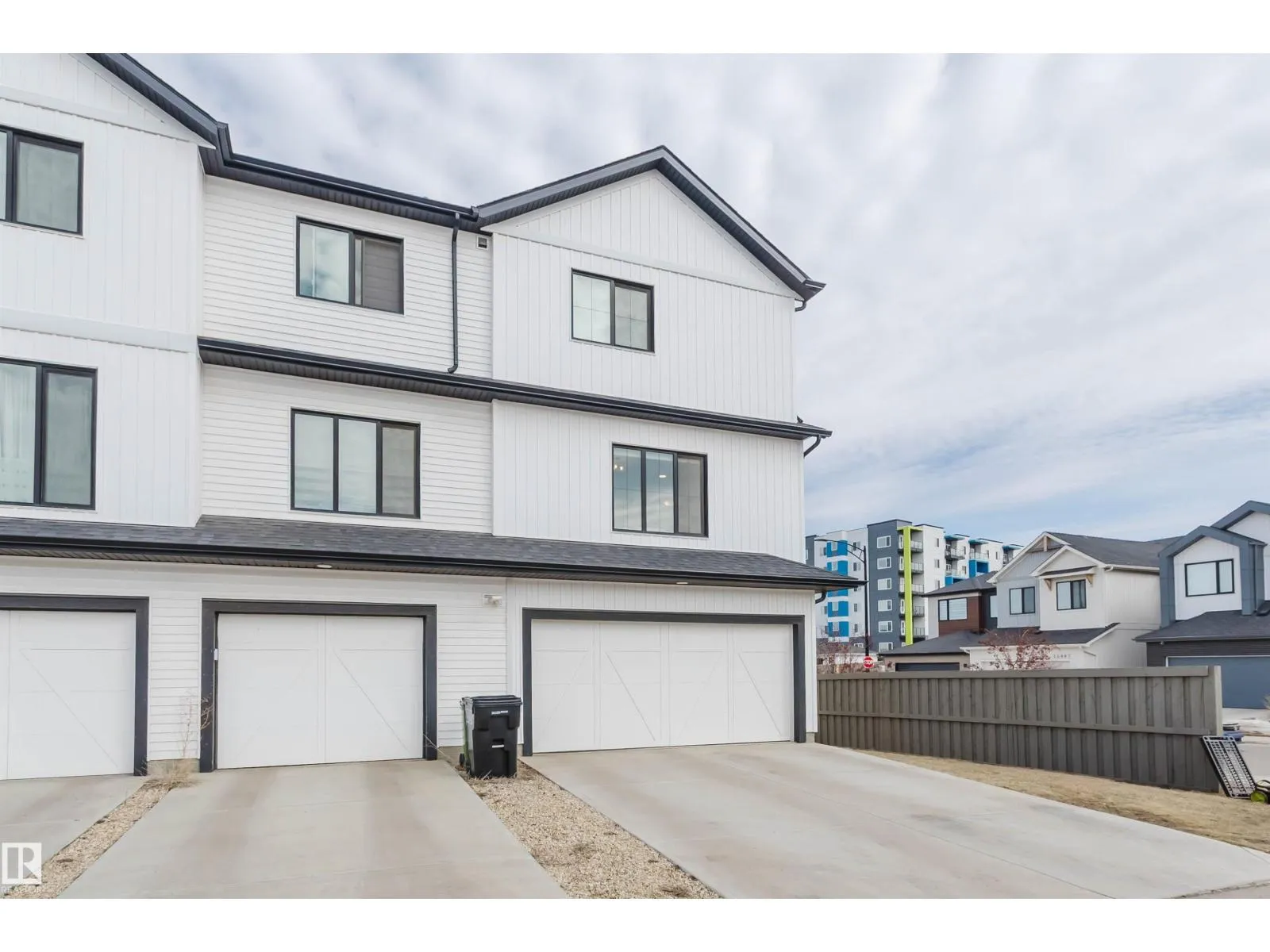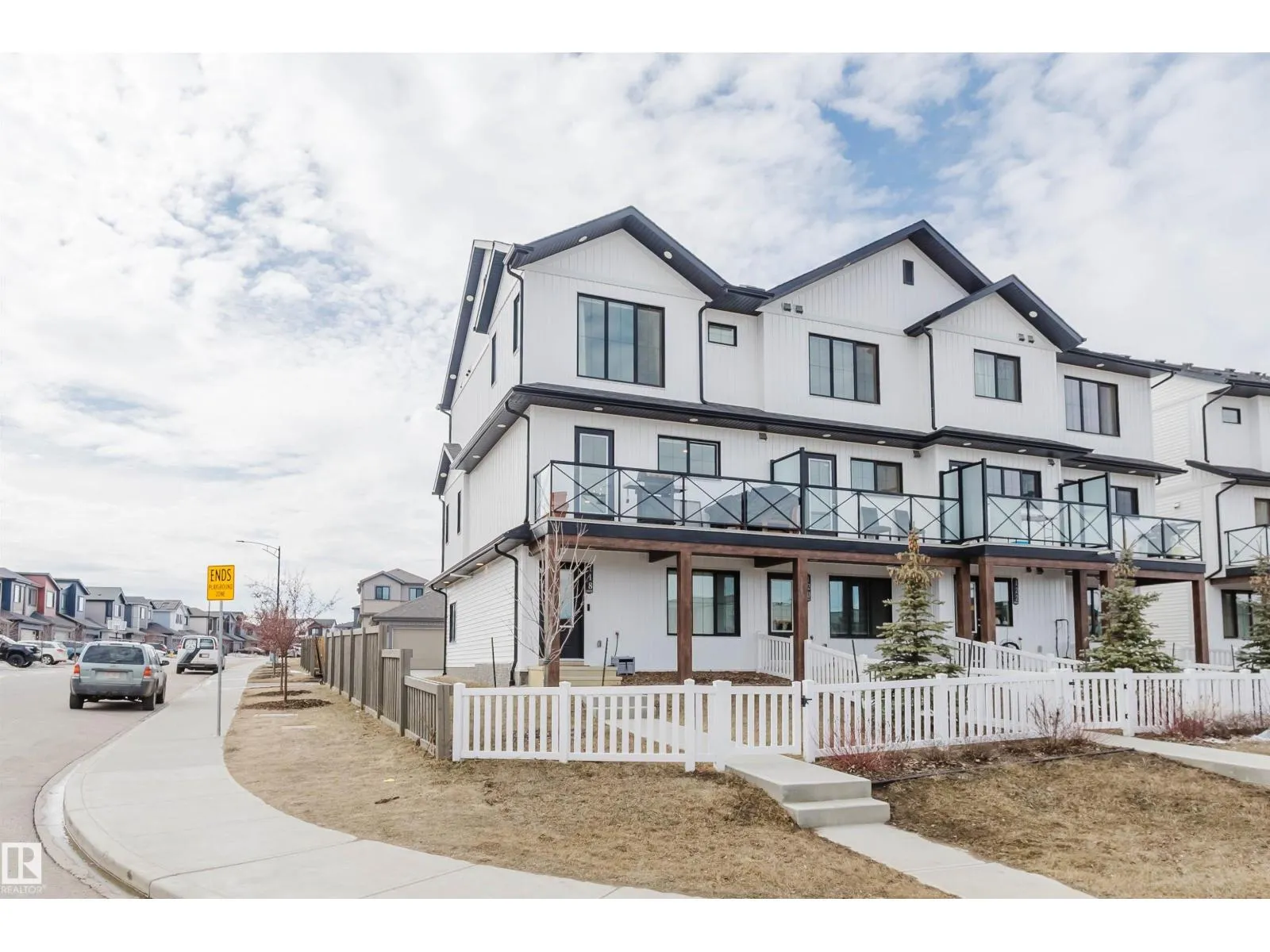 END UNIT! Experience the joy of city living with NO condo fees. This brightly lit 3-bedroom townhome was a previous show home with many upgrades including increased cabinet heights, solid surface counter tops and luxury vinyl flooring. The ground floor includes a standard bedroom and a nearby 1/2 bathroom, perfect for guests or home office. On the main level, a spacious, modern kitchen flows smoothly from the dining area to an open concept living room complete with a cozy electric fireplace. Upstairs features 2spacious bedrooms, each with its OWN ensuite bathroom and generous walk-in closet. Double attached garage and fully landscaped. Walking distance to the Lewis Farms Rec centre, convenient shopping nearby and located across the street from St. Josephine Bakhita K-9 school! Welcome Home! (id:27476)